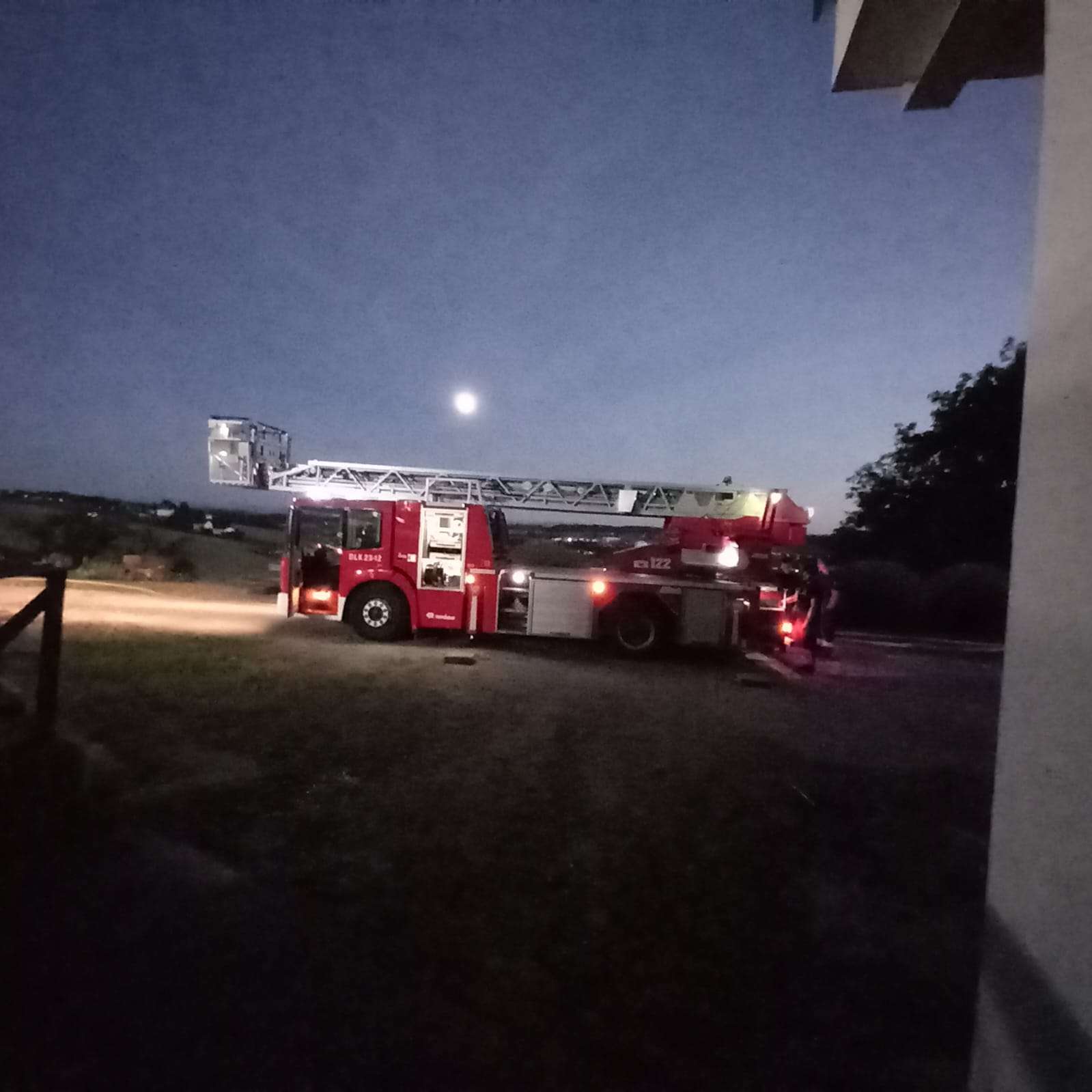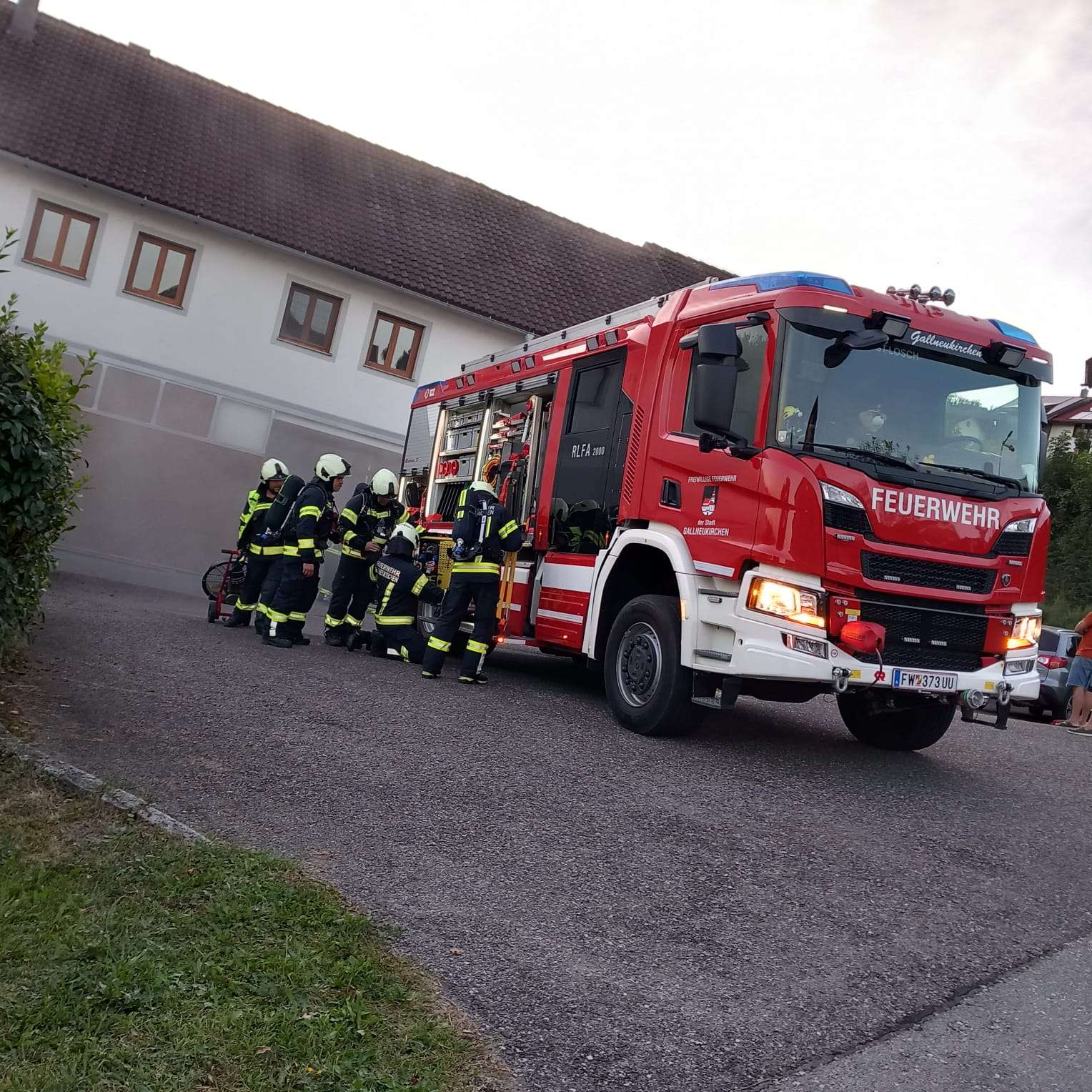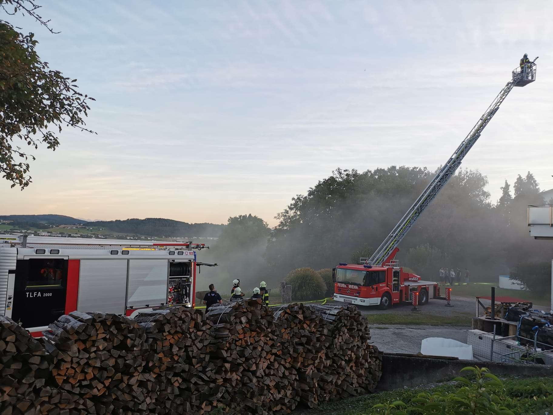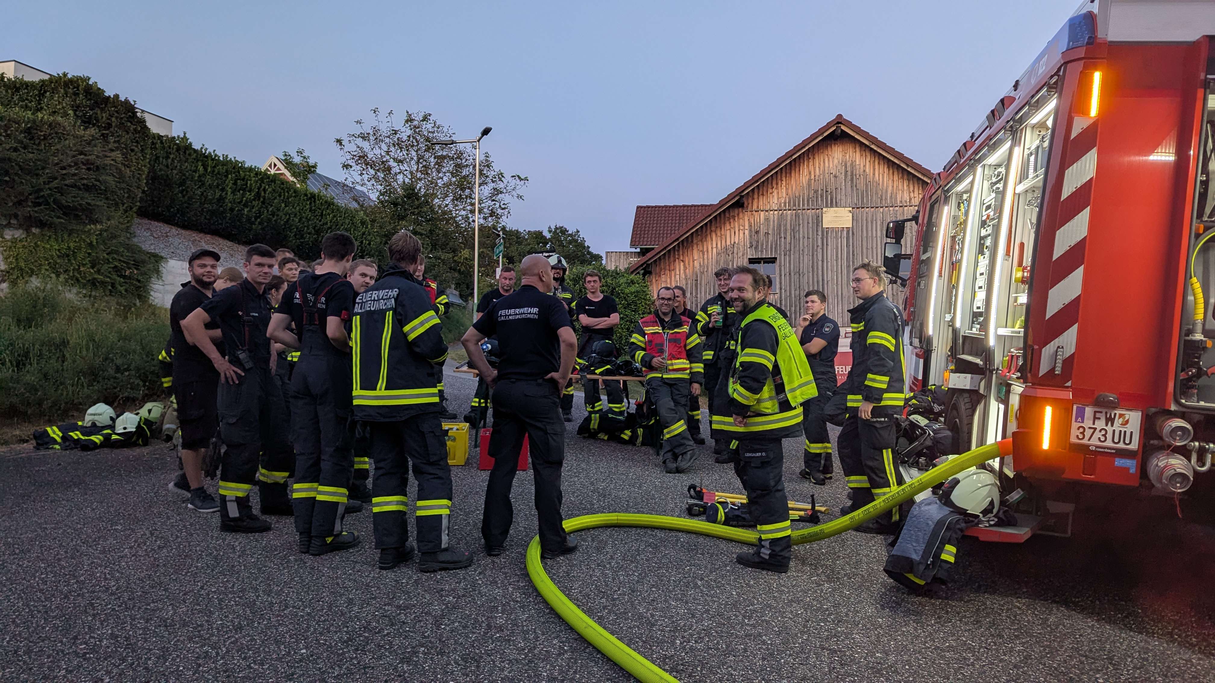 Zeitgleich wurde über die Drehleiter das benachbarte Wohnhaus geschützt und die Wasserversorgung hergestellt.