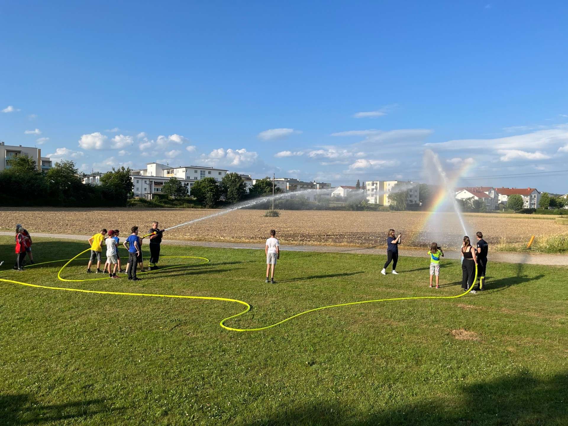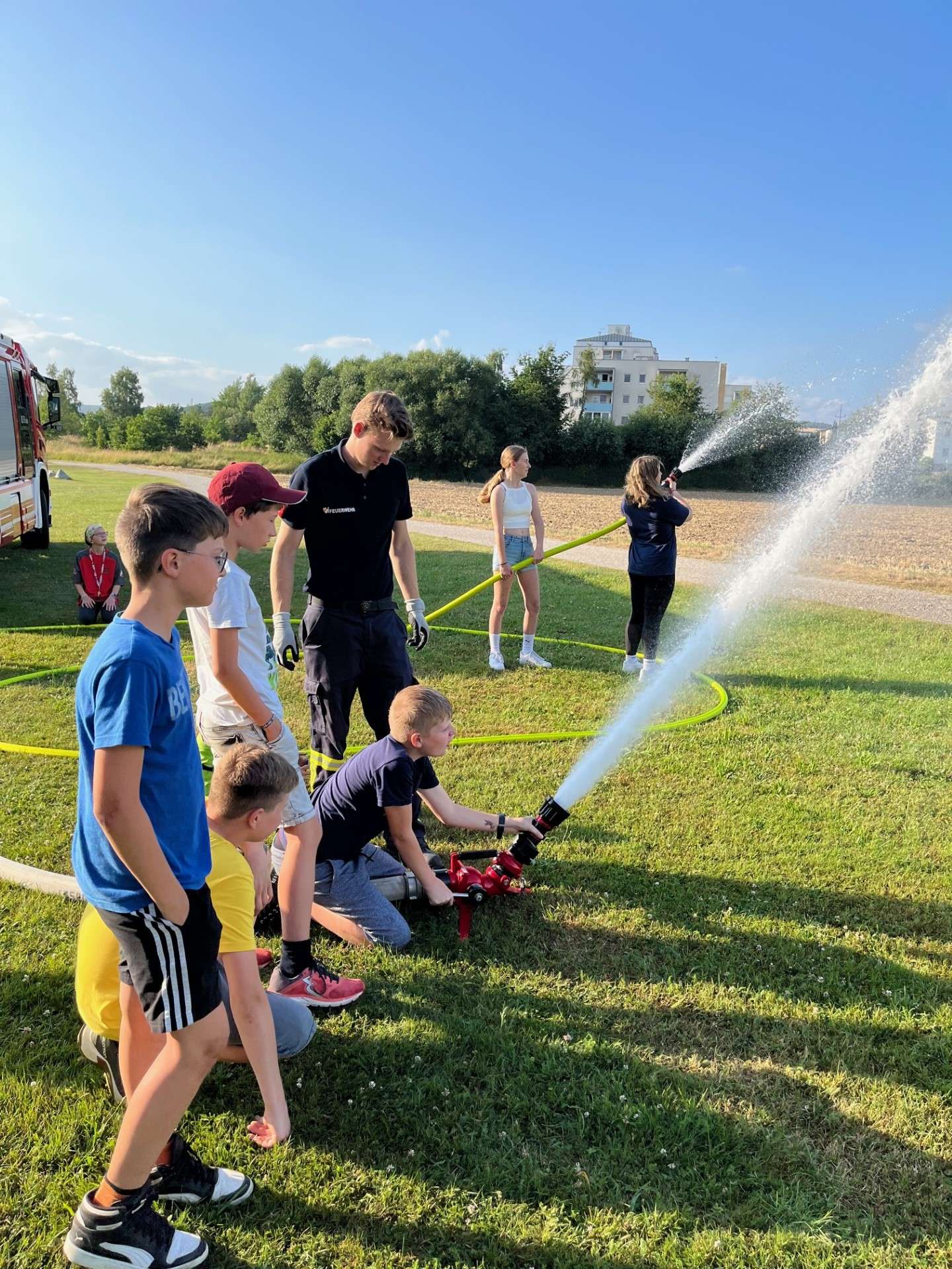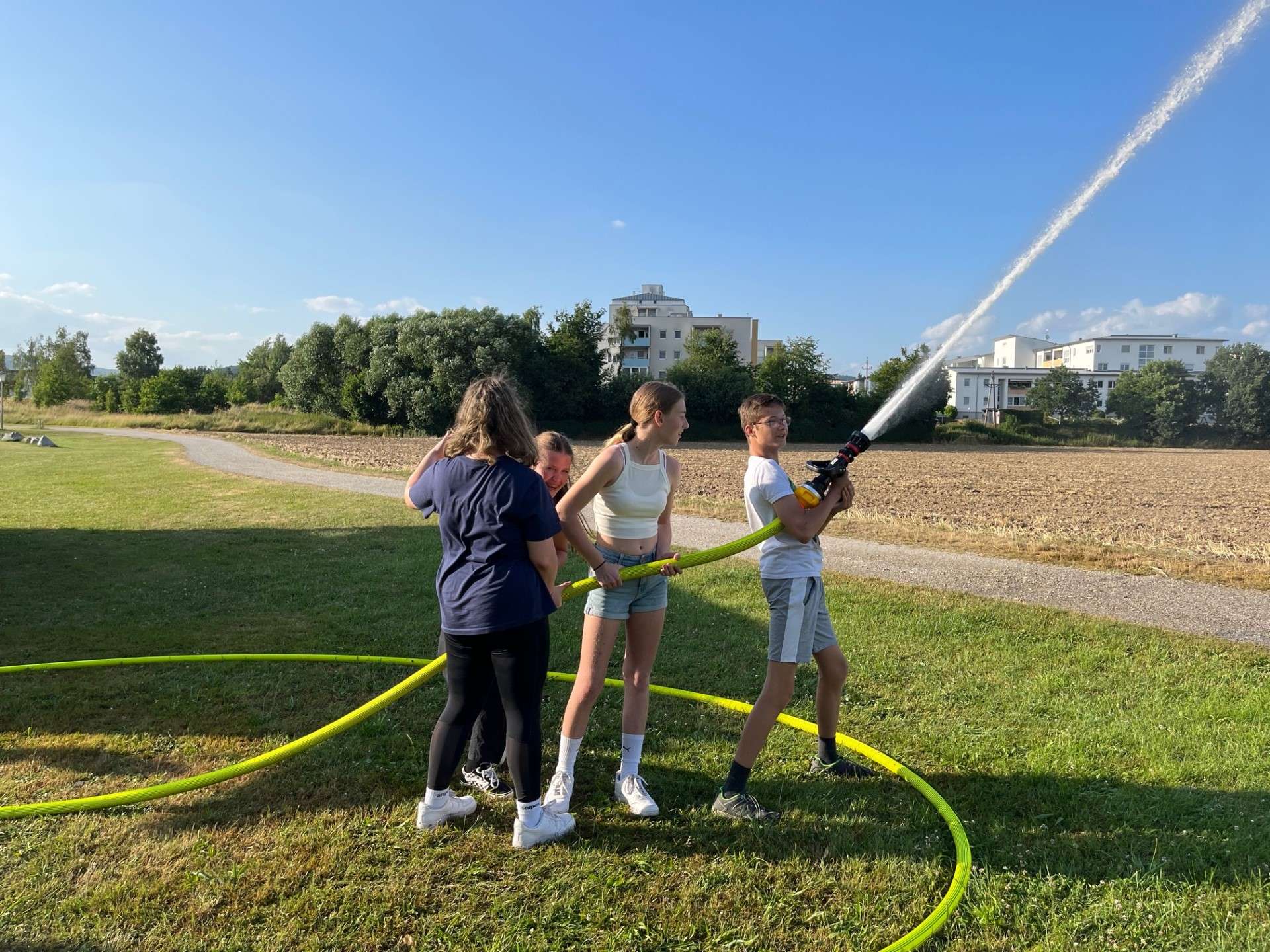 Zum Abschluss der heurigen Bewerbssaison führten die Jugendbetreuer eine Abschlussübung durch, bei der mit der Tragkraftspritze Wasser aus der Gusen entnommen wurde und mittels C-Rohren das Löschen geübt wurde. Wir Wünschen Allen schöne und erholsame Ferien.