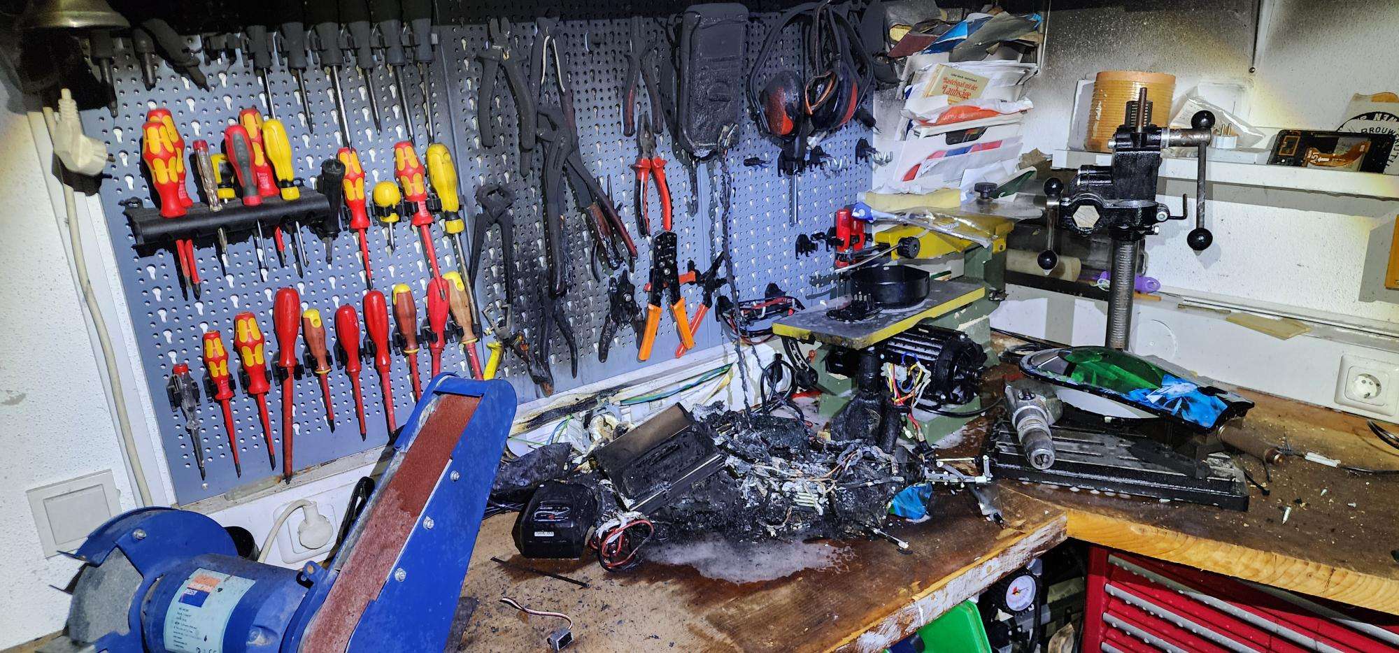 Vor Ort stellte sich heraus, dass in einem Garagennebenraum ein Akku eines Spielzeugautos zu brennen begonnen hatte. Glücklicherweise wurde der Brand durch die Anwohner rasch bemerkt und konnte noch vor dem Eintreffen der Feuerwehr gelöscht werden.