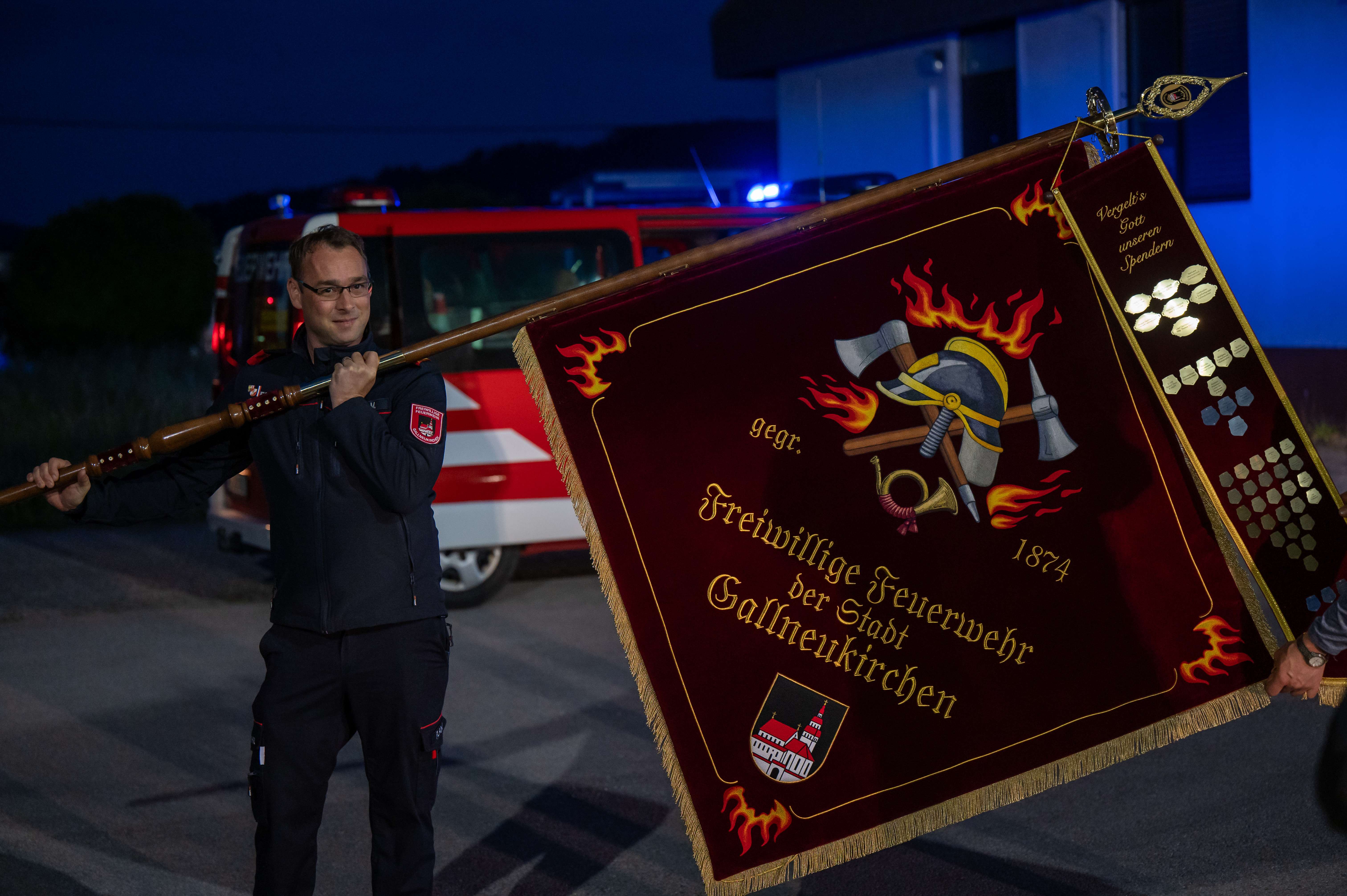 Vergangene Woche bereiteten die Kameraden der Feuerwehr Gallneukirchen der im Zeughaus eintreffenden Traditionsfahne einen standesgemäßen Empfang.