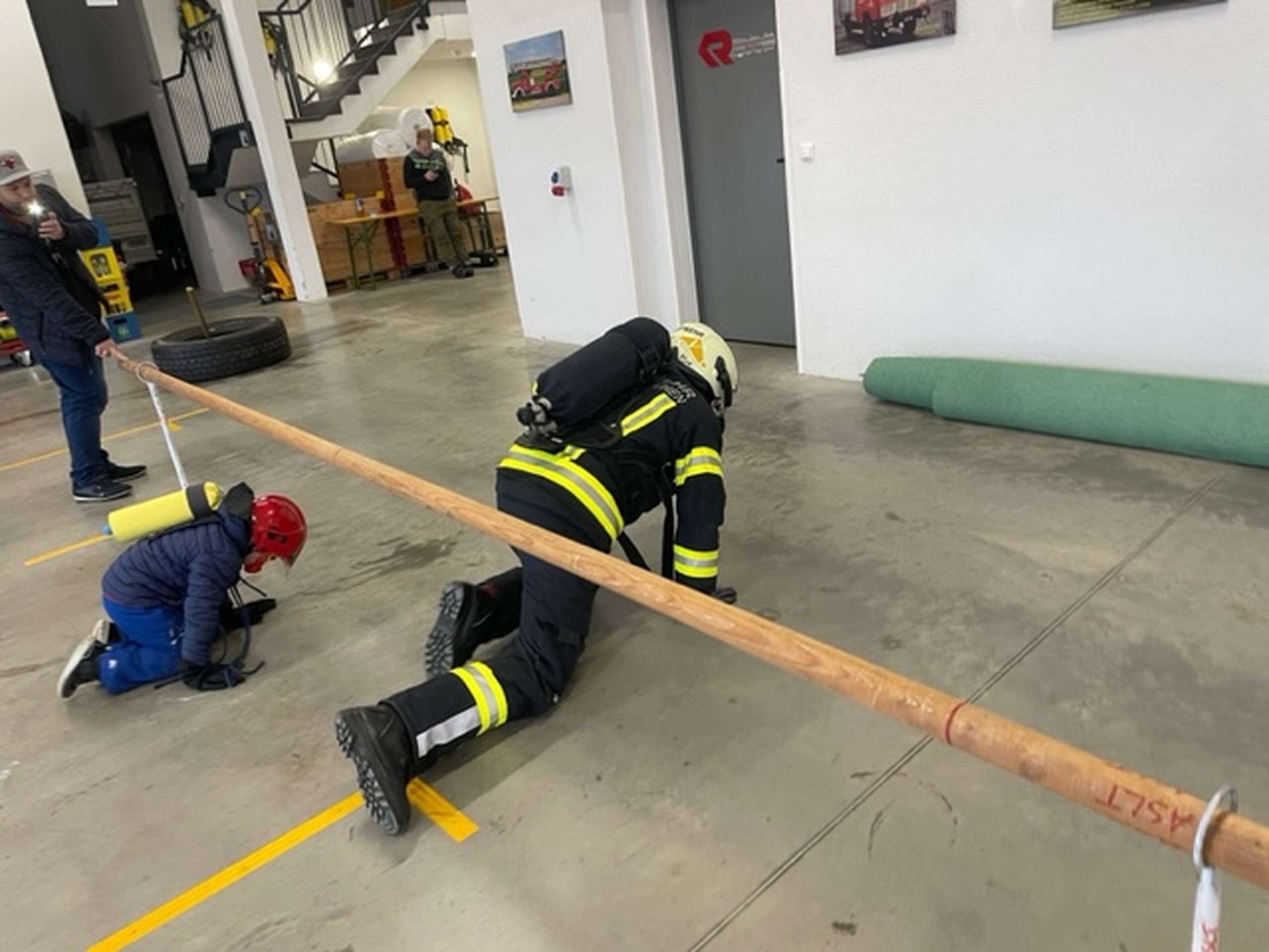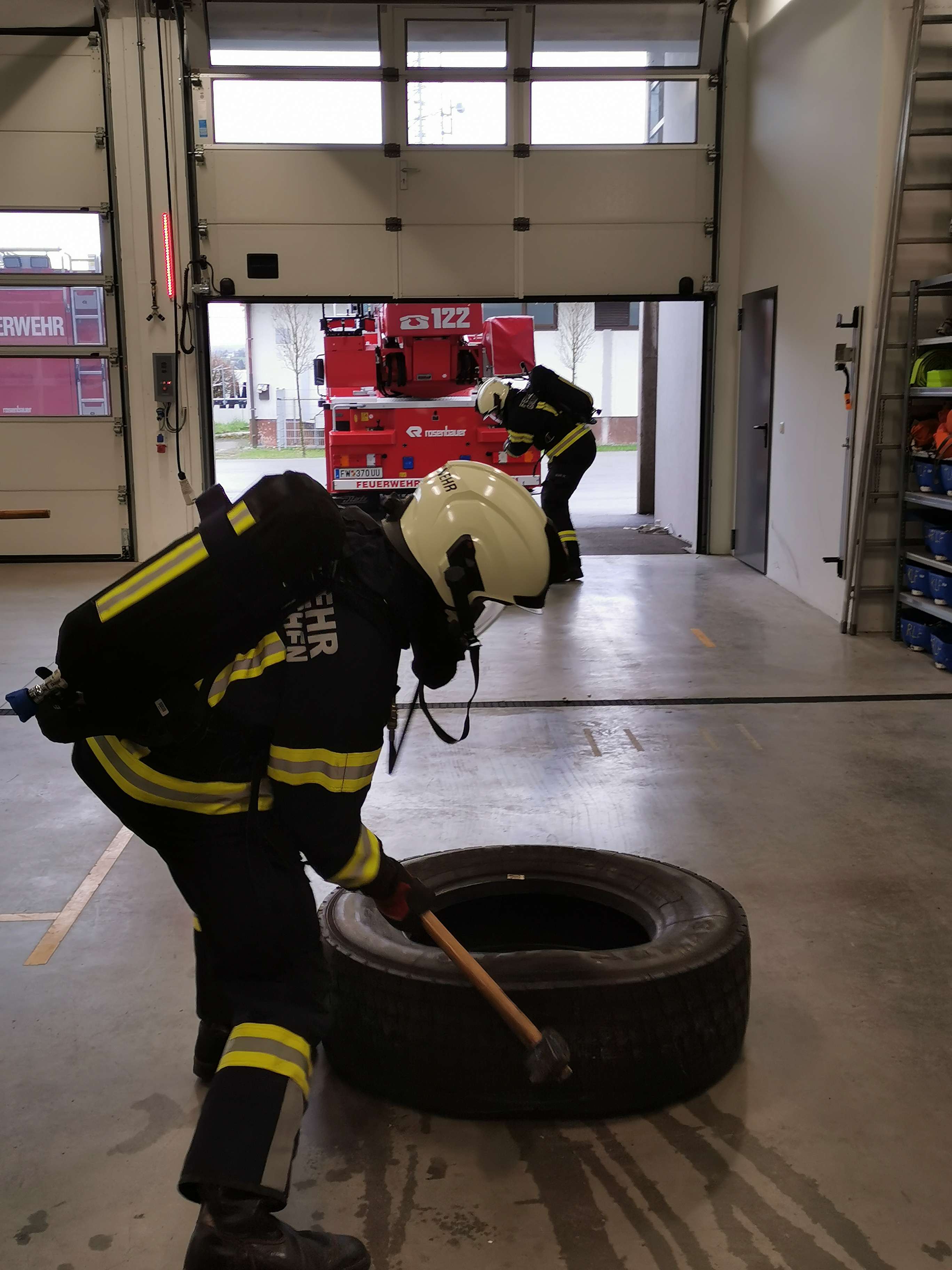 Zu den Aufgaben gehören diverse körperliche Belastungstests. Mit einem Vorschlaghammer muss unter anderem ein 50 kg schwerer LKW-Reifen drei Meter weit bewegt werden. Eine weitere Station erfordert das Übersteigen bzw. Unterkriechen von Hindernissen. Diese Überprüfung ist sehr wichtig, um die Fitness der Atemschutzträger aufrechtzuerhalten.