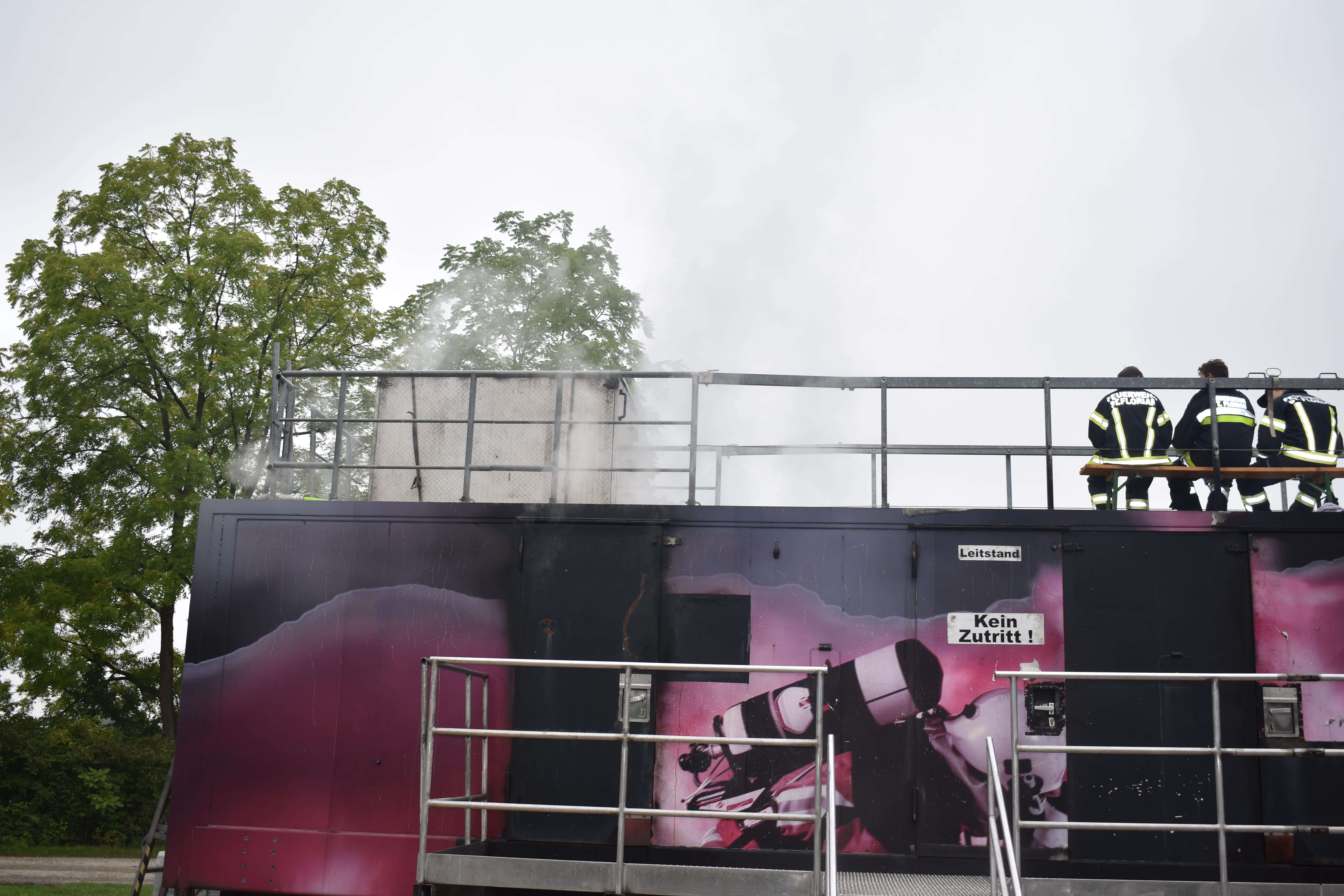 Fotos vom Container und dem feurigen Innenangriff findet ihr hier (Webseite FF St. Florian).