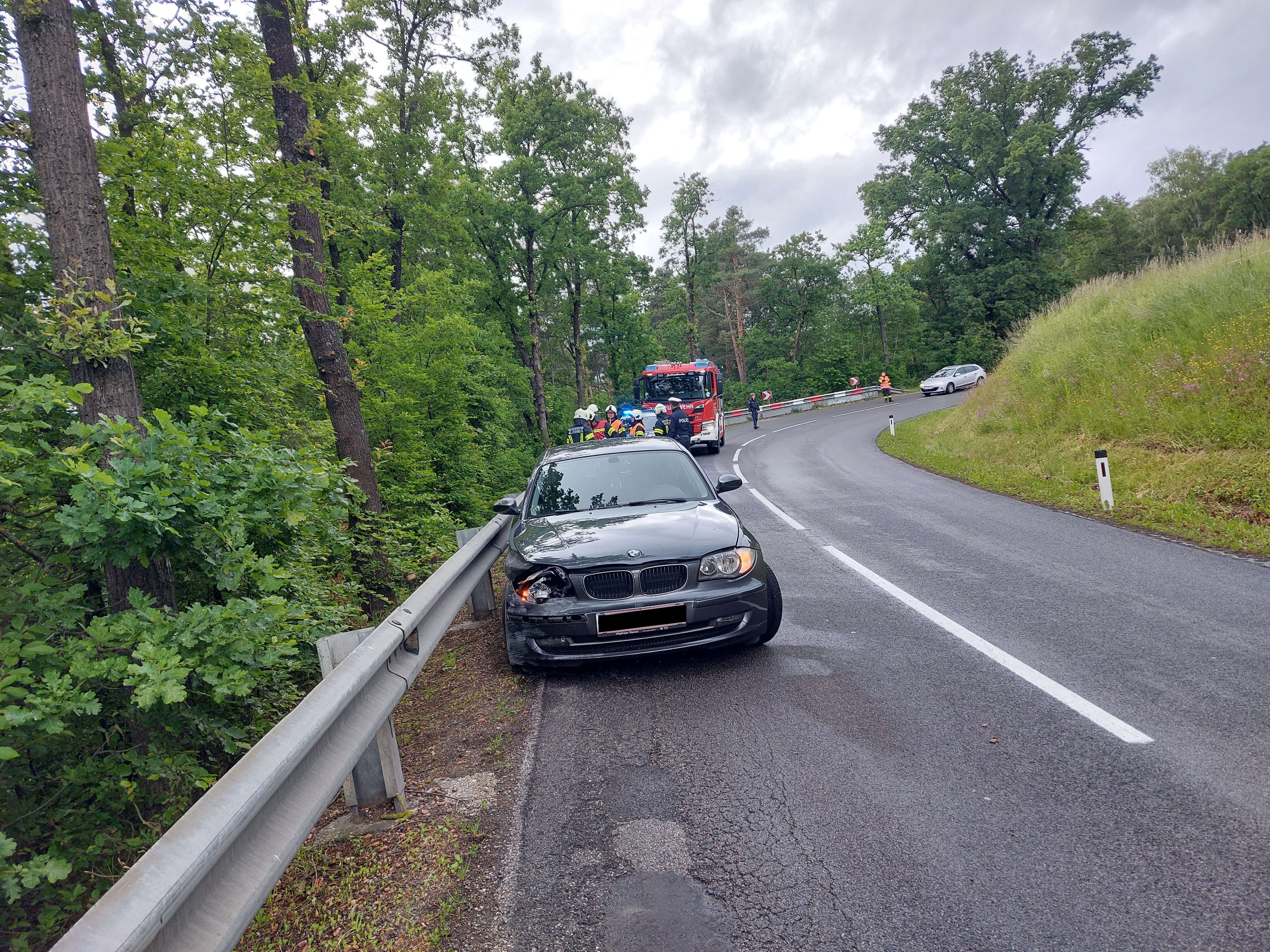 Der PKW kollidierte durch noch ungeklärte Ursache mit der Leitplanke und wurde leicht beschädigt. Dabei kamen keine Personen zu Schaden. Aufgrund der unübersichtlichen Straßenverhältnissen forderte die Polizei die Feuerwehr zur Absicherung der Unfallstelle an.
