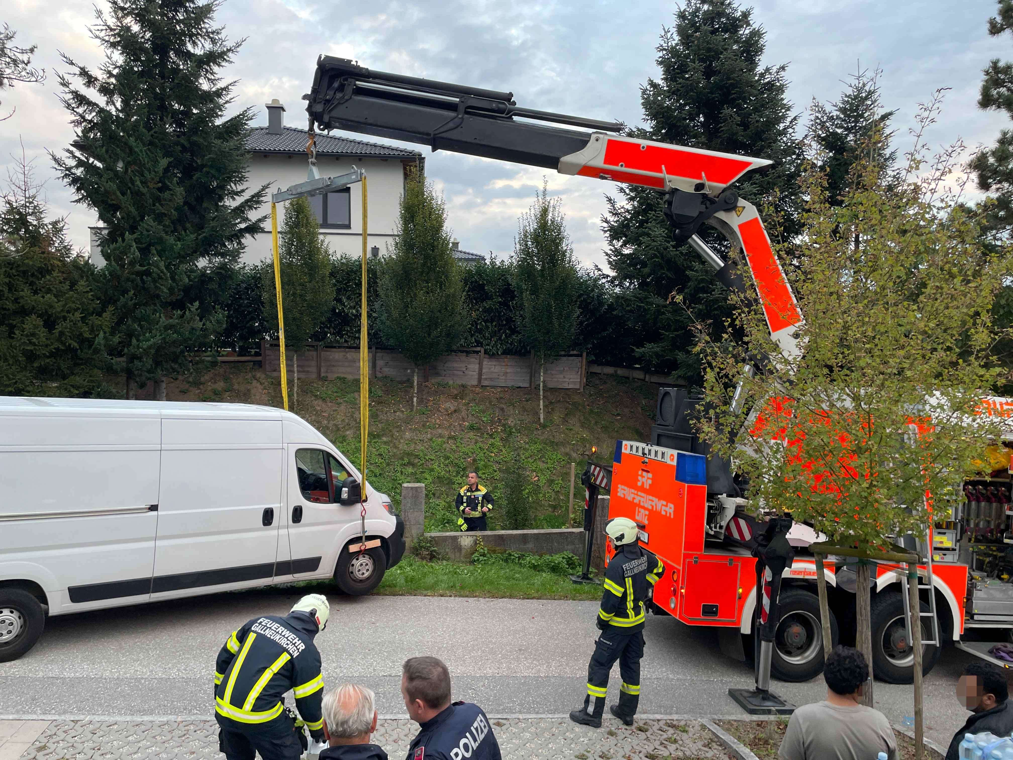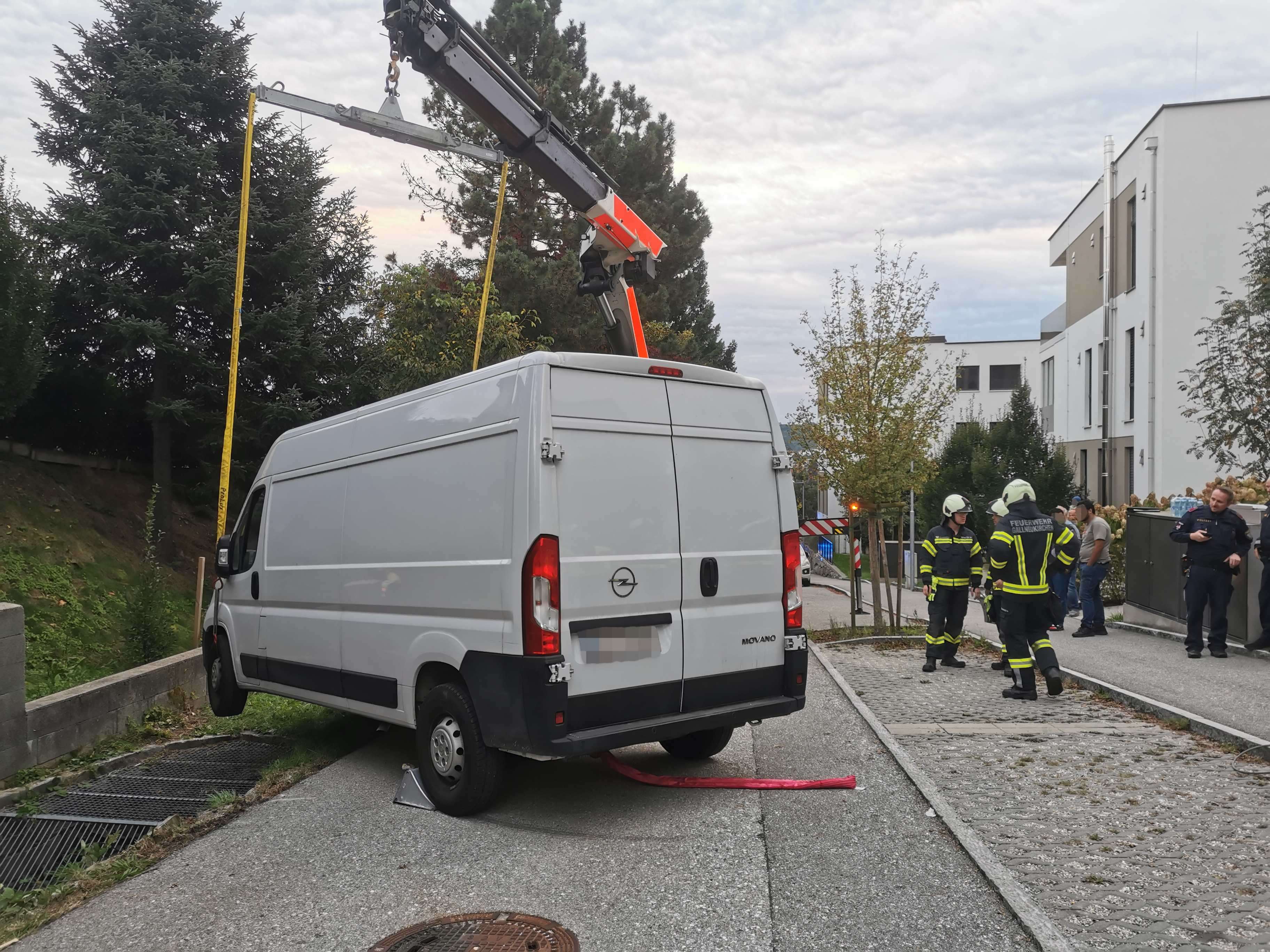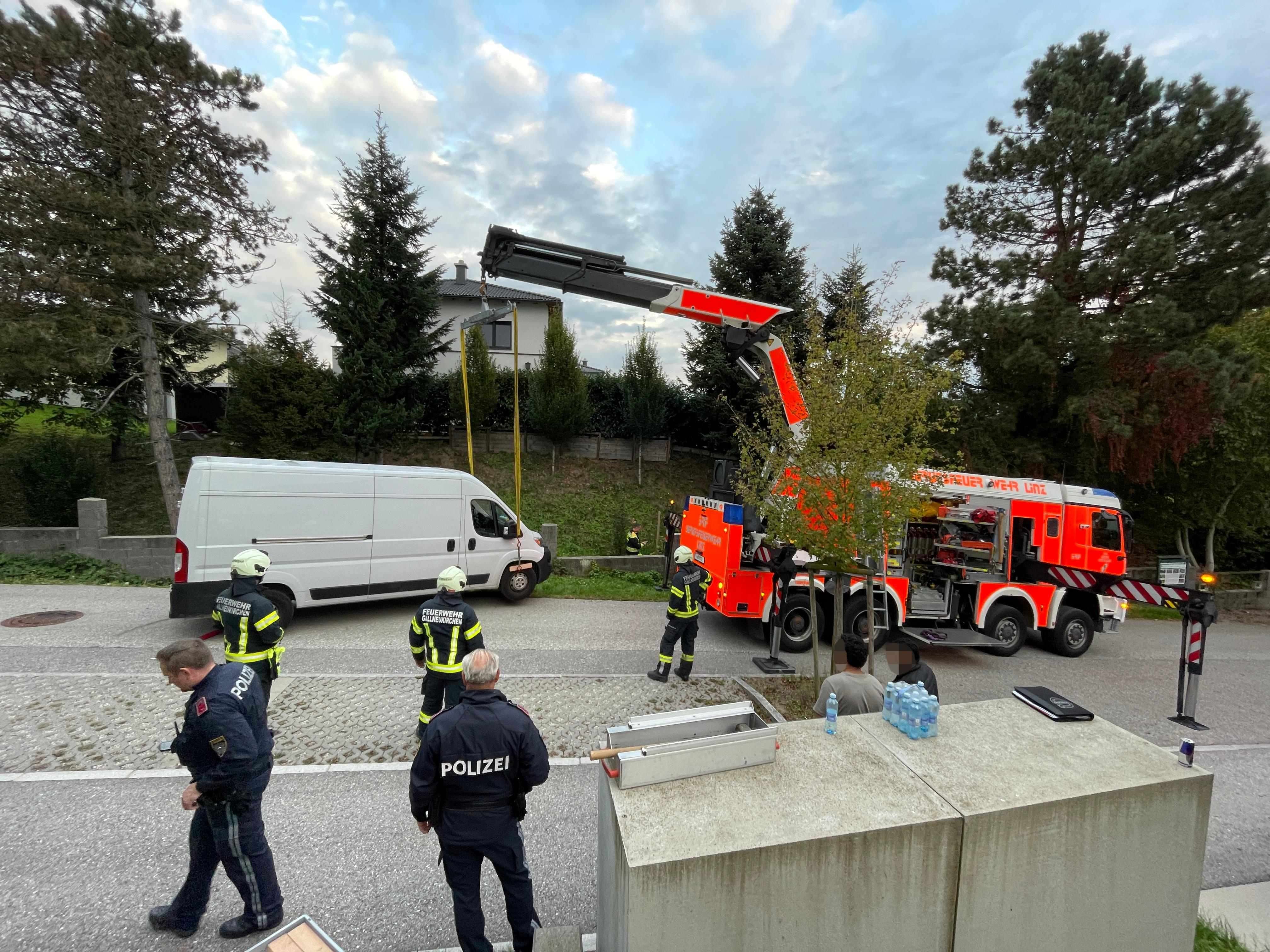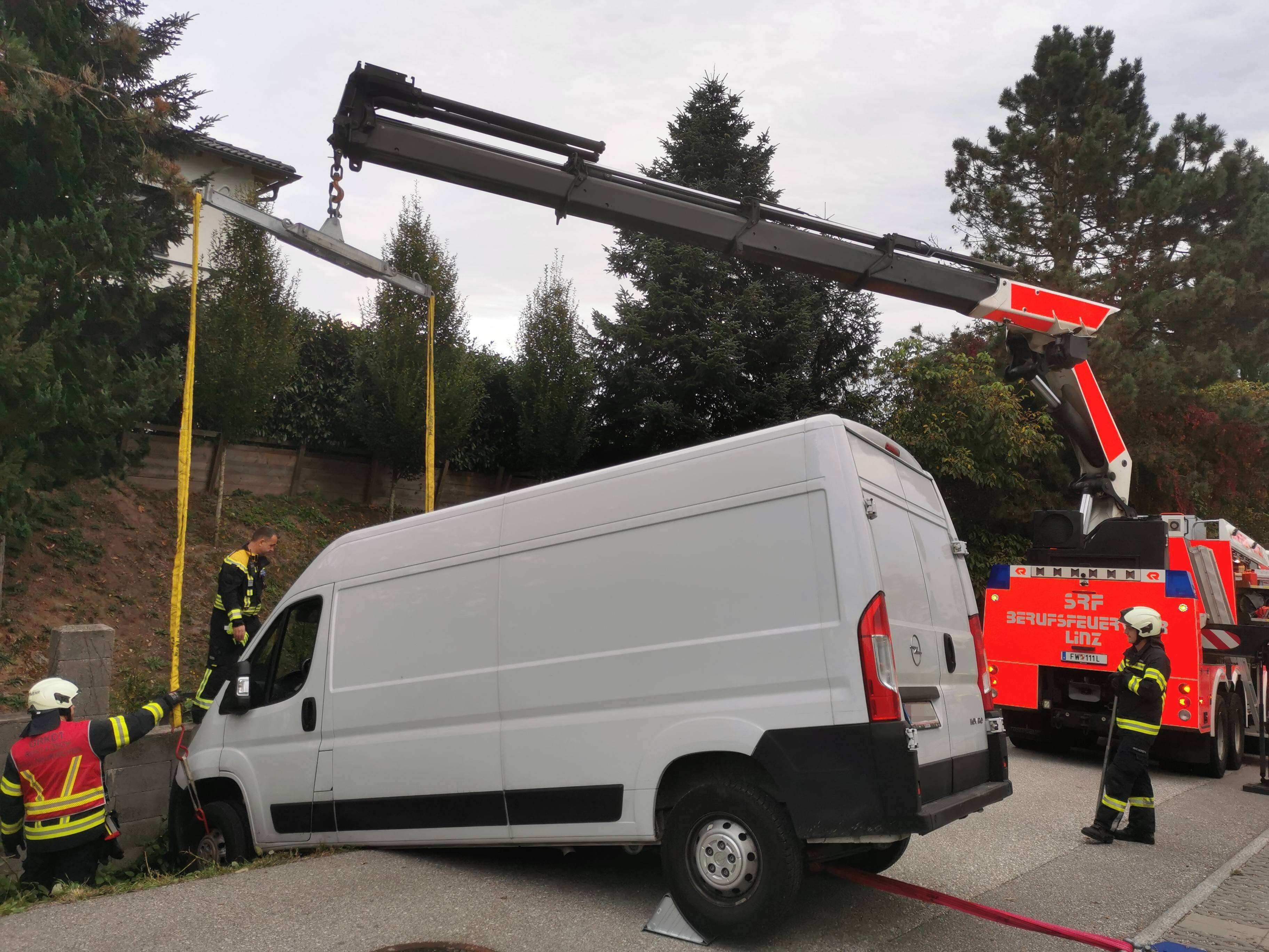 Über das Landesfeuerwehrkommando wurde daraufhin das Schwere Rüstfahrzeug mit Kran der Berufsfeuerwehr Linz nachalarmiert. Mit dessen Unterstützung konnte der Kleintransporter wieder auf die Fahrbahn gehoben werden.