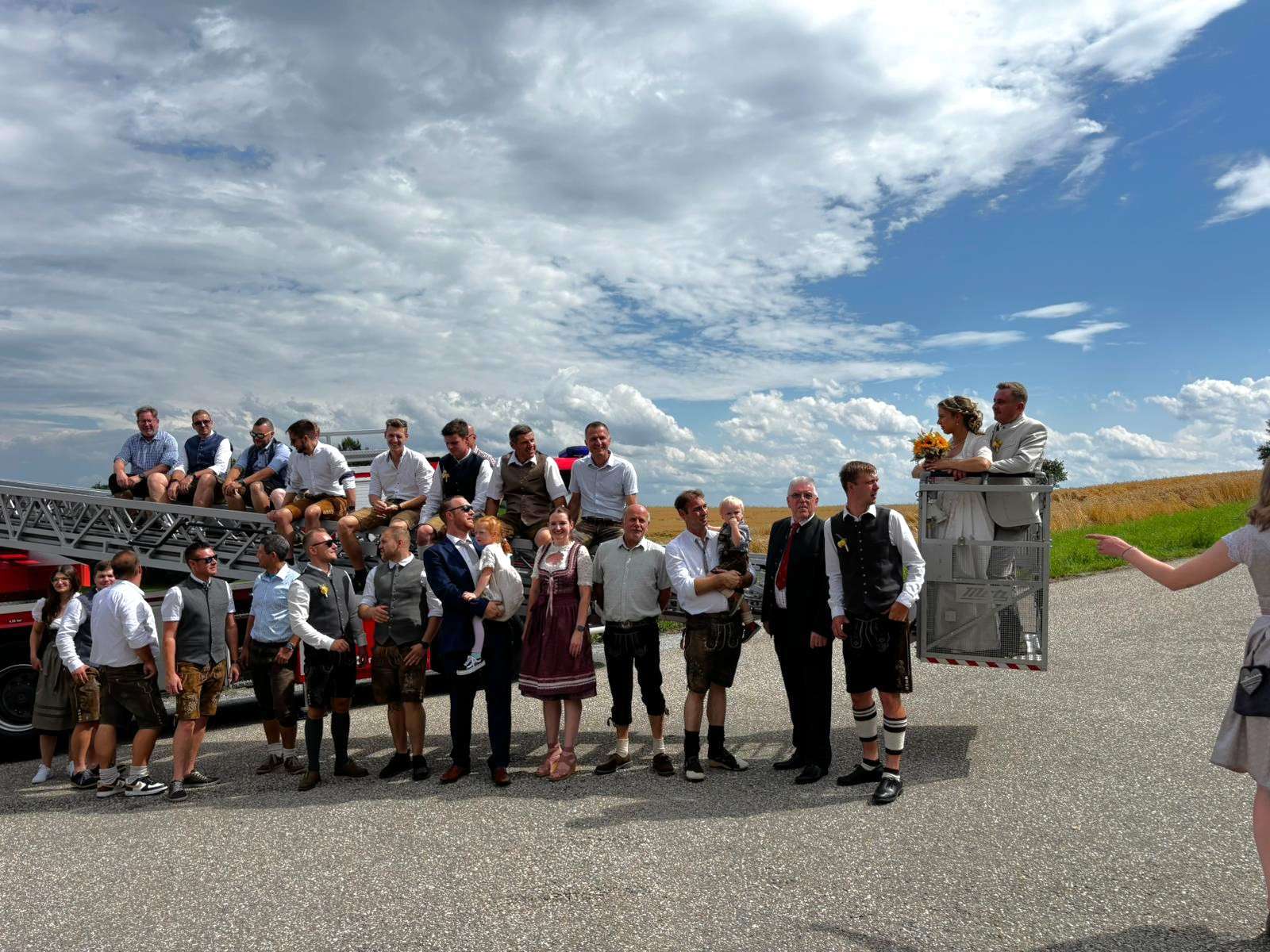 Kommandant-Stellvertreter Daniel Mayr und seine Frau Lisa sowie Florian Gruber und seine Frau Sarah feierten ihre Hochzeiten im Beisein zahlreicher Feuerwehrkameradinnen und -kameraden. Ein Zeichen der engen Verbundenheit und Freundschaft, nicht nur im Einsatz, sondern auch im privaten Leben.