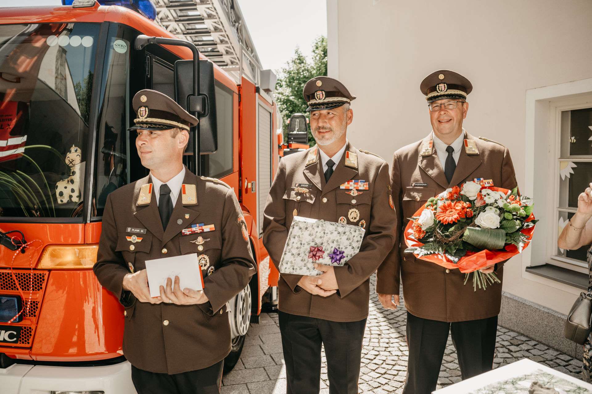 Mit dabei waren unter anderem Bezirks-Feuerwehrkommandant OBR Ing. Johannes Enzenhofer sowie Abschnitts-Feuerwehrkommandant BR Christian Breuer, die es sich nicht nehmen ließen, ihrem Kameraden an diesem besonderen Tag die Ehre zu erweisen.