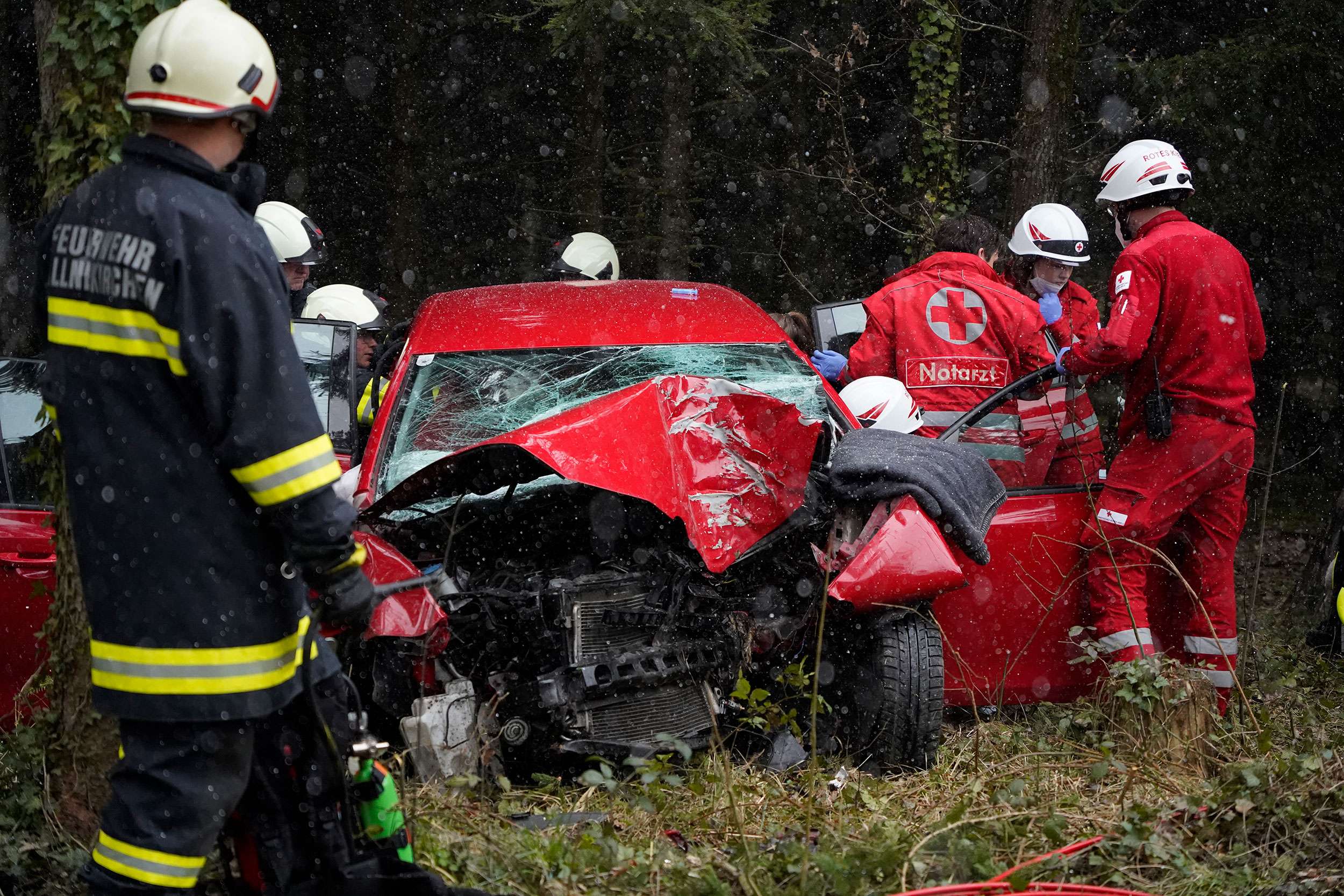 Am heutigen Dienstag um 11:57 Uhr wurden die Feuerwehren Schweinbach und Gallneukirchen zu einem Verkehrsunfall auf der Alberndorfer Straße zwischen Gallneukirchen und Almesberg gerufen. Ein Autofahrer kam aus bisher ungeklärter Ursache von der Fahrbahn ab und landete im nahegelegenen Waldstück. Die Person war in ihrem Wagen eingeklemmt und konnte das Fahrzeug nicht selbstständig verlassen.