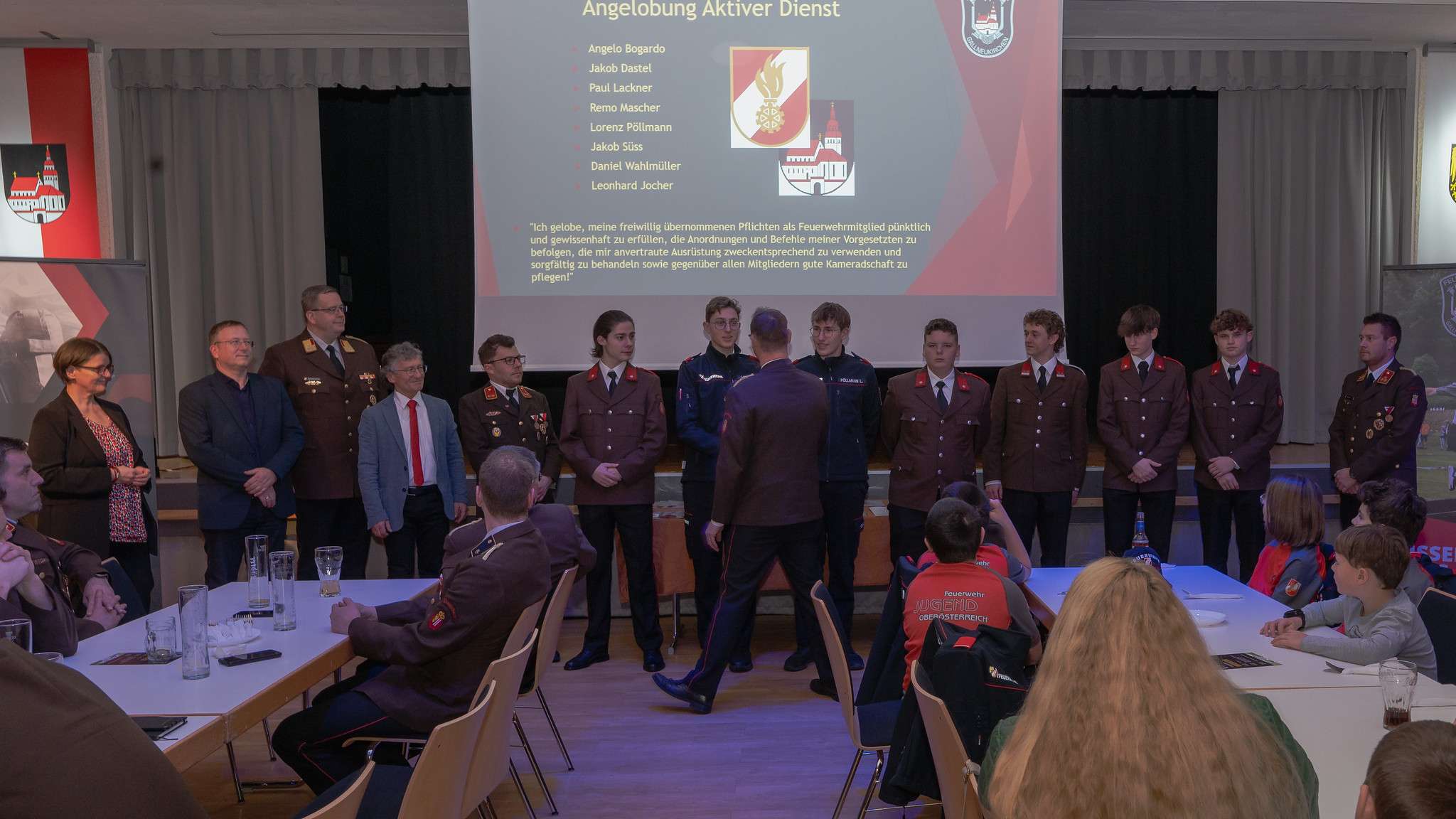 Als weiterer Tagesordnungspunkt standen Angelobungen und Beförderungen auf der Agenda. Mit sieben Angelobungen in der Jugendfeuerwehr wurde einmal mehr die ausgezeichnete Jugendarbeit unter der Leitung von Jugendbetreuer Manuel Kaar unterstrichen. Auch im aktiven Dienst konnten acht Kameraden angelobt werden - darunter großteils überstellte Jugendfeuerwehrmänner.
