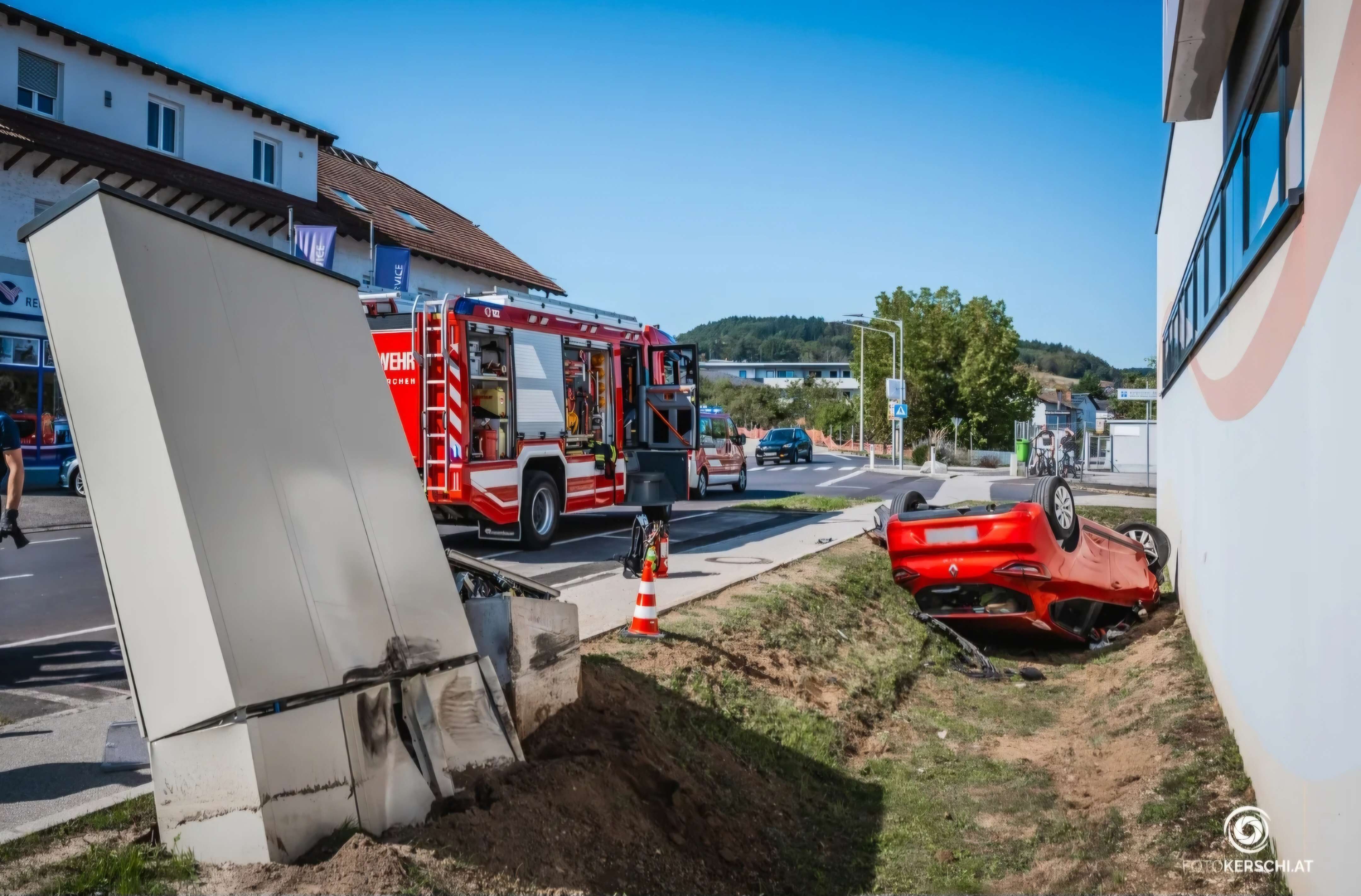 Am Einsatzort angekommen stellte sich heraus, dass sich die Lenkerin bereits selbst befreien konnte. Das Fahrzeug kam von der Fahrbahn ab, prallte gegen einen Stromverteiler und kam anschließend auf dem Dach liegend zum Stillstand. Die Feuerwehren begannen mit der Bergung, unterstützten den Abschleppdienst und sorgten für die Absicherung am Einsatzort. Die Ursache zu dem Unfall ist bisher unbekannt