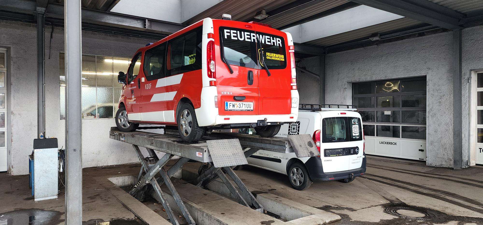 Dort bekommt unser KDO unteranderem einen neuen eingeschweißten Einstieg. Weiters wird auch das Service gemacht damit unsere Kameraden auch in Zukunft sicher unterwegs sind.