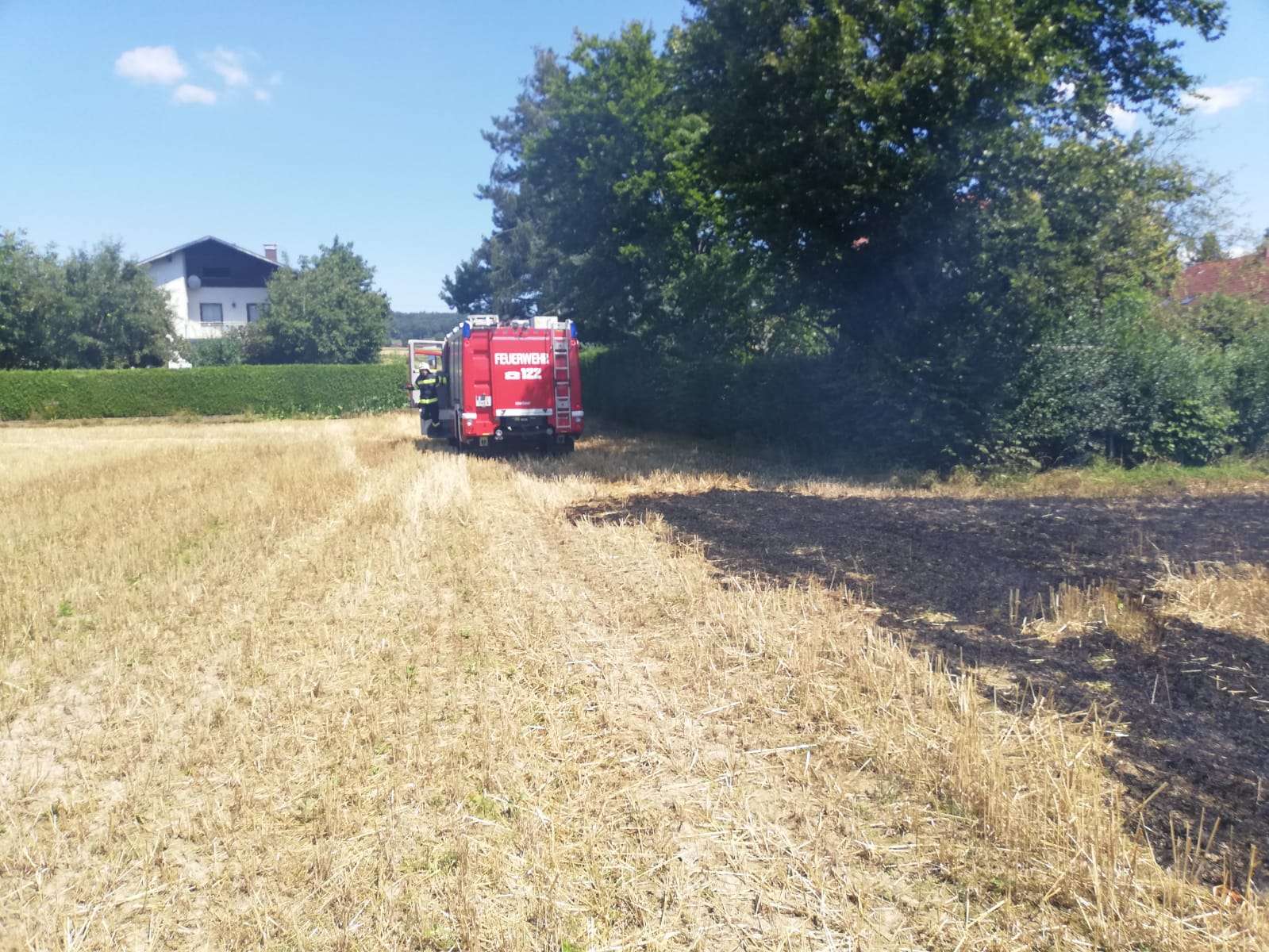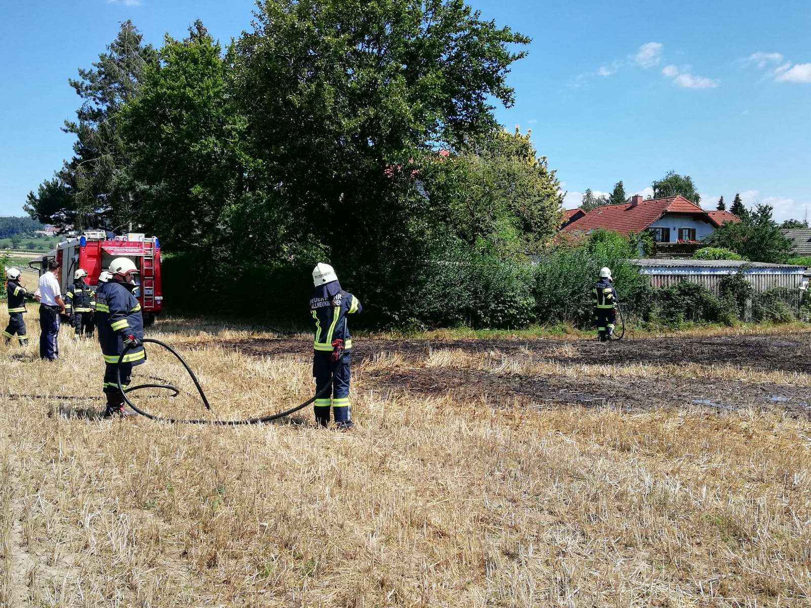 Durch die schnelle Alarmierung, konnte das Übergreifen des Feuers auf die Wohnhäuser sowie das Ausbreiten der Flammen auf die angrenzenden Felder verhindert werden.