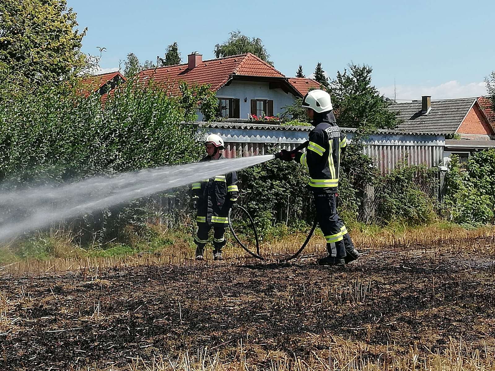 In Mitten einer Siedlung brach, aus noch ungeklärter Ursache, ein Feldbrand aus. Die Flammen konnten mit der Hochdruck-Schnellangriffseinrichtung rasch unter Kontrolle und anschließend auch gelöscht werden.