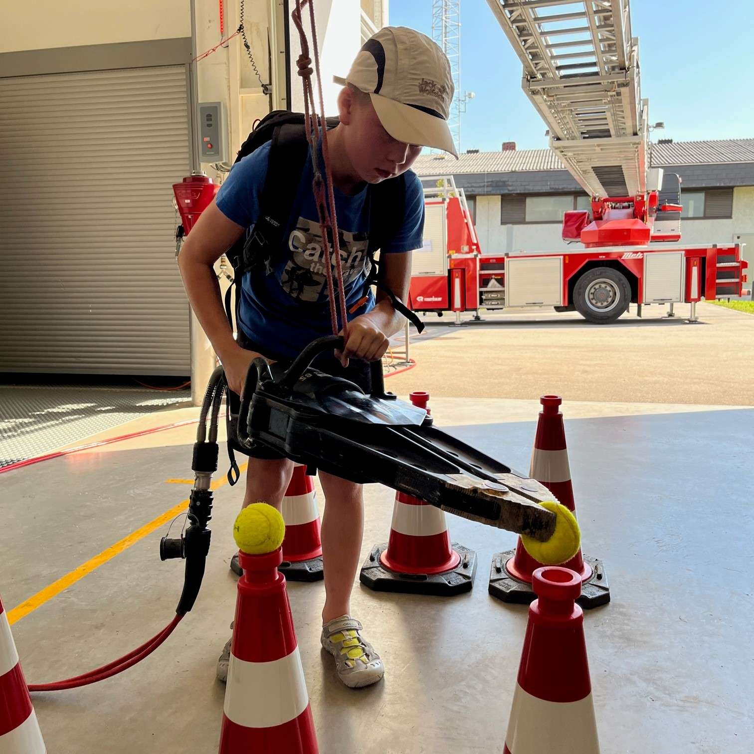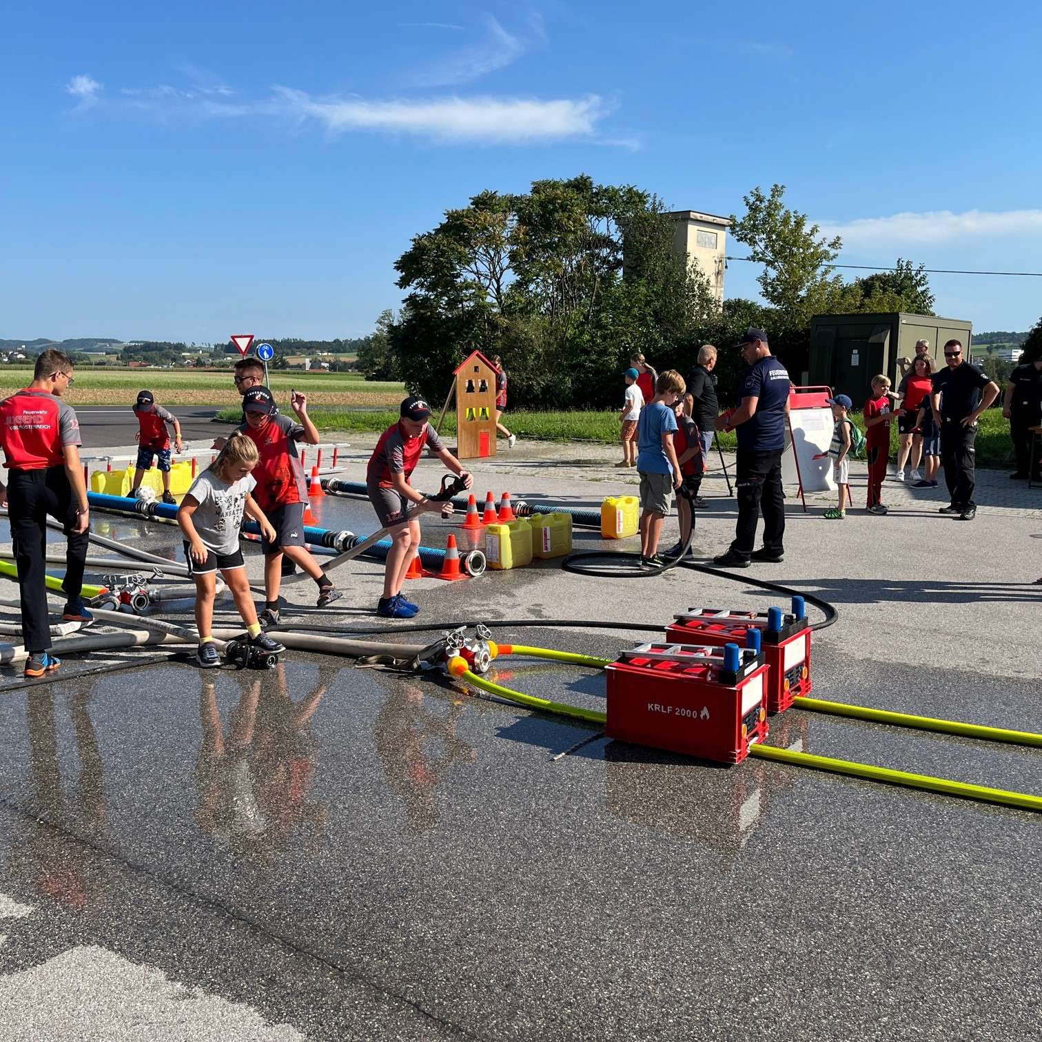 An diesem Nachmittag durften 20 junge und motivierte Kinder zwischen 8 und 12 Jahren die Feuerwehr entdecken. Dabei wurden viele lustige Übungen aufgebaut bei denen die Kinder alles ausprobieren konnten. Einerseits wurde geübt wie man einen Notruf richtig absetzt, andererseits durfen die Kinder erst mit einer Kübelspritze löschen und später mit einem Strahlrohr spritzen. Da es an diesem Tag sehr heiß war, war das auch gleich eine willkommene Abkühlung.
