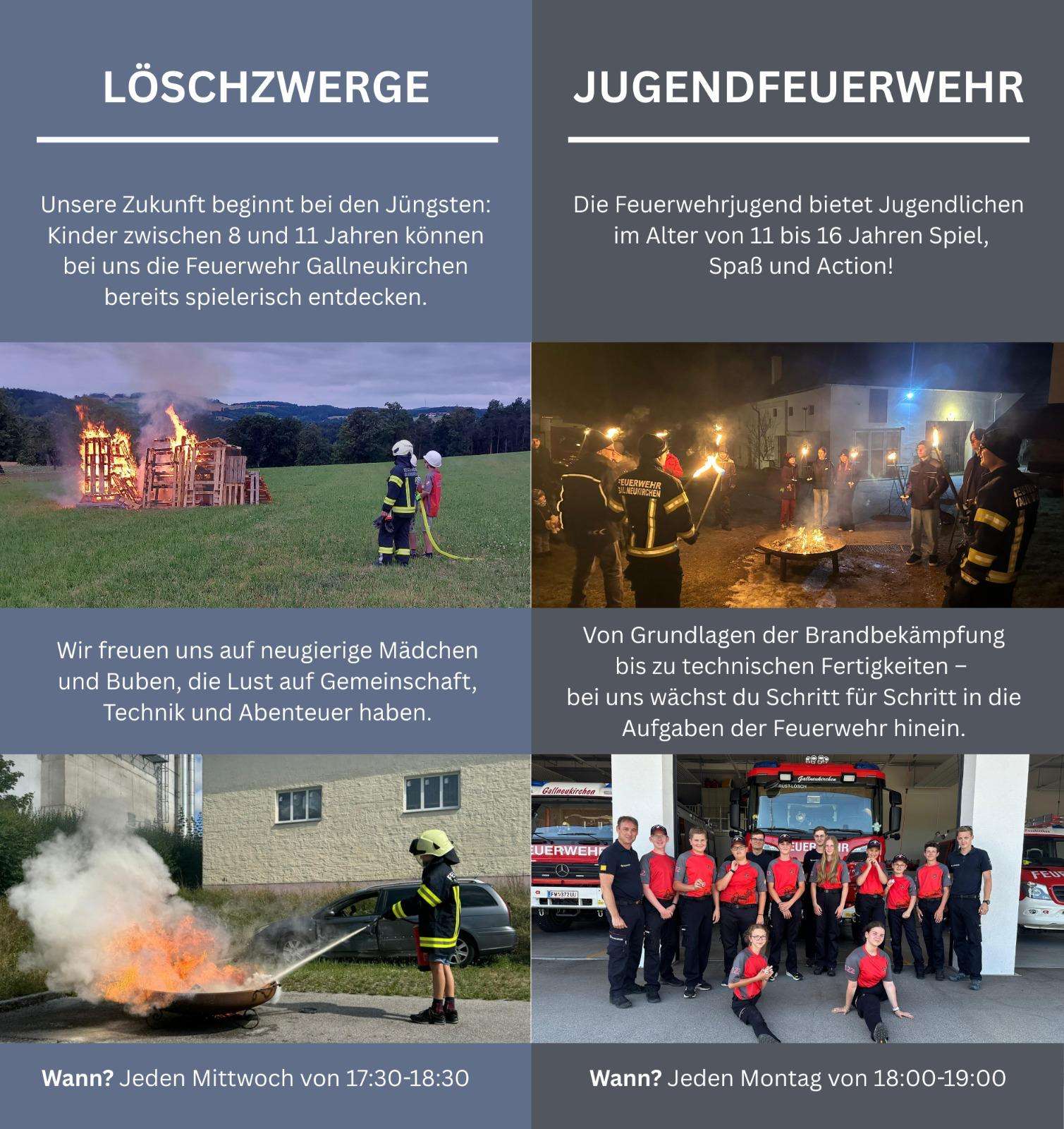 Die Feuerwehr Gallneukirchen ist mehr als Einsatzdienst, Technik und Action - sie ist eine starke Gemeinschaft in der Teamgeist, Hilfsbereitschaft und Verantwortung ggelebt werden. Besonders stolz sind wir auf unsere Feuerwehrjugend, in der junge Menschen spielerisch und mit viel Freude an die Welt der Feuerwehr herangeführt werden.