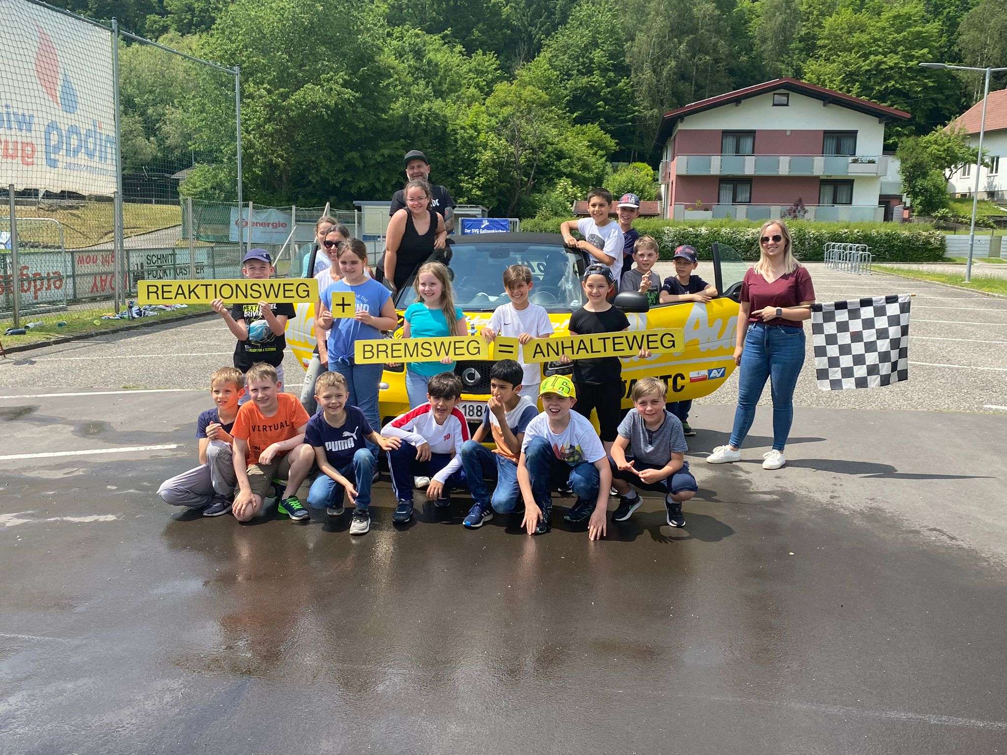 Am selben Tag haben wir den ÖAMTC bei dem Projekt "Hallo Auto" unterstützt. Dabei haben wir am Sportplatz Parkplatz mit dem TLF eine nasse Straße und Aquaplaning simuliert.