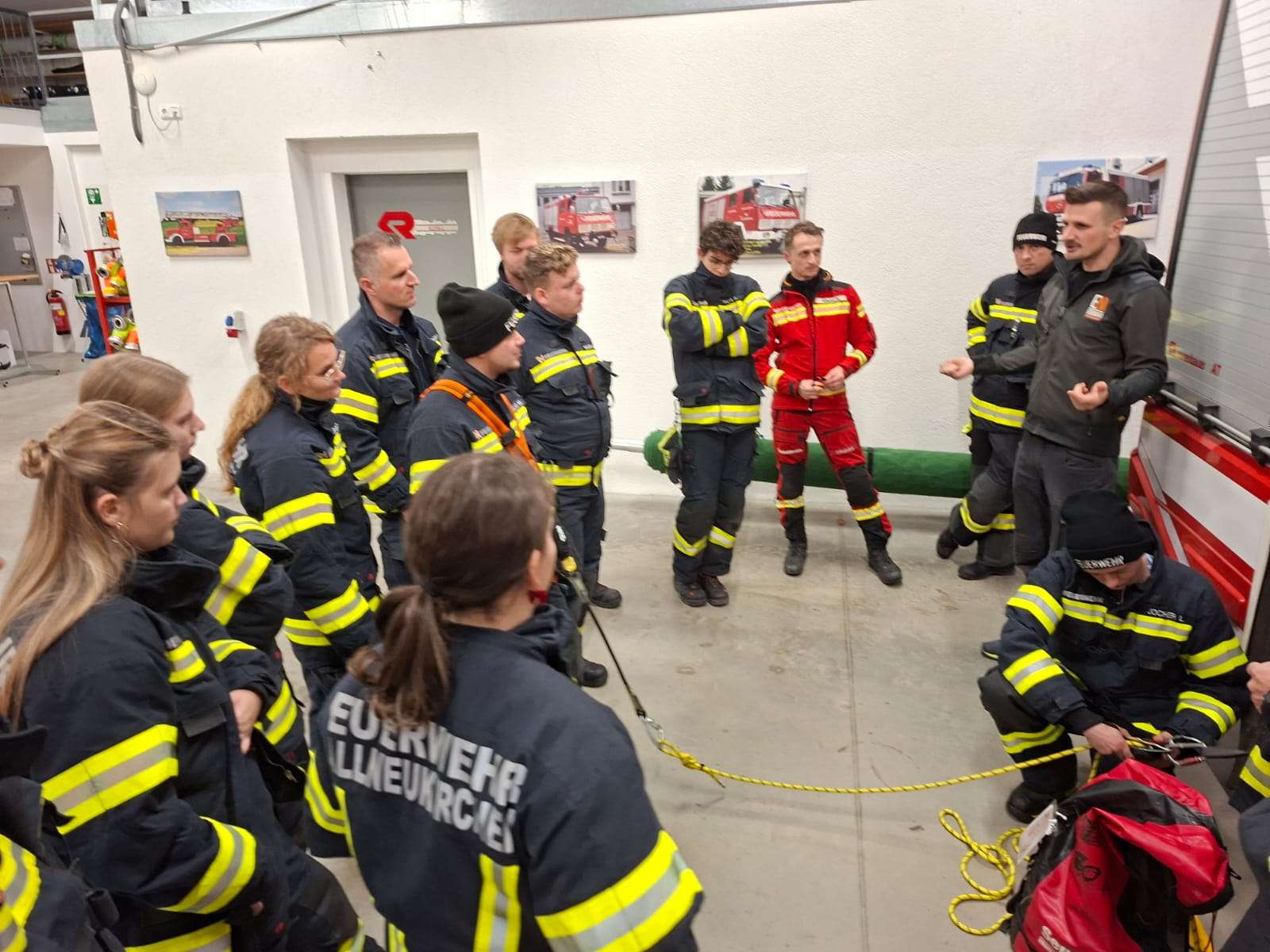 Am gestrigen Abend fand in Gallneukirchen eine gemeinsame Übung mit der FF Schweinbach statt. Die Kameraden der FF Schweinbach waren mit den Höhenretter bei uns, währenddessen wir unsere Drehleiter zur Verfügung stellten. Die Höhenretter untersuchten unsere Drehleiter, wo sie für den Ernstfall verschiedene Fixpunkte zum Sichern haben. Die Kameraden der FF Gallneukirchen übten derweil das Halten und das Sichern. Ebenso wurden Knoten geübt, wie etwa den Achterknoten oder auch den HMS Knoten.
