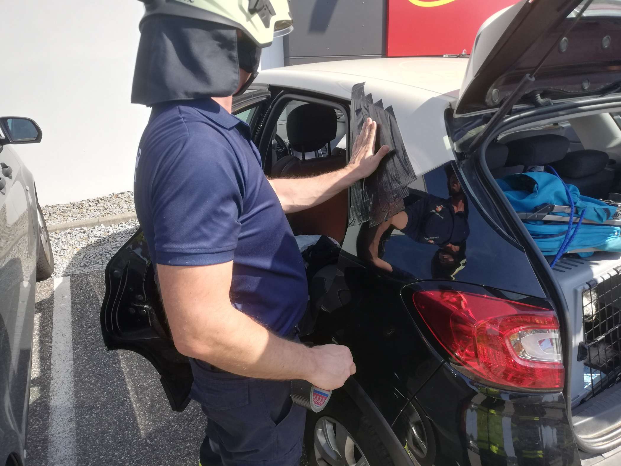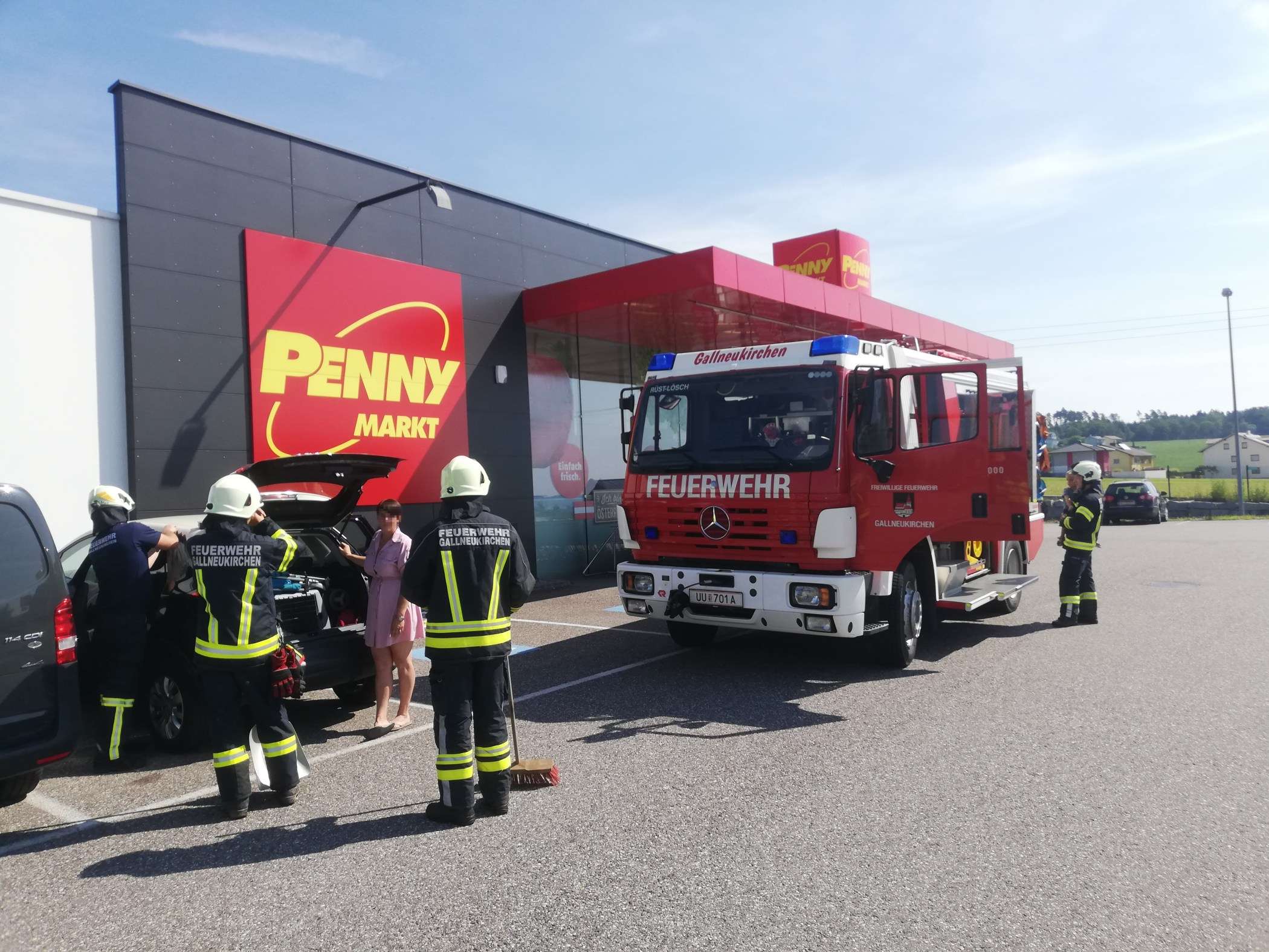 Aufgrund einer Unachtsamkeit befand sich der Schlüssel im Fahrzeug und der PKW, in welchem ein Kind und ein Hund saßen, hatte sich von selbst versperrt.