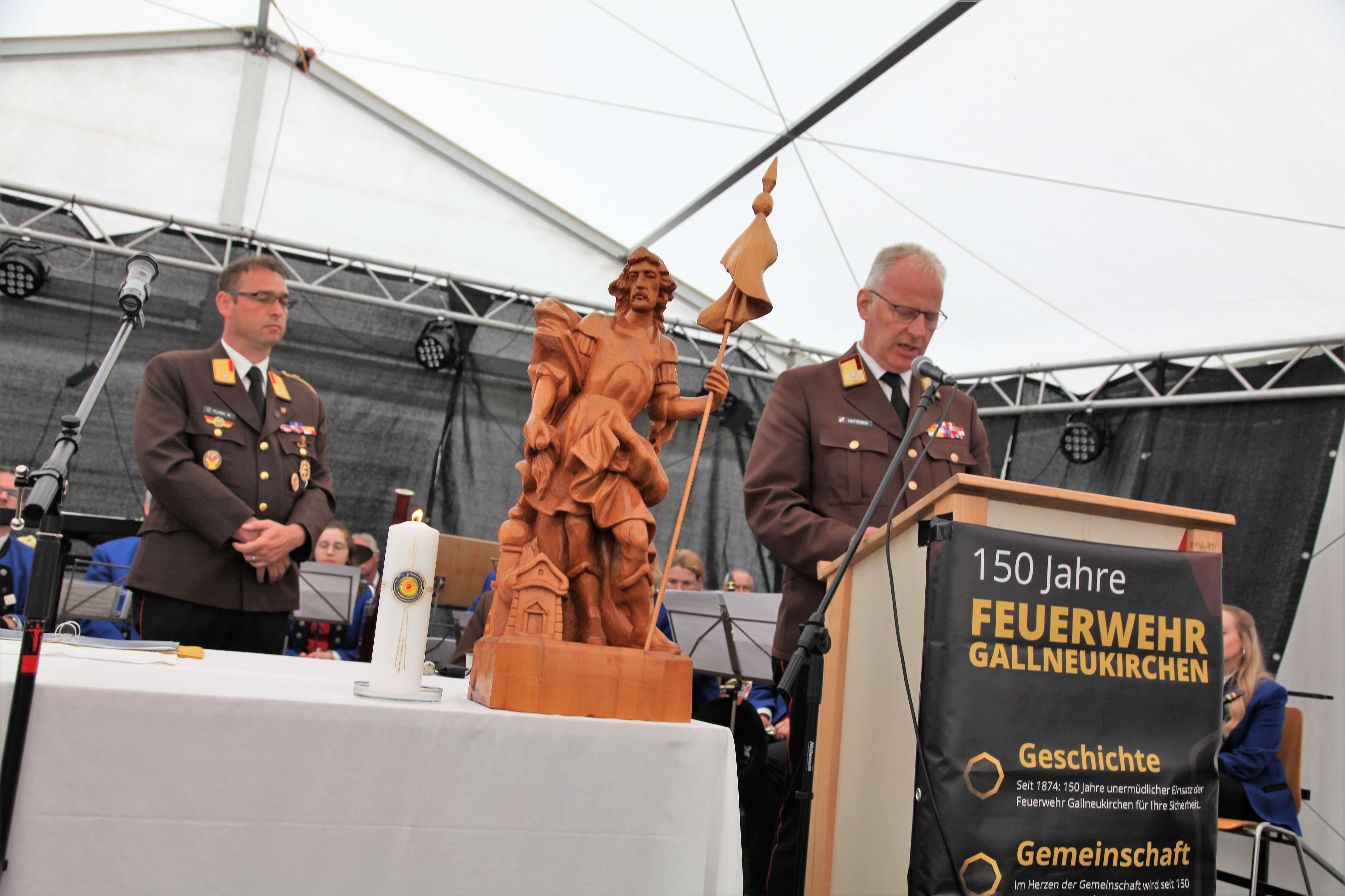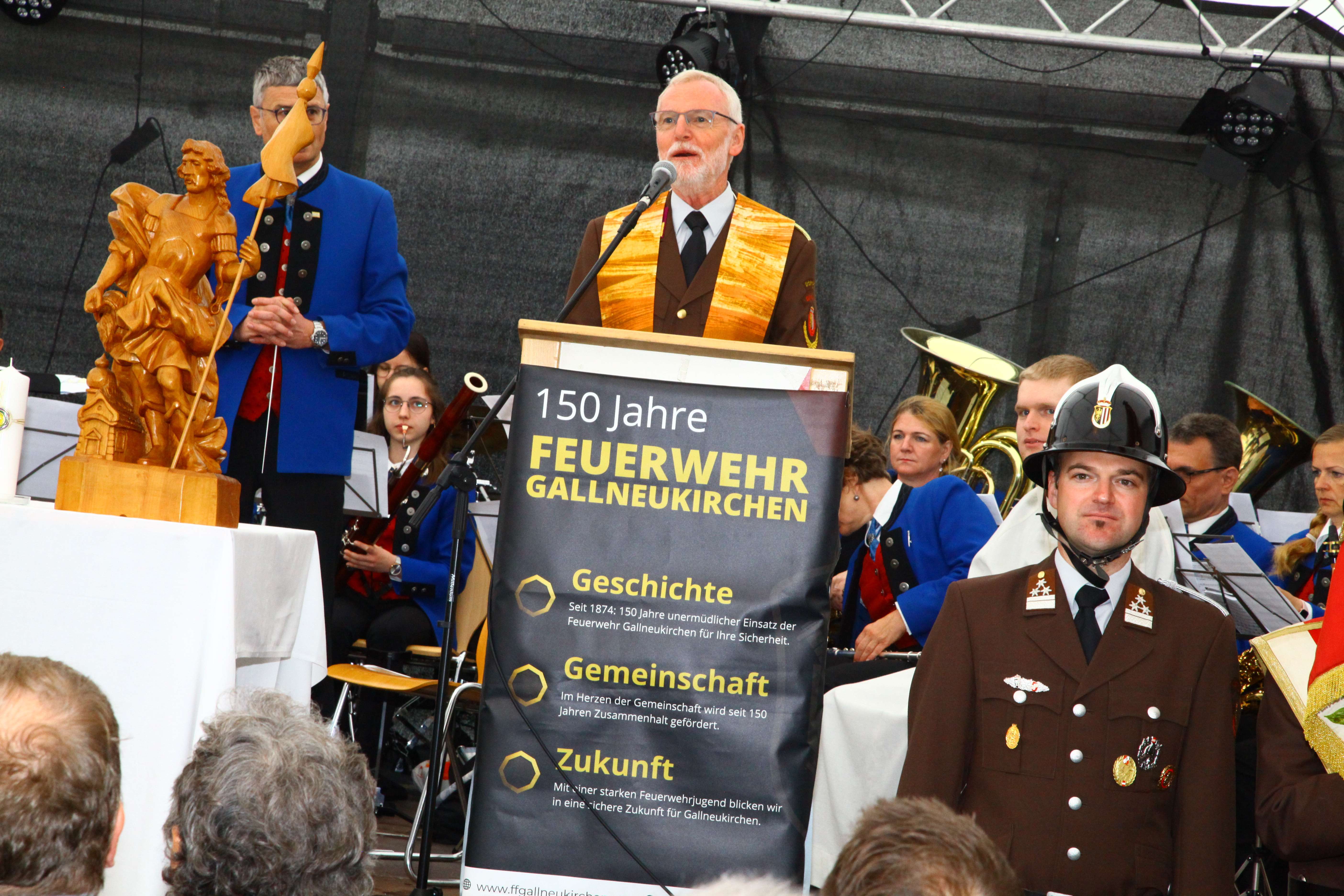 Der Sonntag begann mit einer Florianimesse, bei welcher die neue Traditionsfahne der Feuerwehr Gallneukirchen anlässlich des 150. Gründungsjubiläums durch Pfarrer Klaus Dopler gesegnet wurde. Die Fahne wurde zuvor von einem Marschblock bestehend aus zahlreichen Kameraden der anwesenden Feuerwehren, dem Roten Kreuz, der Stadtkapelle, den Goldhauben sowie dem Kameradschaftsbund feierlich ins Festzelt gebracht, ehe beim anschließenden Frühschoppen gefeiert wurde.An dieser Stelle möchte sich die Feuerwehr Gallneukirchen bei den zahlreich erschienenen Ehrengästen und allen involvierten Vereinen bedanken!