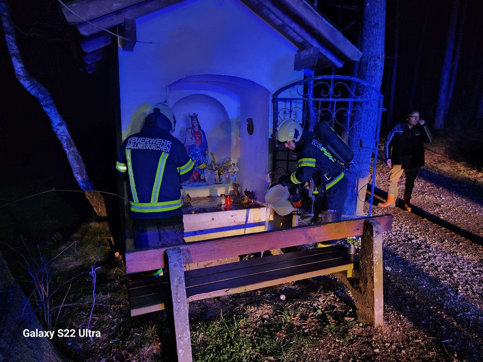 Am gestrigen Abend wurden unsere Kameraden zu einem Kleinbrand zur Warschenhofer Kapelle gerufen. Am Einsatzort wurde das Feuer mithilfe eines Eimers mit Wasser gelöscht. Anschließend wurde die kleine Brandstelle gereinigt und unsere Einsatzkräfte konnten wieder einrücken. Das Gesteck fing vermutlich durch eine umgestürzte Kerze Feuer.