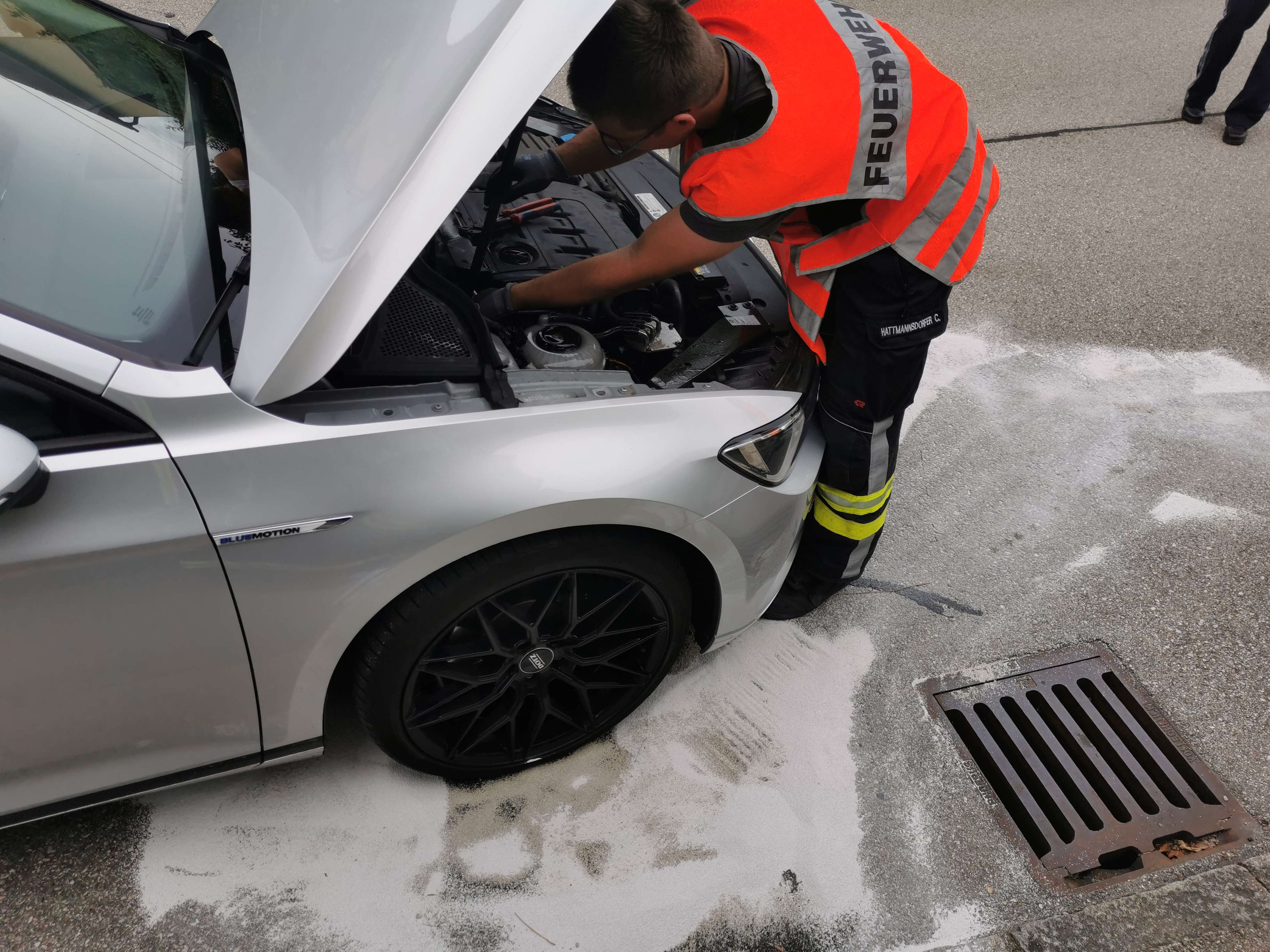 Die ausgelaufenen Betriebsmittel wurden von den Kameraden gebunden und der Fahrzeughalter an den Pannendienst verwiesen. Nach einer knappen Stunde konnten die Kameraden wieder einrücken.