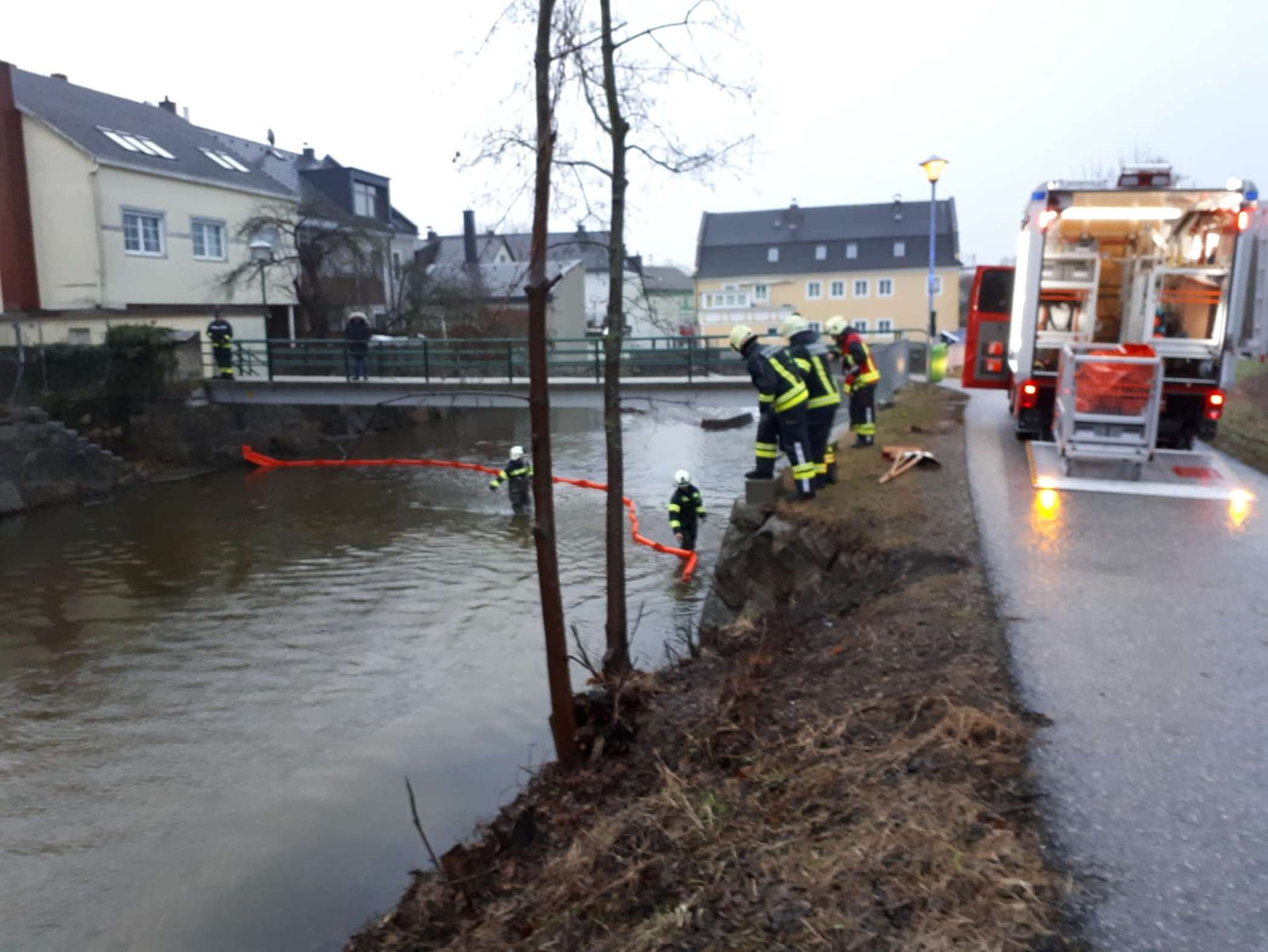Um den bereits auf der Gusen vorhandenen Ölfilm zu entfernen wurde eine Ölsperre aufgebaut.