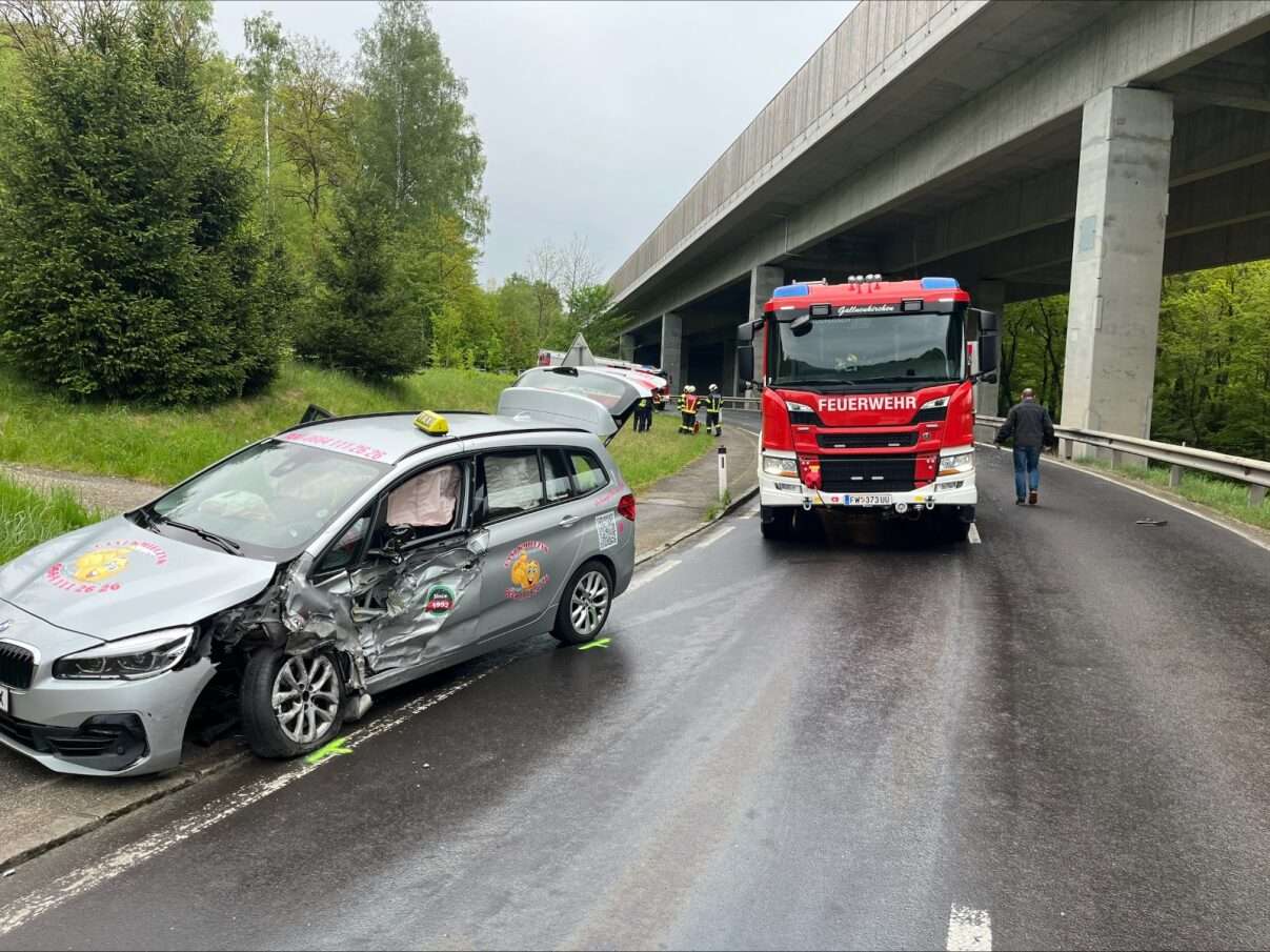 Vermutlich aufgrund einer Ölspur geriet ein PKW in den Gegenverkehr und kollidierte schwer mit einem entgegenkommenden Fahrzeug. Die beteiligten Personen wurden unbestimmten Grades verletzt und vom Roten Kreuz in umliegende Krankenhäuser gebracht.