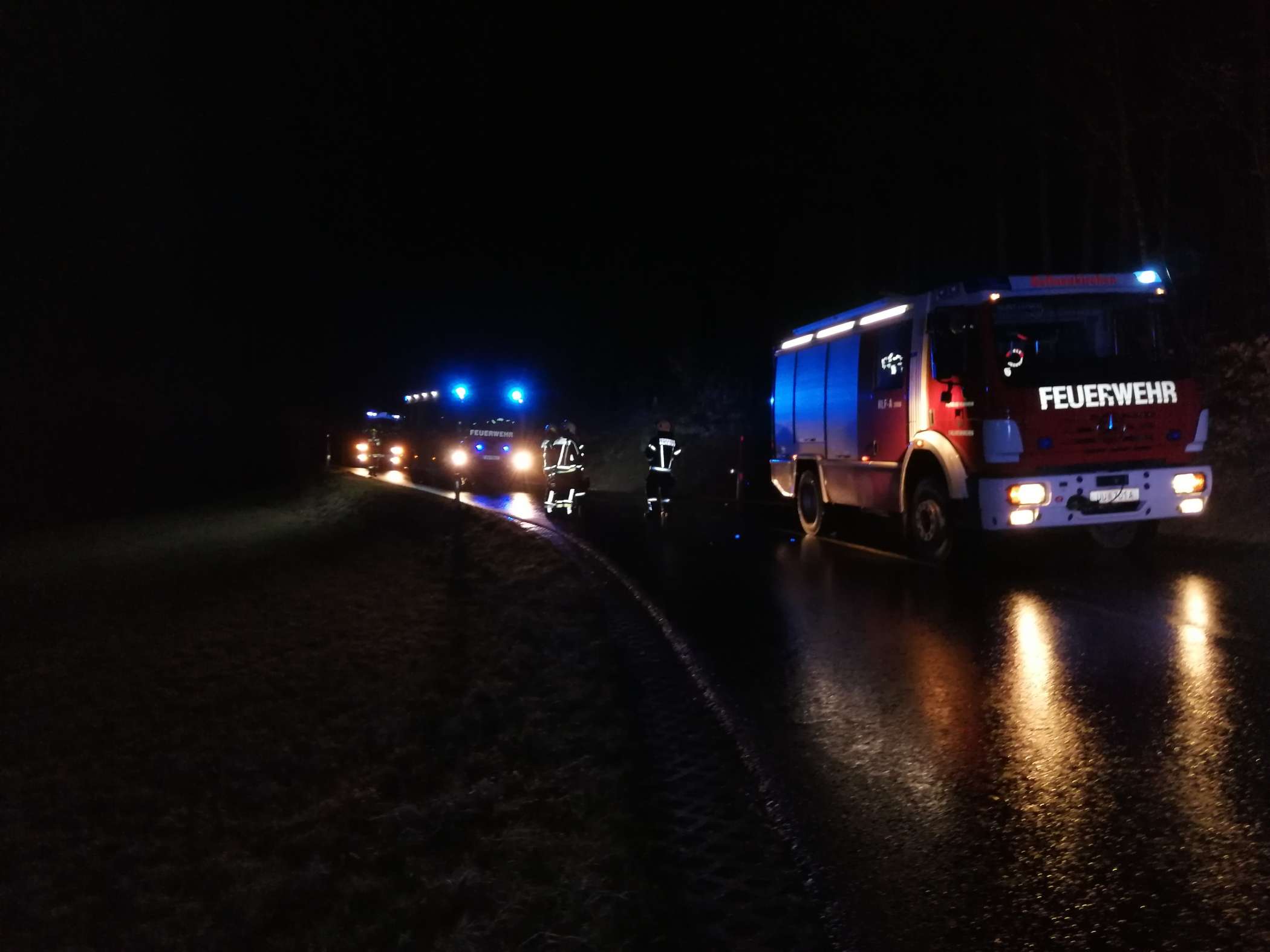 Um 23:10 Uhr wurden wir Zeugen eines Verkehrsunfalles. Ein Fahrzeug ist während des zurückschiebens von der Fahrbahn abgekommen. Die Florianis sicherten die Unfallstelle ab und kontrollierten, ob Betriebsmittel ausgelaufen waren.