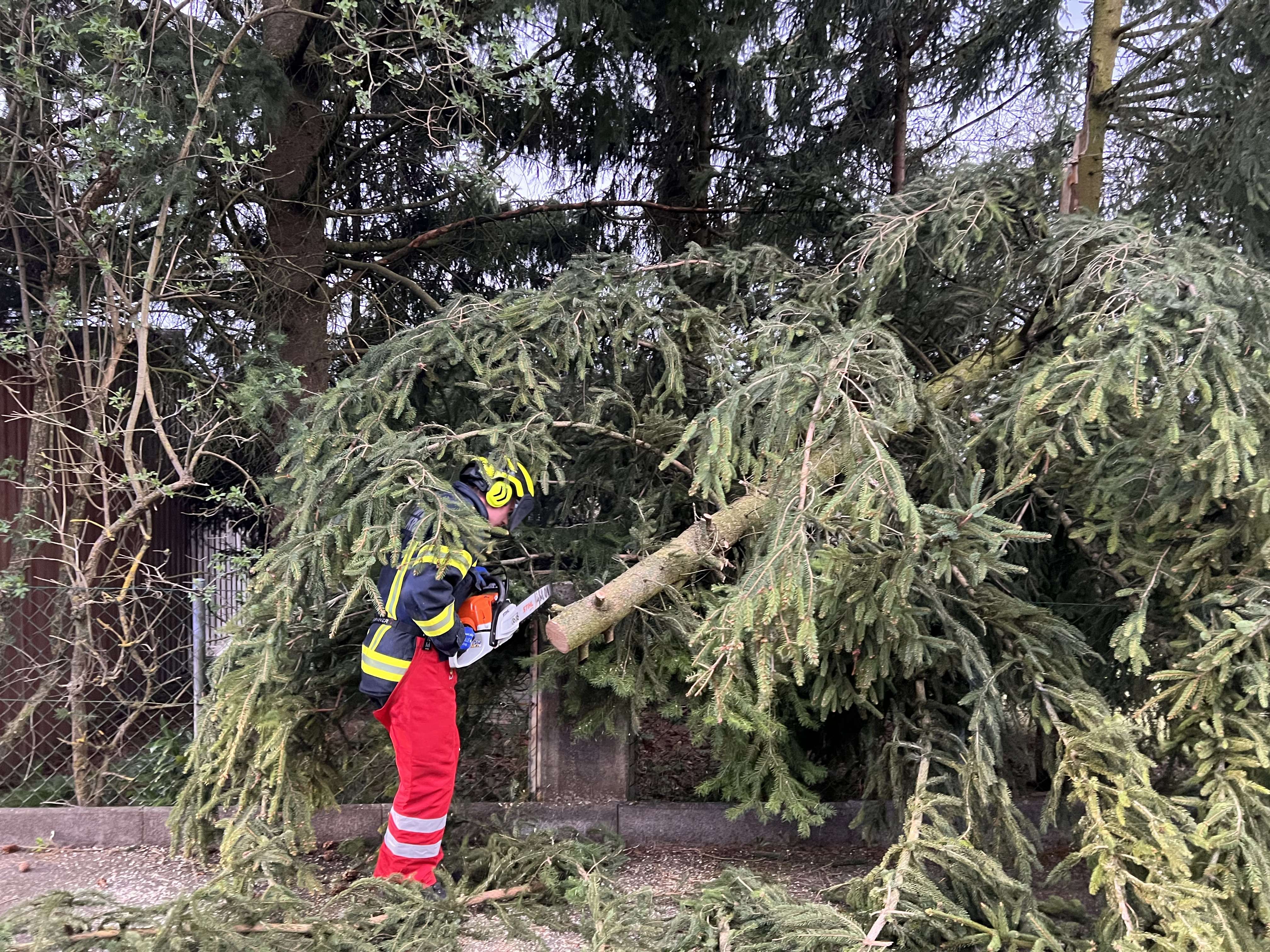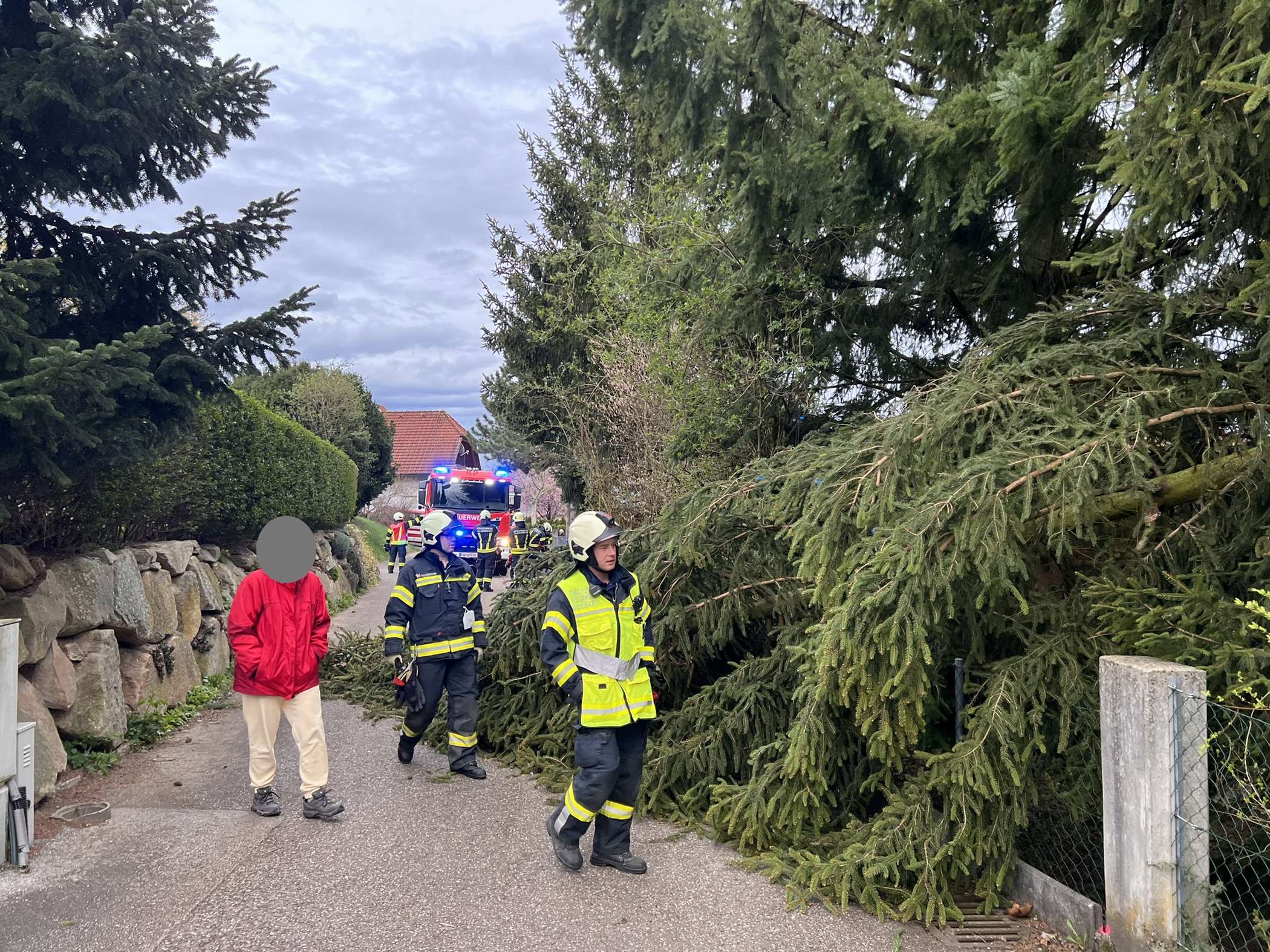 Aufgrund von hohen Windböen knickte ein Baum auf eine öffentliche Verkehrsfläche.