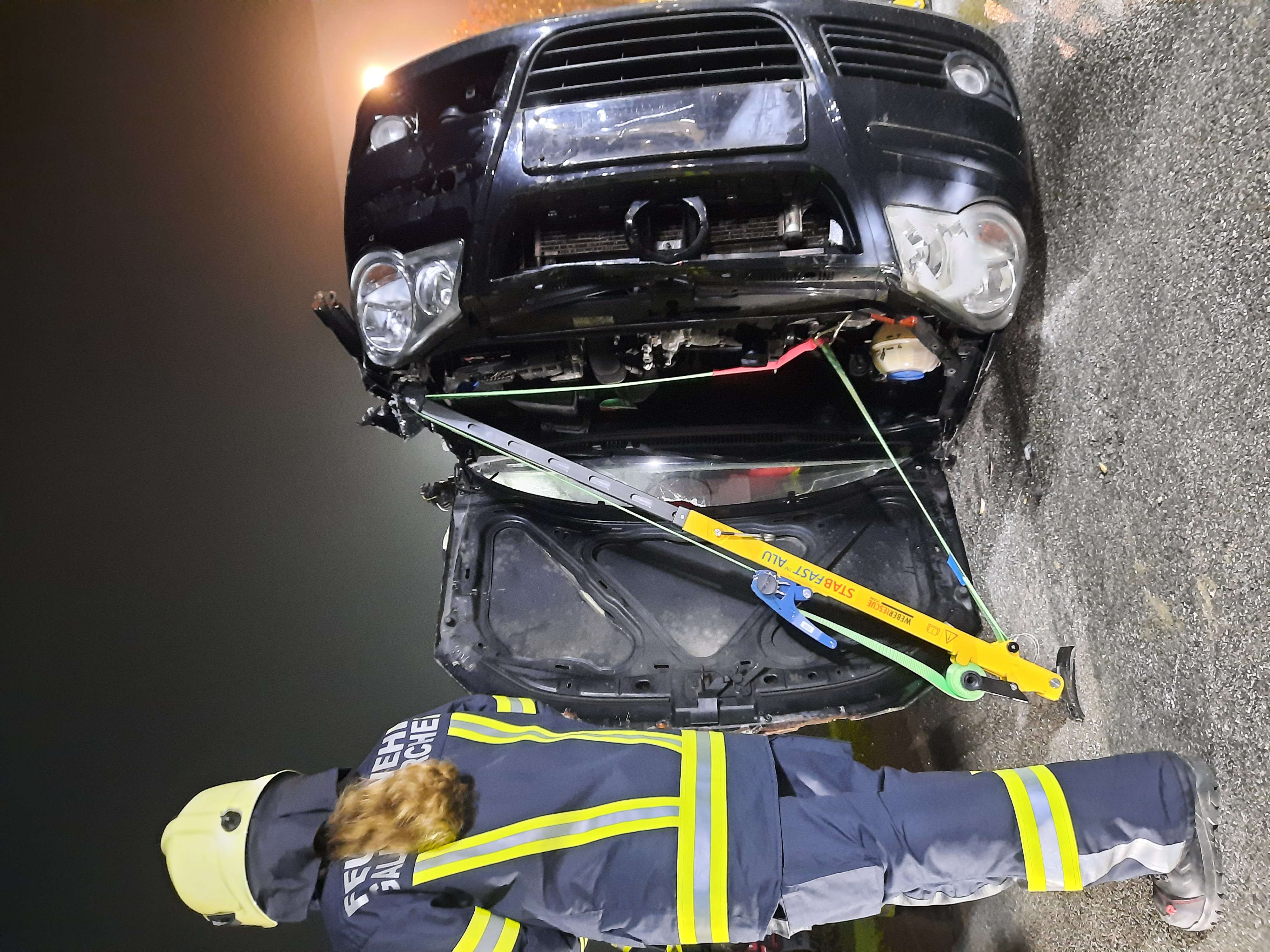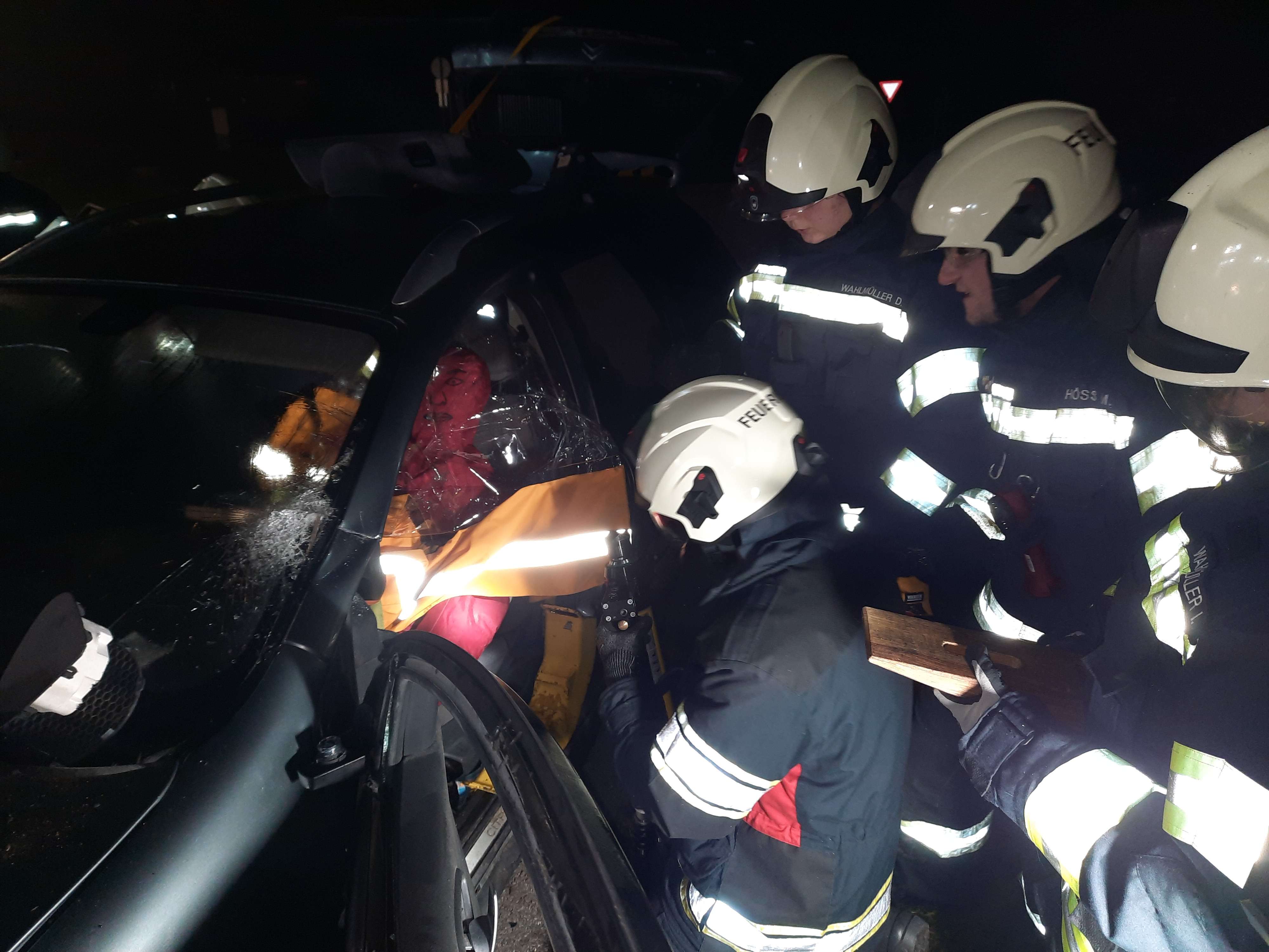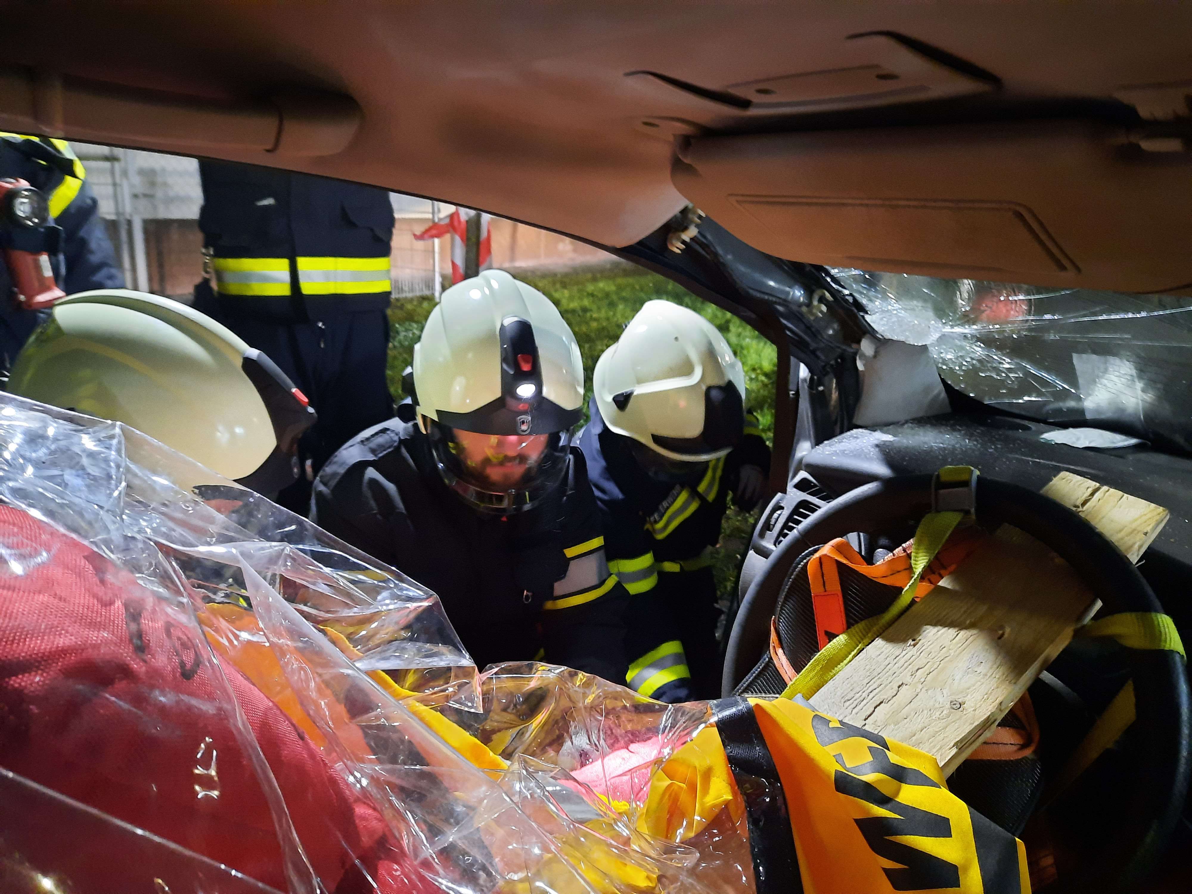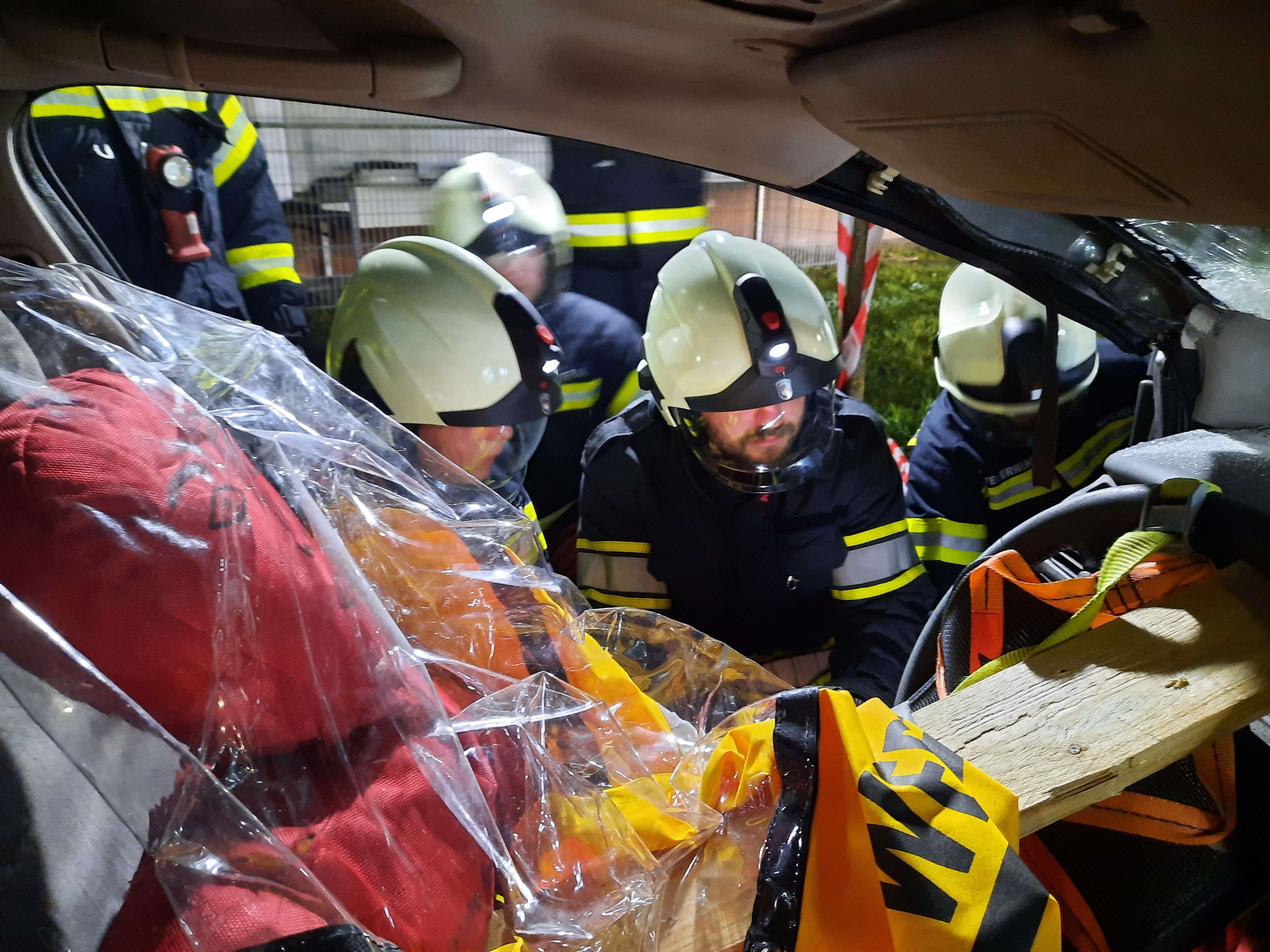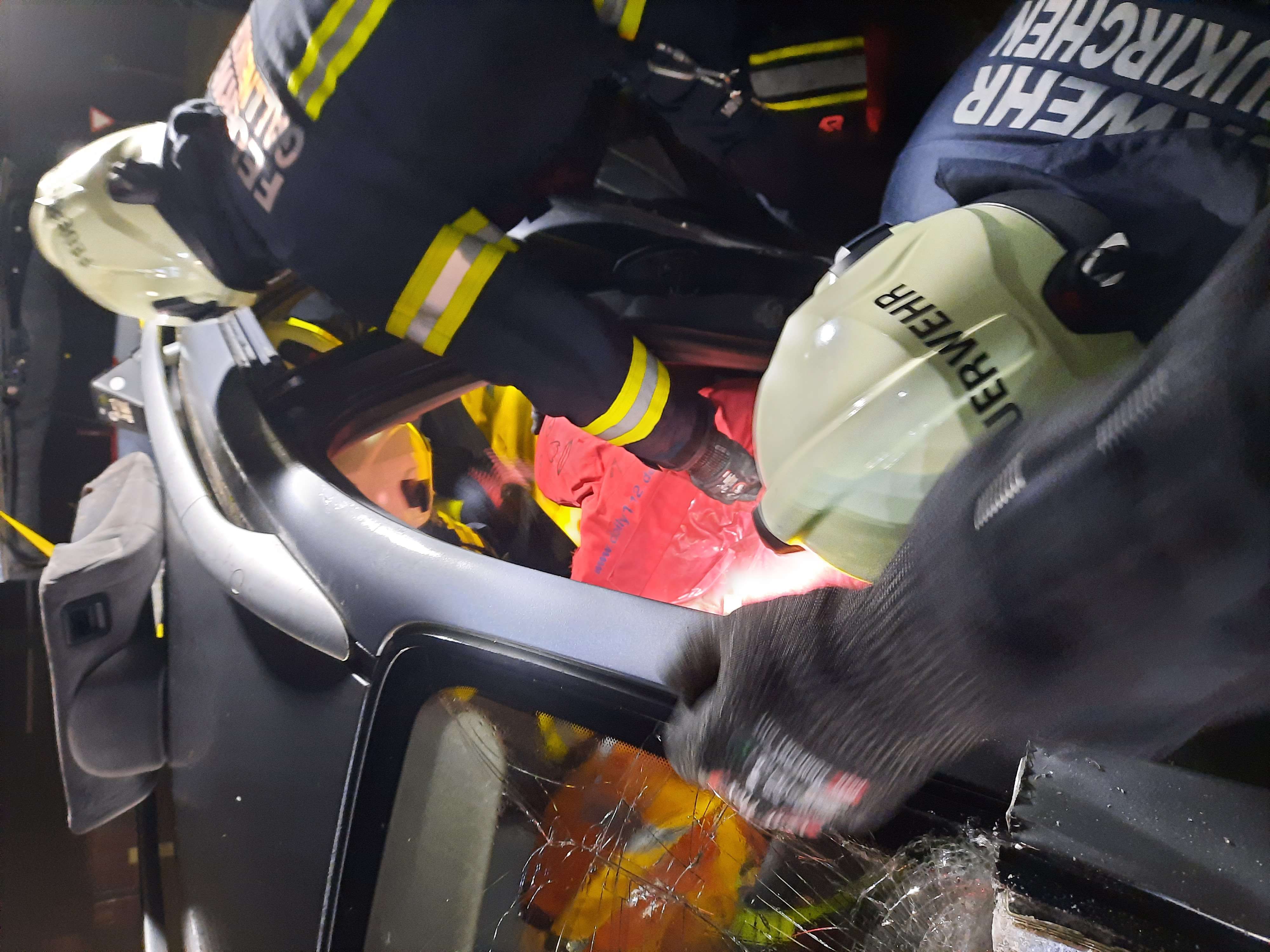 Zunächst übten die Teilnehmer, ein Fahrzeug, das auf der Seite lag, zu stabilisieren und die eingeklemmte Person mit hydraulischen Rettungsgeräten zu befreien. Zusätzlich wurde ein weiteres Szenario mit einem auf den Rädern stehenden Fahrzeug durchgeführt, bei dem die Teilnehmer Türen entfernten und die Person schonend aus dem Fahrzeug befreiten.