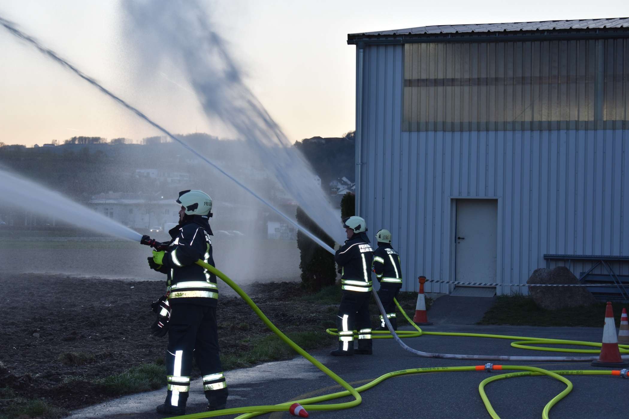 Das Ziel der heutigen Übung war die Bekämpfung des Brandes an einem "Traktor" und der Schutz der umliegenden Objekte.