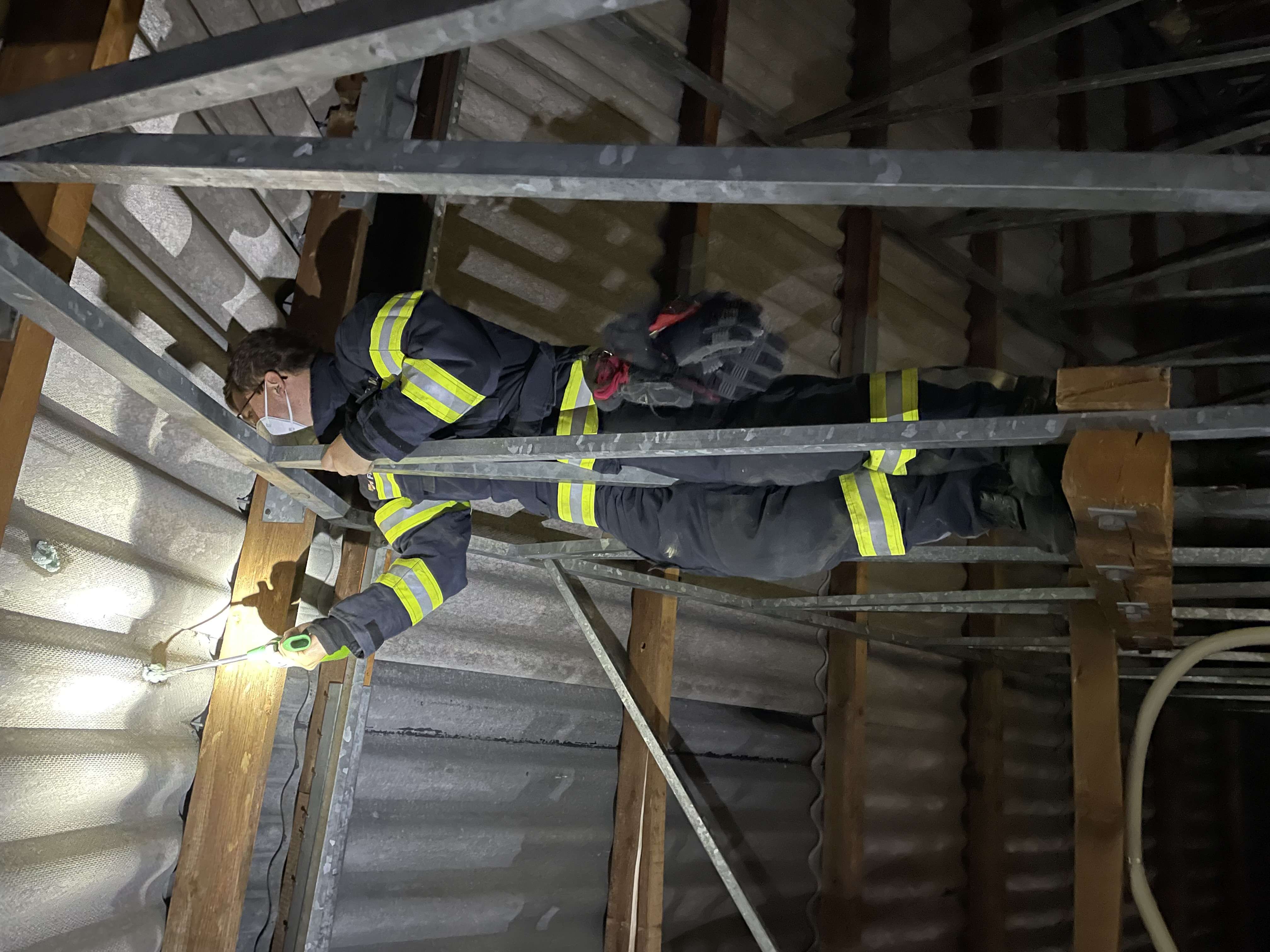 Am Tag nach dem Hagel-Unwetter ist die Feuerwehr nicht nur im eigenen Einsatzgebiet sondern auch überörtlich mit der Drehleiter im Einsatz, obwohl auch für die Abendstunden wieder Gewitter angesagt ist.