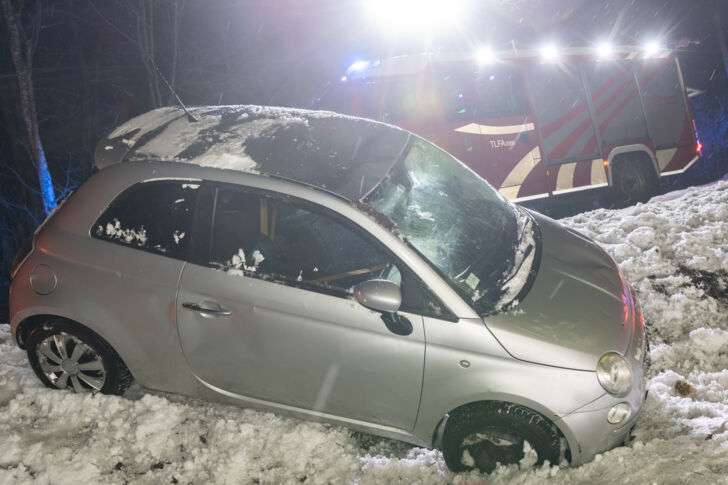 Am Abend des 12. Februars ist auf der Gusentaler Landesstraße ein PKW von der Fahrbahn abgekommen und aus unbekannter Ursache über eine kleine Böschung in ein Waldstück gestürzt.