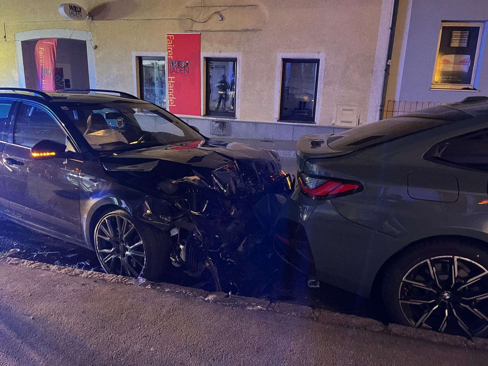 Ein schwarzer Skoda war auf der Hauptstraße auf Höhe des Lokals ,,Retro" aus bislang unbekannter Ursache von der Fahrbahn abgekommen. In weiterer Folge kollidierte das Fahrzeug mit einem am Straßenrand abgestellten BMW sowie mit einem Baum. Durch die Wucht des Aufpralls entstand am Skoda ein Totalschaden. Währenddessen wurde der Kofferraum vom BMW eingedrückt und massiv beschädigt.