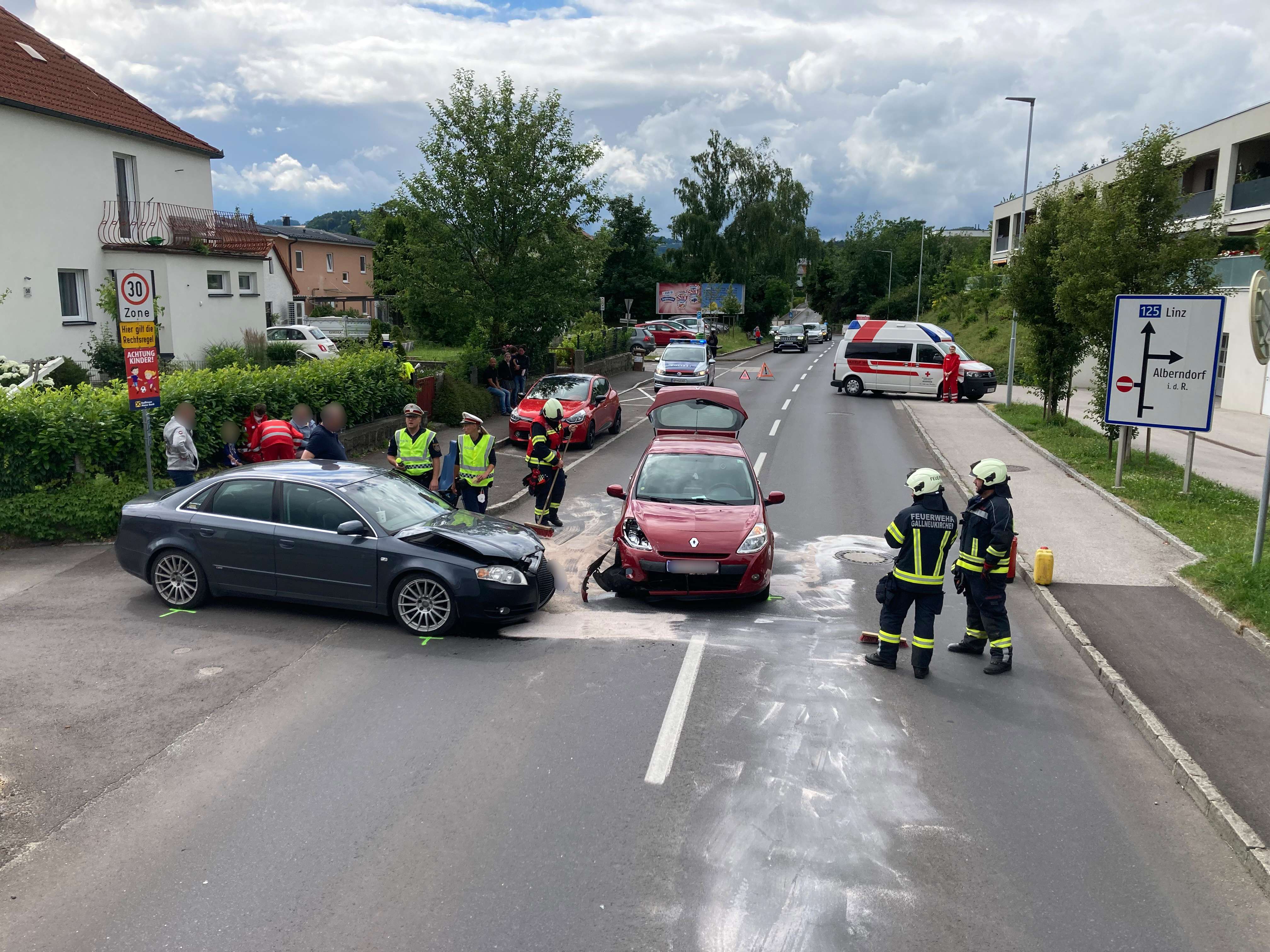 An dem Unfall waren mehrere Personen beteiligt, ein Fahzeuglenker wurde vom Roten Kreuz mit Verletzungen unbestimmten Grades in das Linzer Unfallkrankenhaus verbracht.