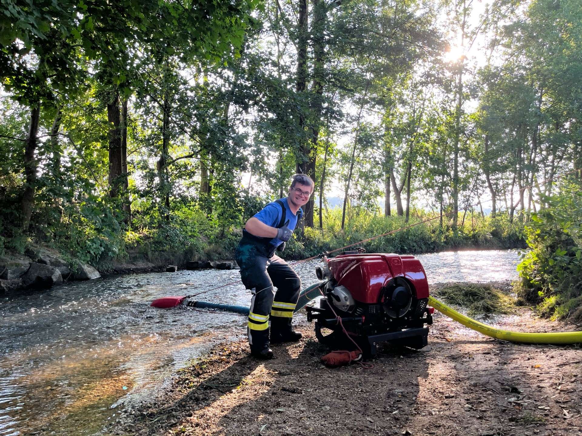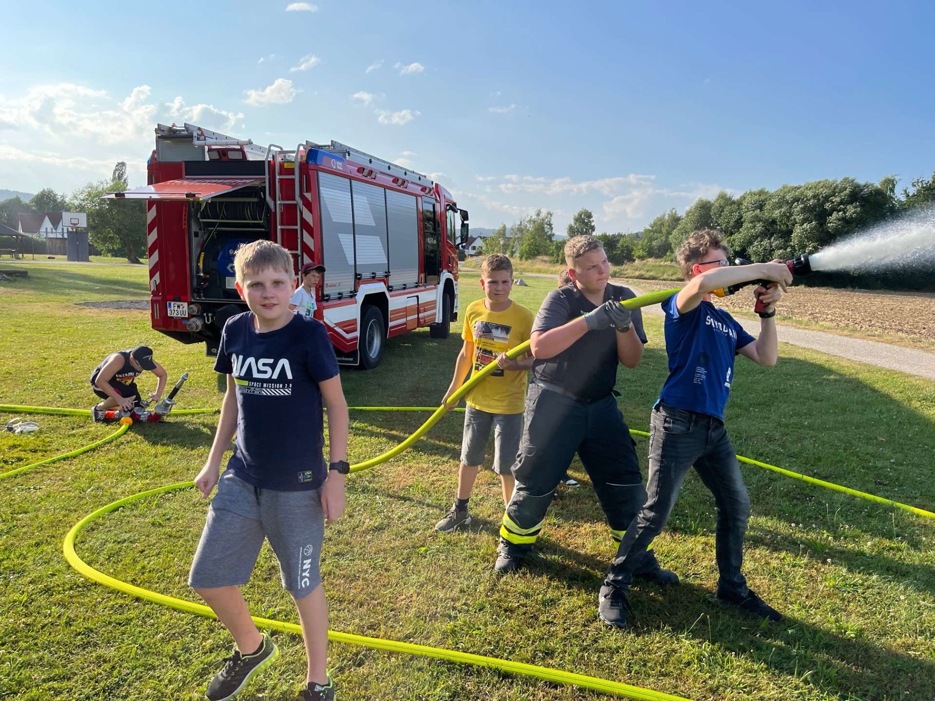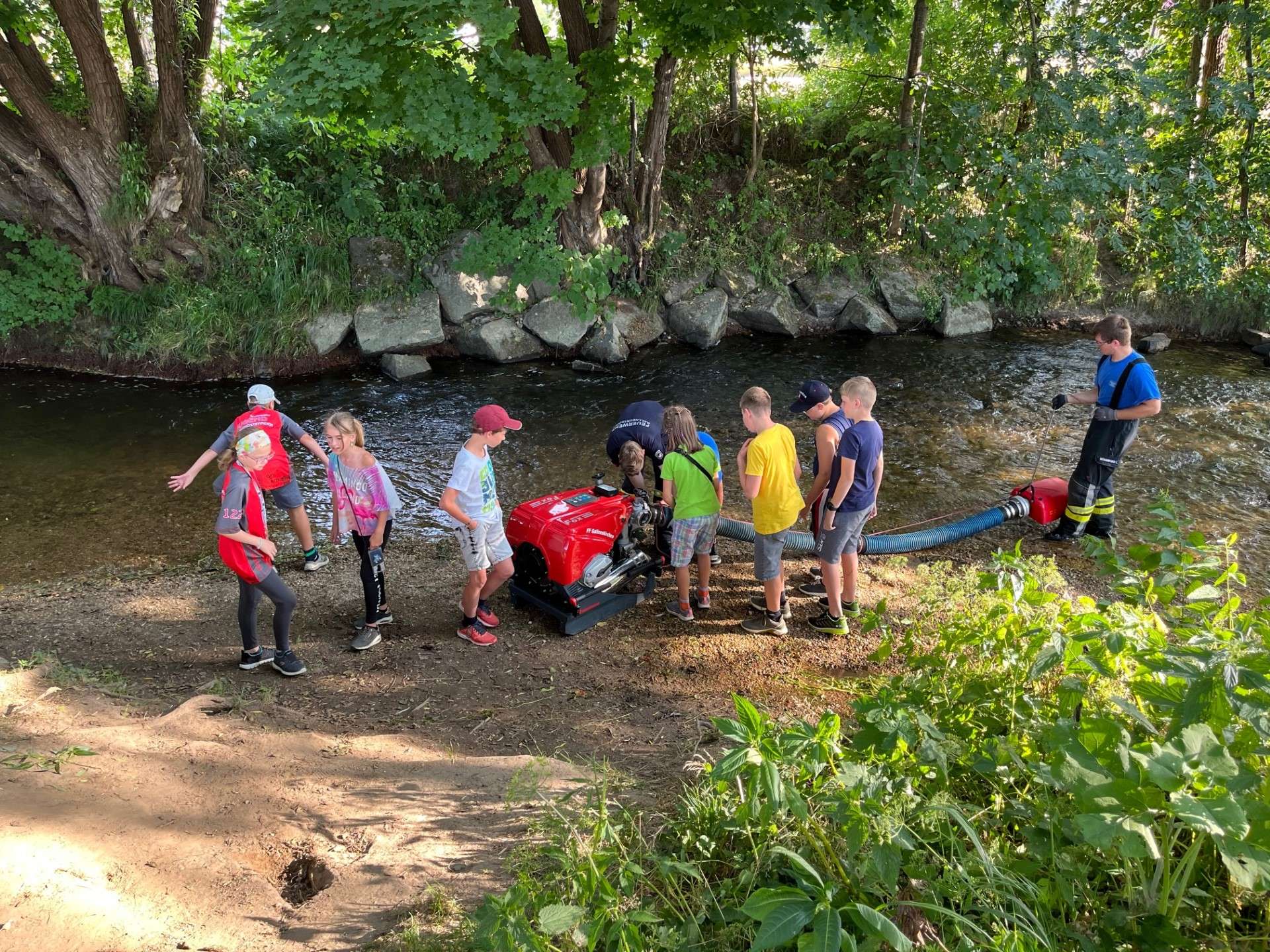 Zum Abschluss der heurigen Bewerbssaison führten die Jugendbetreuer eine Abschlussübung durch, bei der mit der Tragkraftspritze Wasser aus der Gusen entnommen wurde und mittels C-Rohren das Löschen geübt wurde. Wir Wünschen Allen schöne und erholsame Ferien.