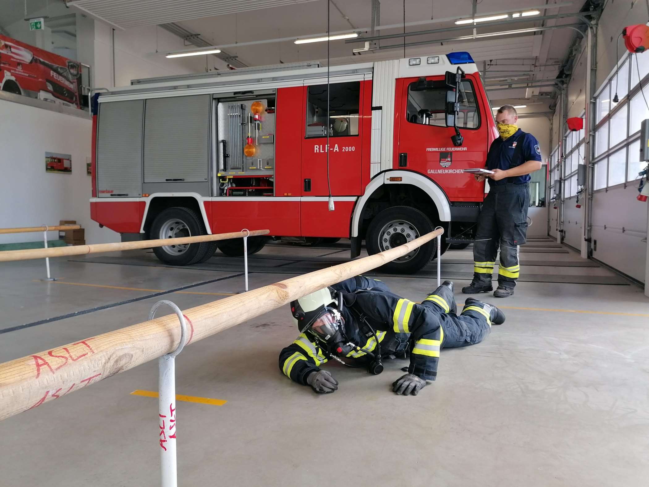 Es handelt sich dabei um einen genormten und wissenschaftlich evaluierten Leistungstest für Atemschutzgeräteträger in kompletter persönlicher Schutzausrüstung über 5 Stationen.