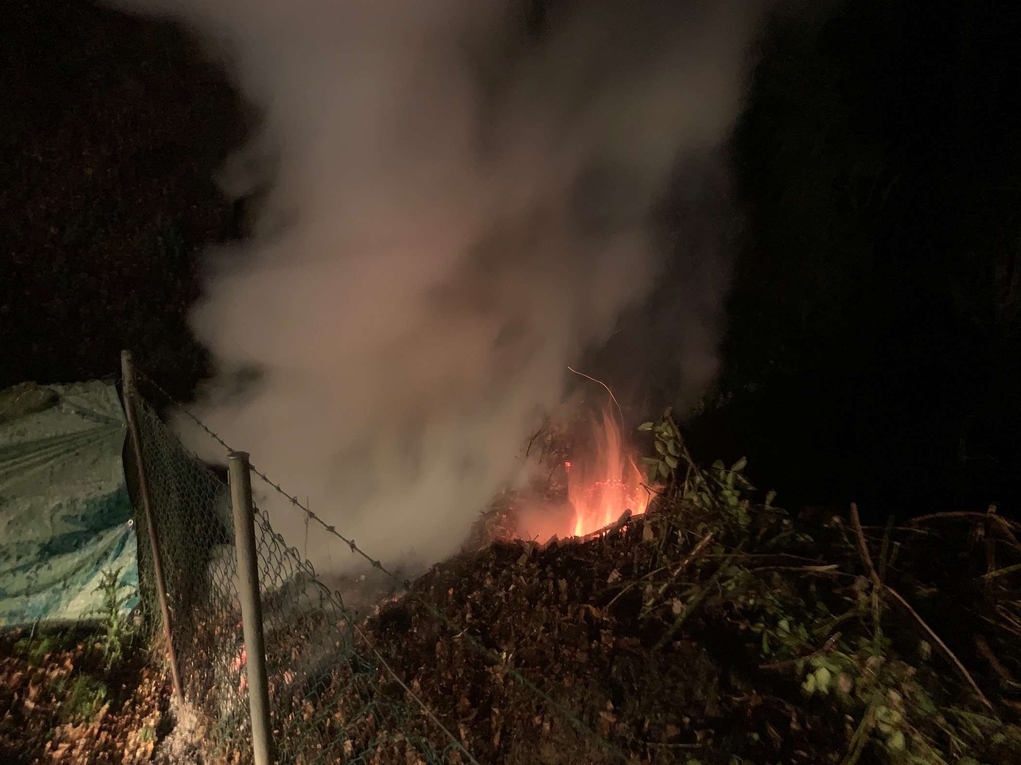 Der Offizier stellte fest, dass auf einem benachbarten Grundstück ein Komposthaufen in Brand stand.