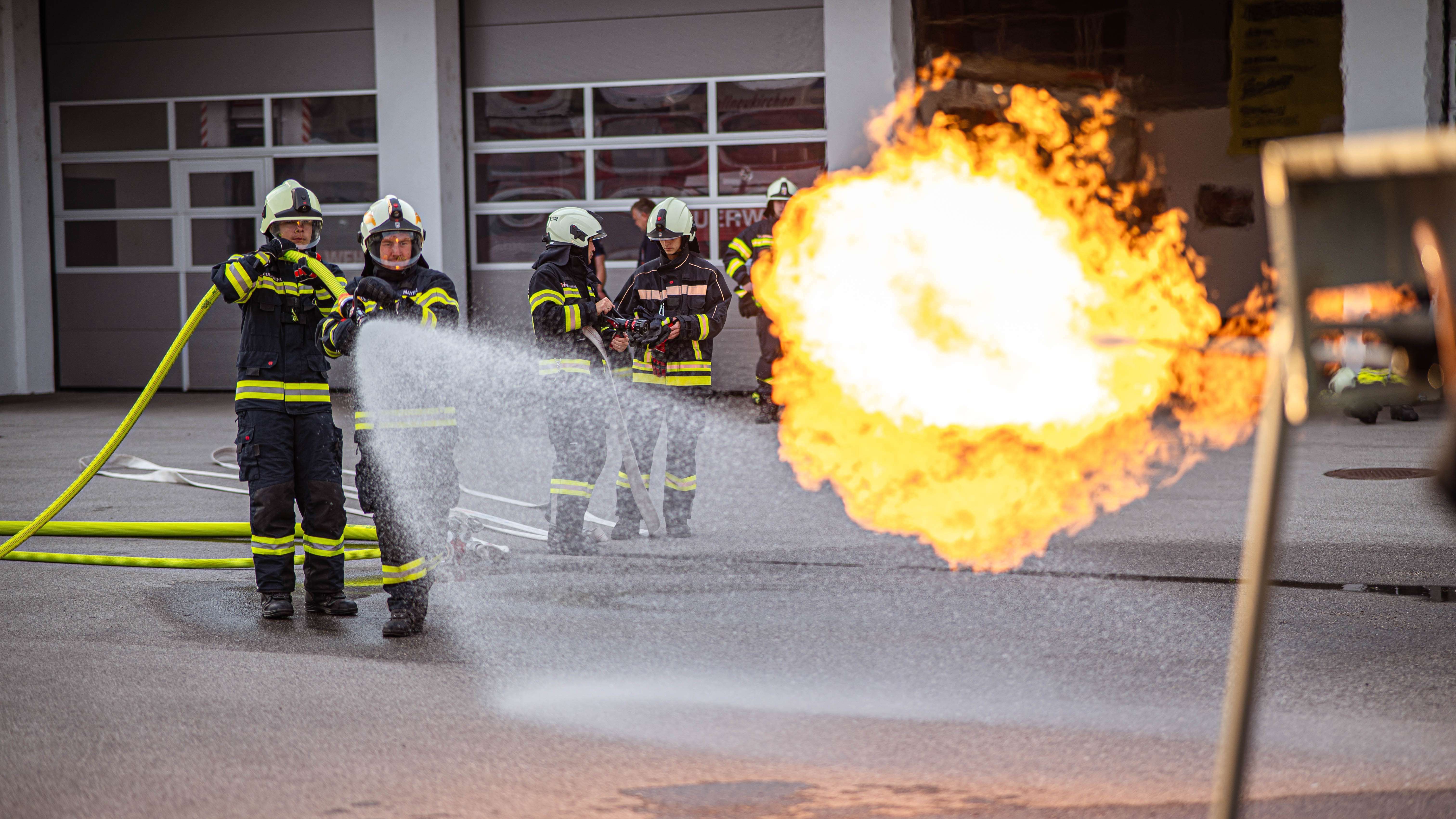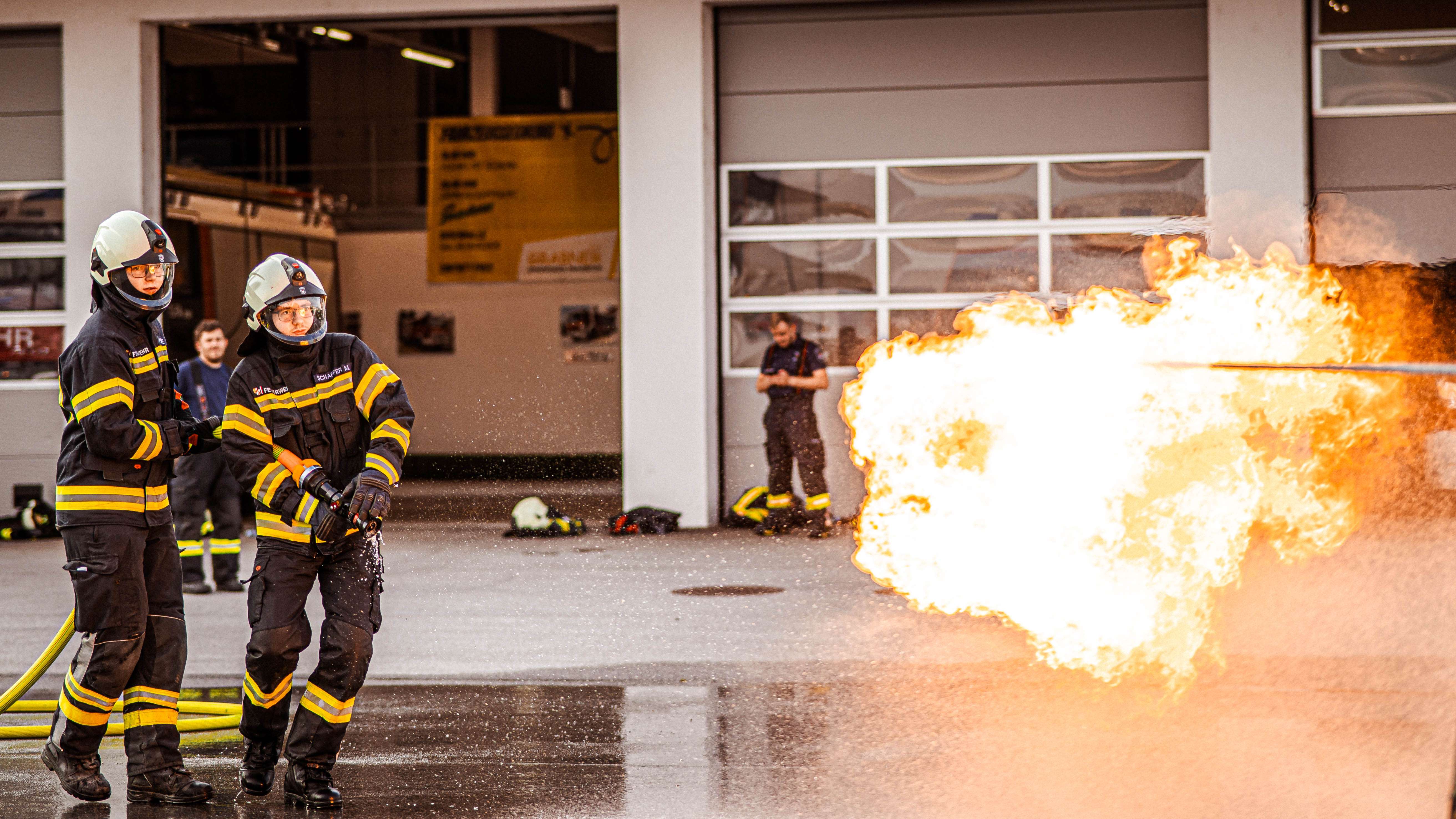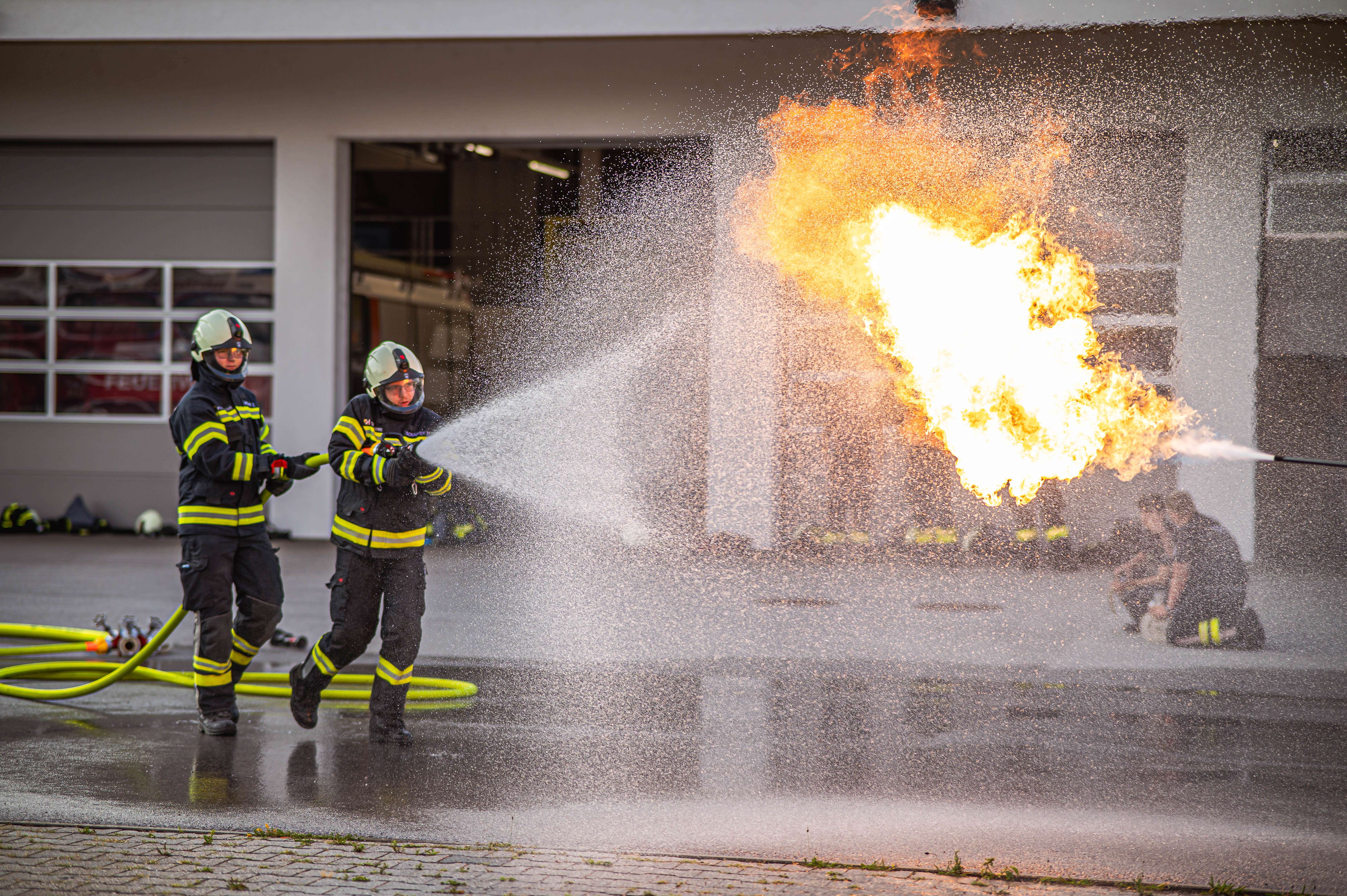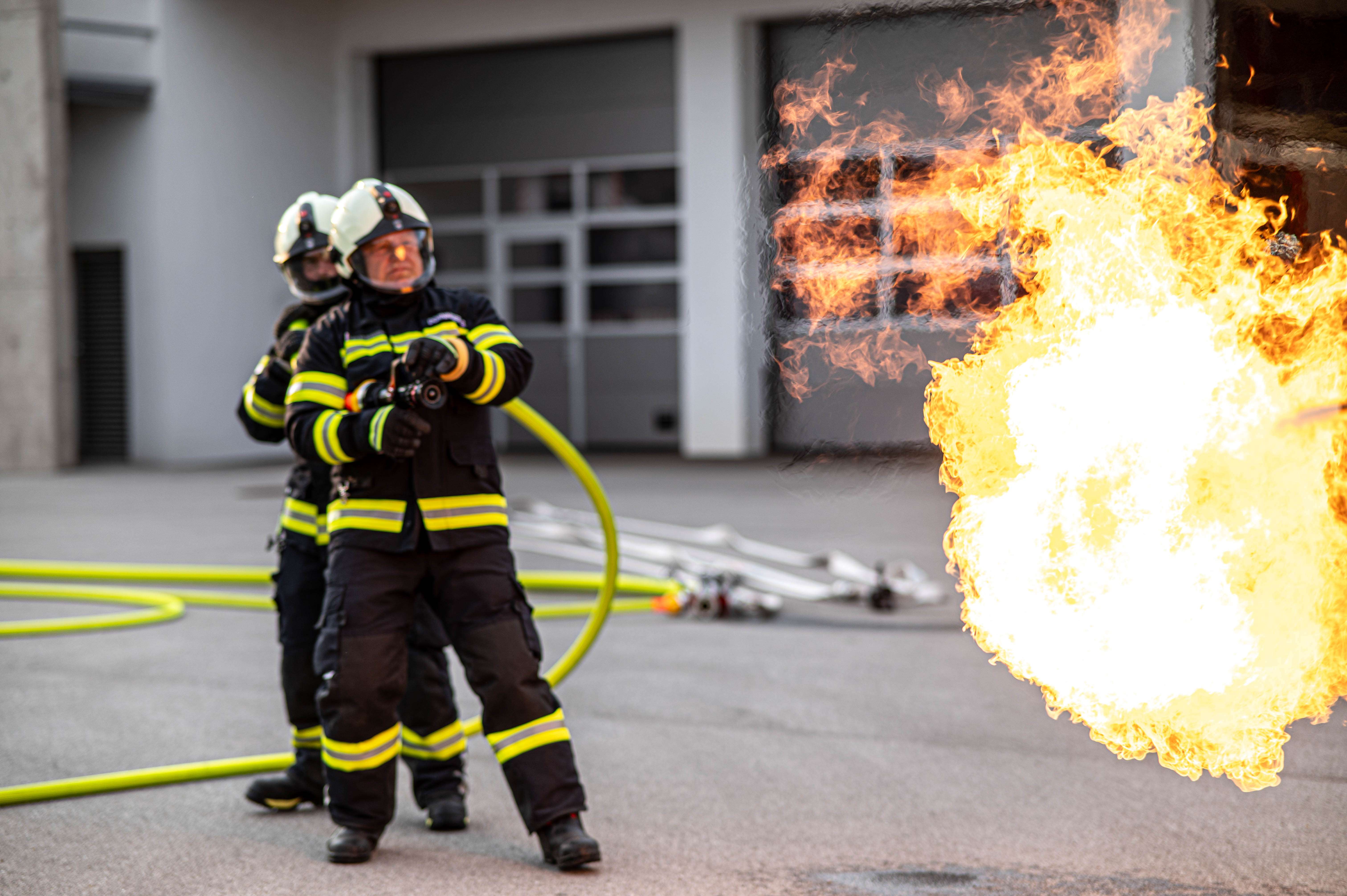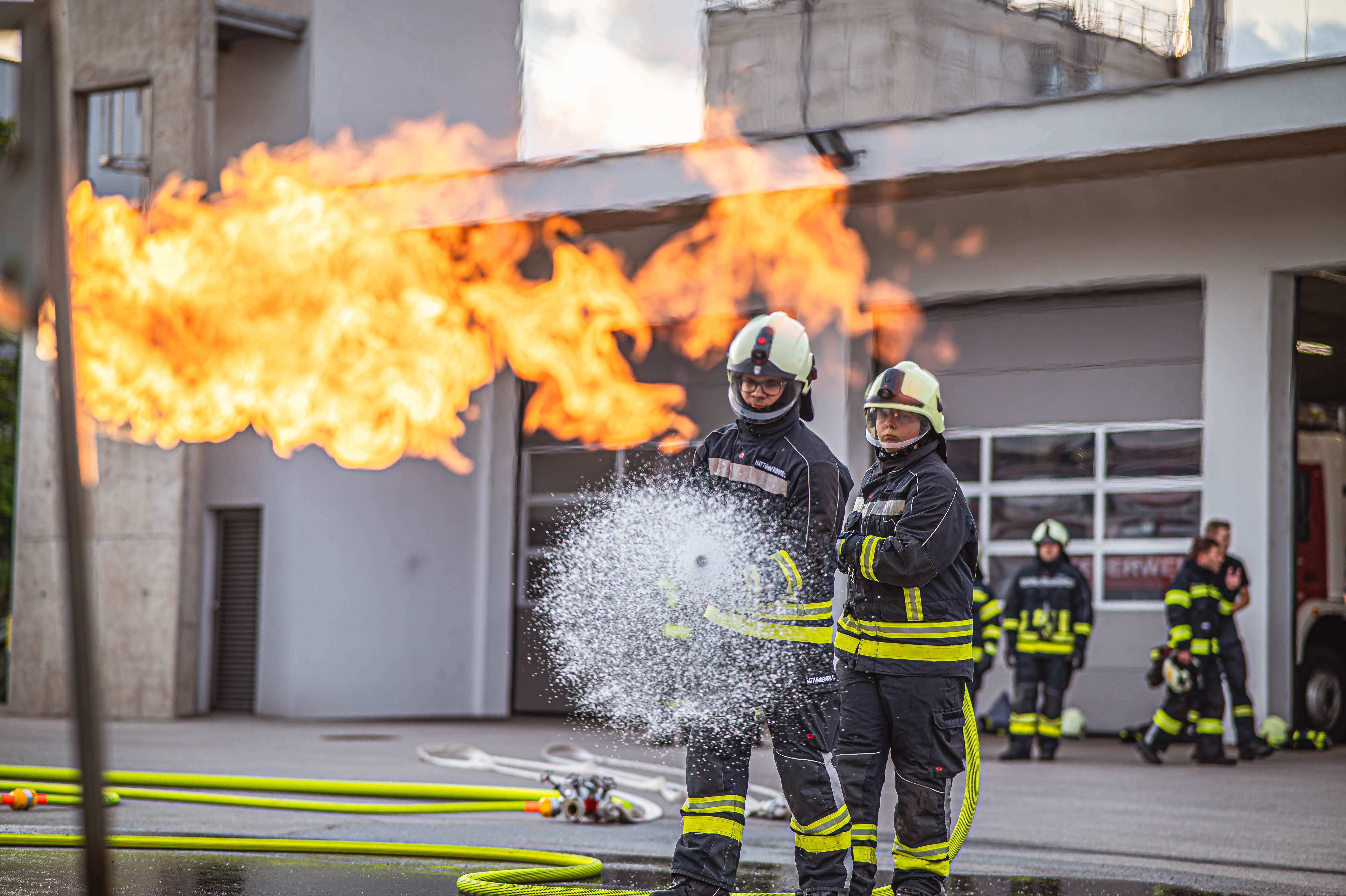 Einsatzkräfte meisterten Gassimulator-Übung: Effektiver Umgang mit Strahlrohr zur Flammlöschung trainiert