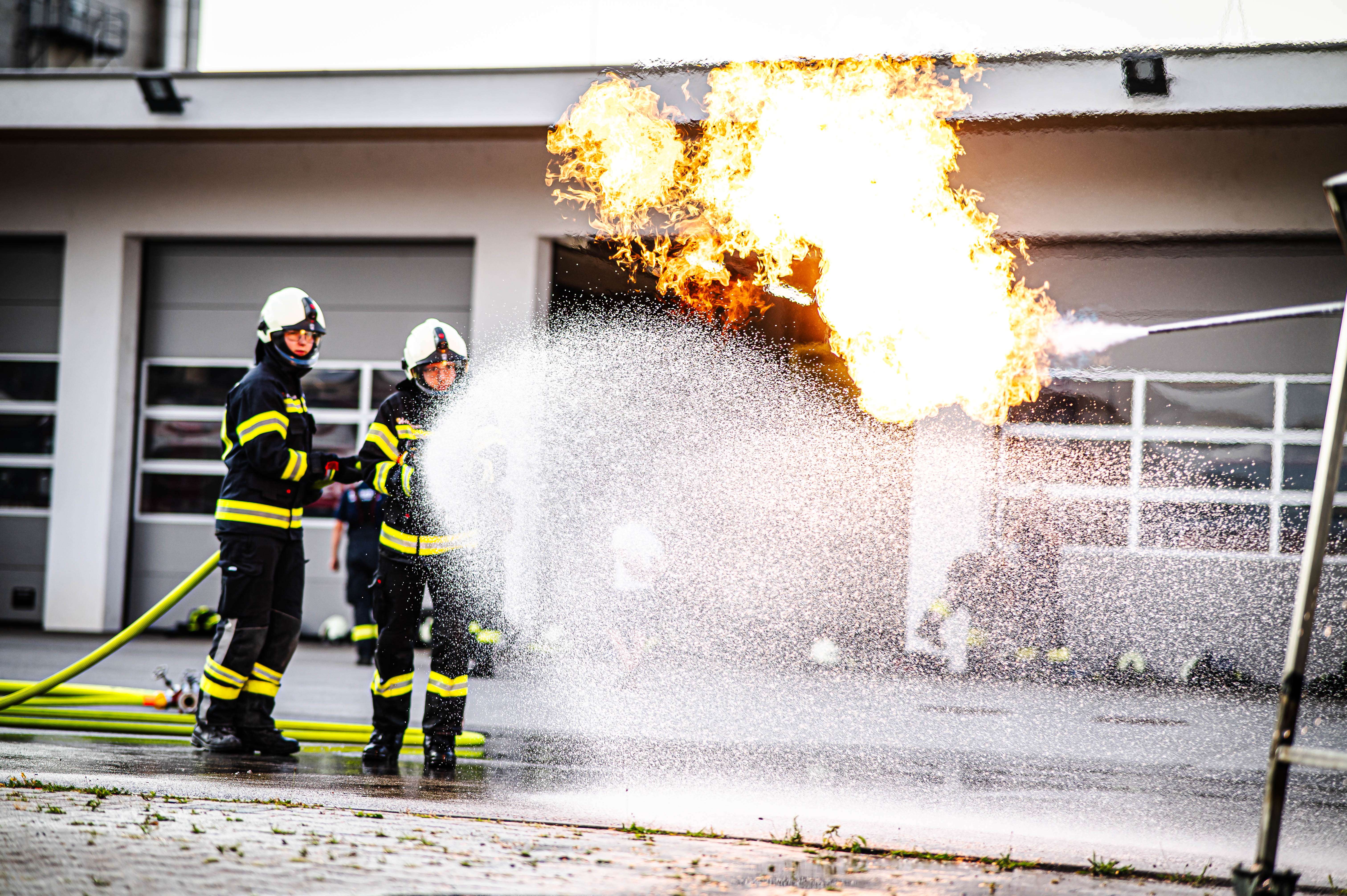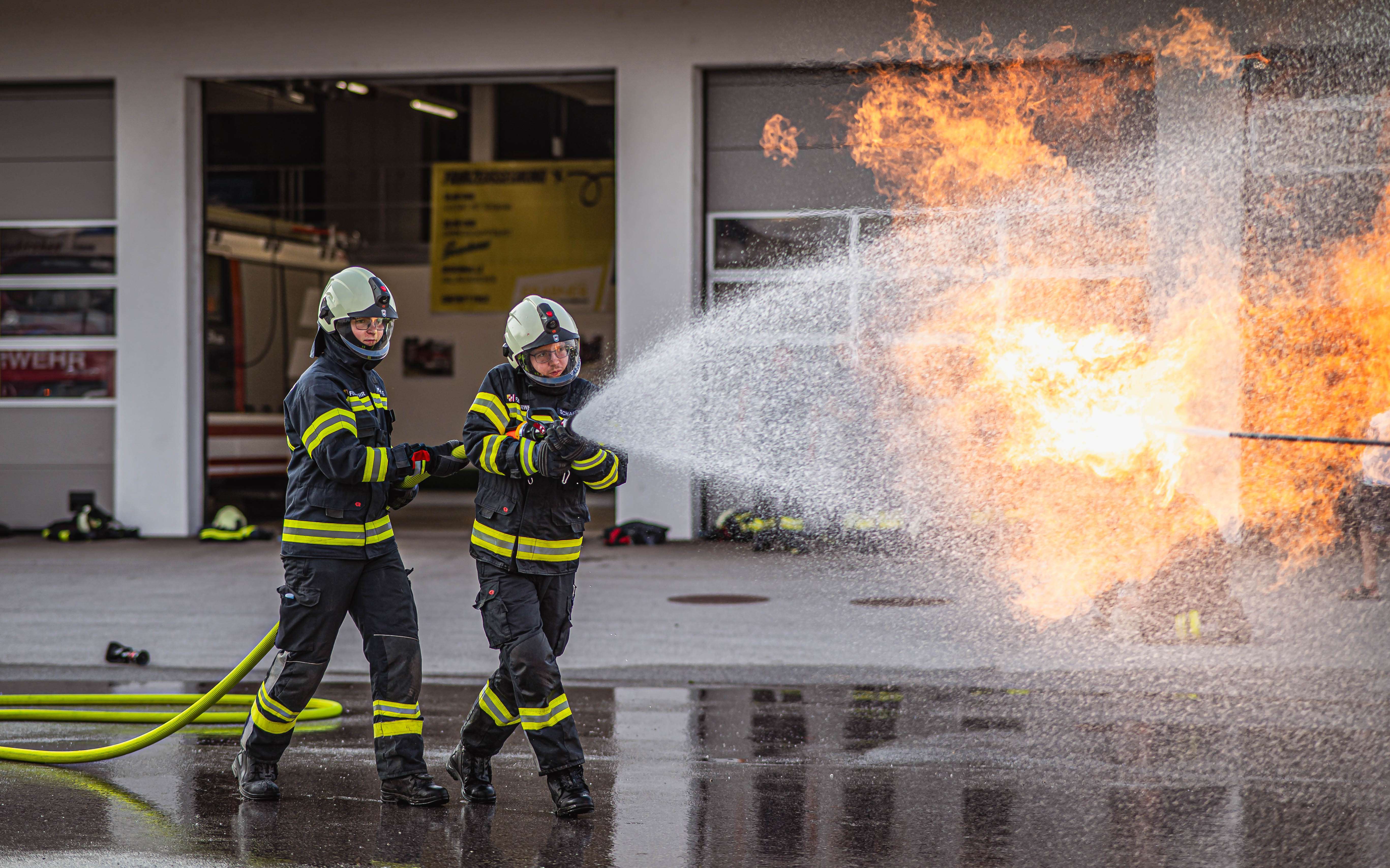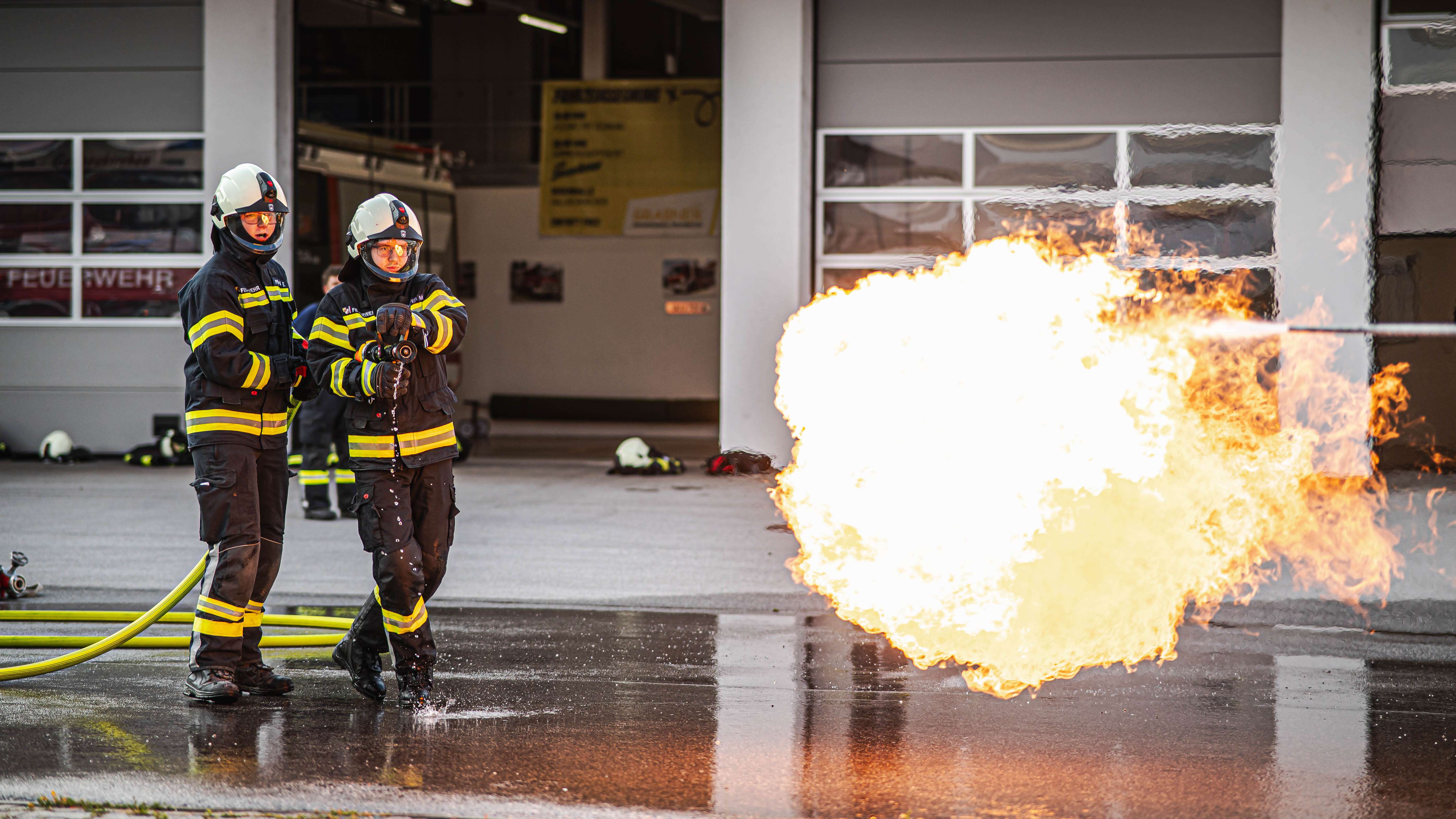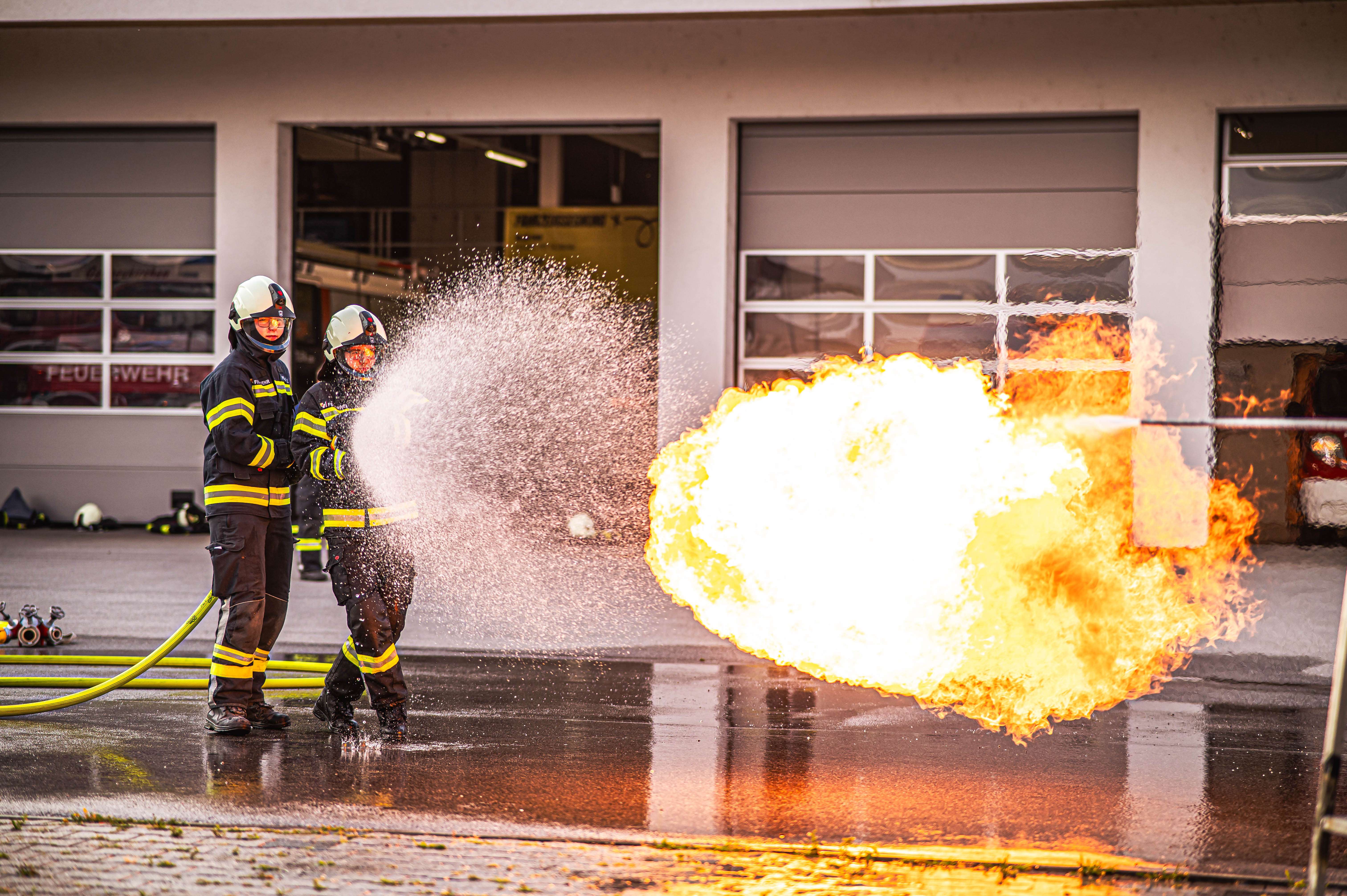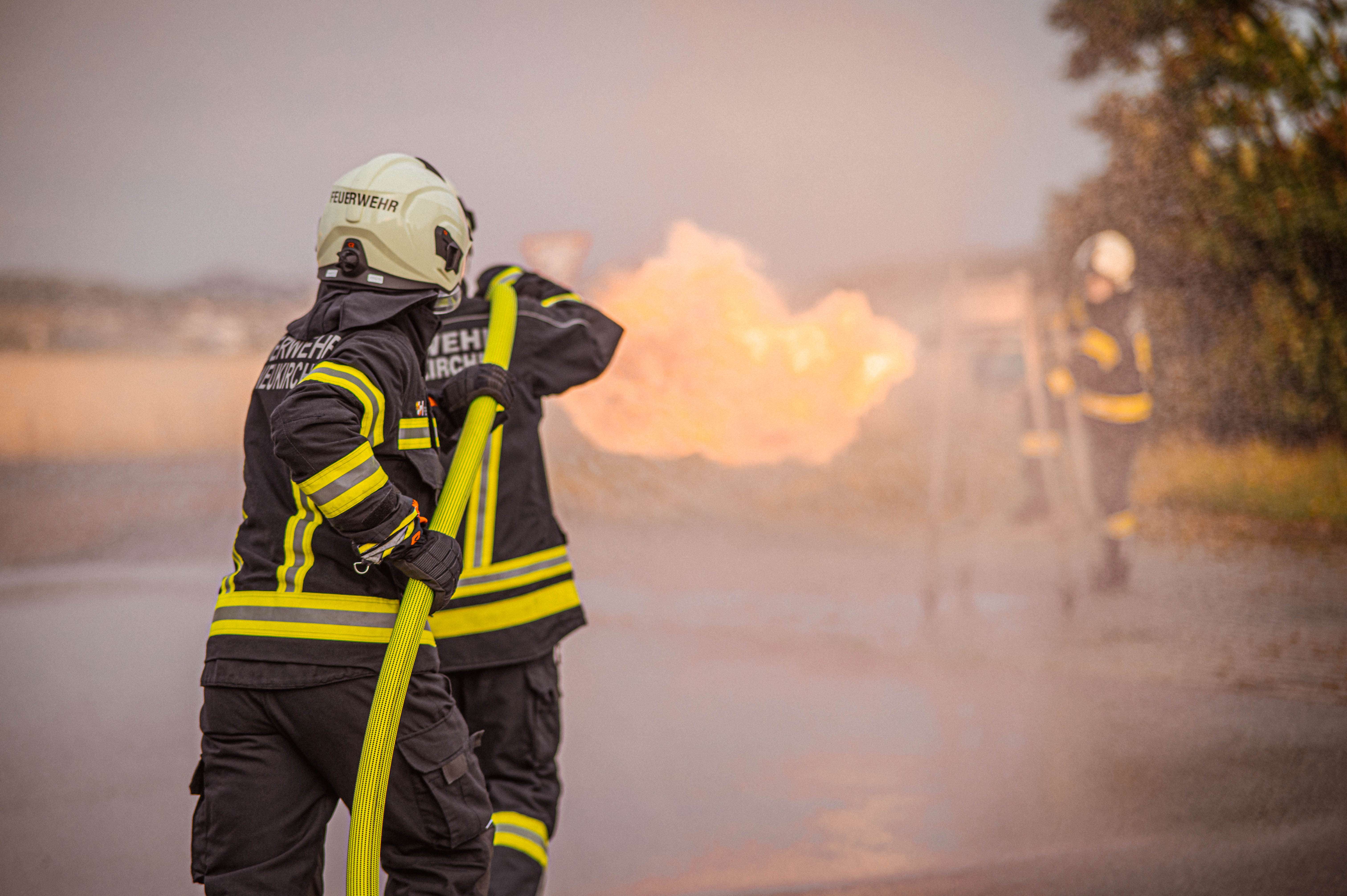 Einsatzkräfte meisterten Gassimulator-Übung: Effektiver Umgang mit Strahlrohr zur Flammlöschung trainiert