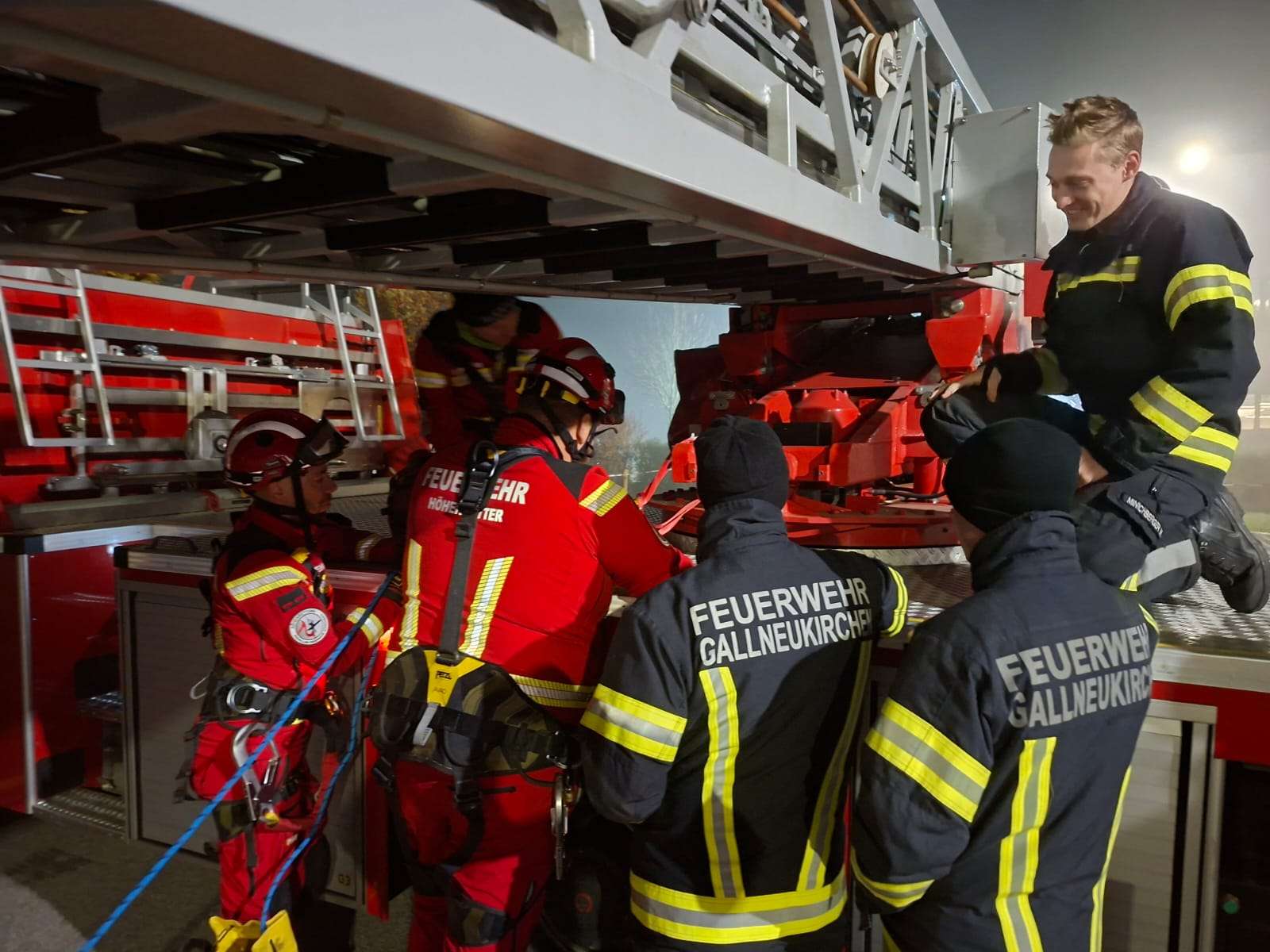 Am gestrigen Abend fand in Gallneukirchen eine gemeinsame Übung mit der FF Schweinbach statt. Die Kameraden der FF Schweinbach waren mit den Höhenretter bei uns, währenddessen wir unsere Drehleiter zur Verfügung stellten. Die Höhenretter untersuchten unsere Drehleiter, wo sie für den Ernstfall verschiedene Fixpunkte zum Sichern haben. Die Kameraden der FF Gallneukirchen übten derweil das Halten und das Sichern. Ebenso wurden Knoten geübt, wie etwa den Achterknoten oder auch den HMS Knoten.