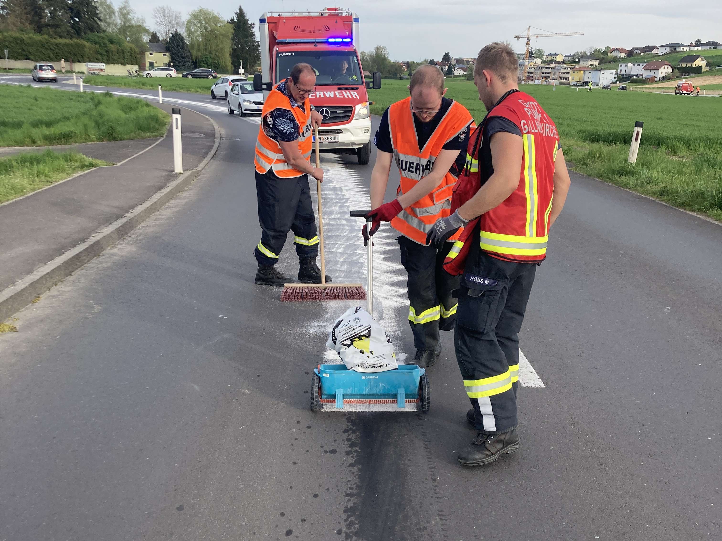 Knapp zwei Stunden beschäftigten am heutigen Feiertag ausgelaufene Betriebsmittel die Kameraden der Feuerwehr Gallneukirchen.Vermutlich durch ein technisches Gebrechen verlor ein von Schweinbach kommender PKW Kraftstoff und verunreinigte dadurch auf einer Länge von mehreren Kilometern die Fahrbahn, ehe dieser vor der Firma Riepl zu stehen kam. Da die Dieselspur über die Gemeidegrenze hinweg verlief, alarmierte der Einsatzleiter zusätzlich die Feuerwehr Schweinbach. Mit weiterer Unterstützung durch die Kehrmaschine der Firma Grabner konnten die Einsatzkräfte die Fahrbahn schnellstmöglich reinigen und wieder für den Verkehr freigeben.