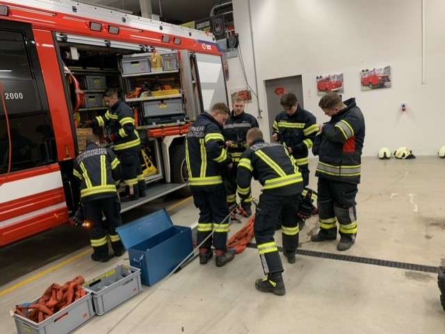 Sowohl die Kameraden als auch einige Jugendfeuerwehrmitglieder, welche kurz vor der Überstellung in den Aktivstand sind und bereits bei Übungen teilnehmen dürfen, konnten viele Handgriffe lernen.