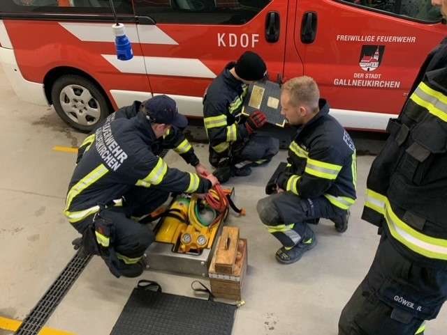 Hier wurde der Schwerpunkt auf den richtigen Umgang mit Hebekissen, den Einsatz des Hochdruck-Lüfters sowie auf die richtige Bedienung des Greifzuges gelegt.