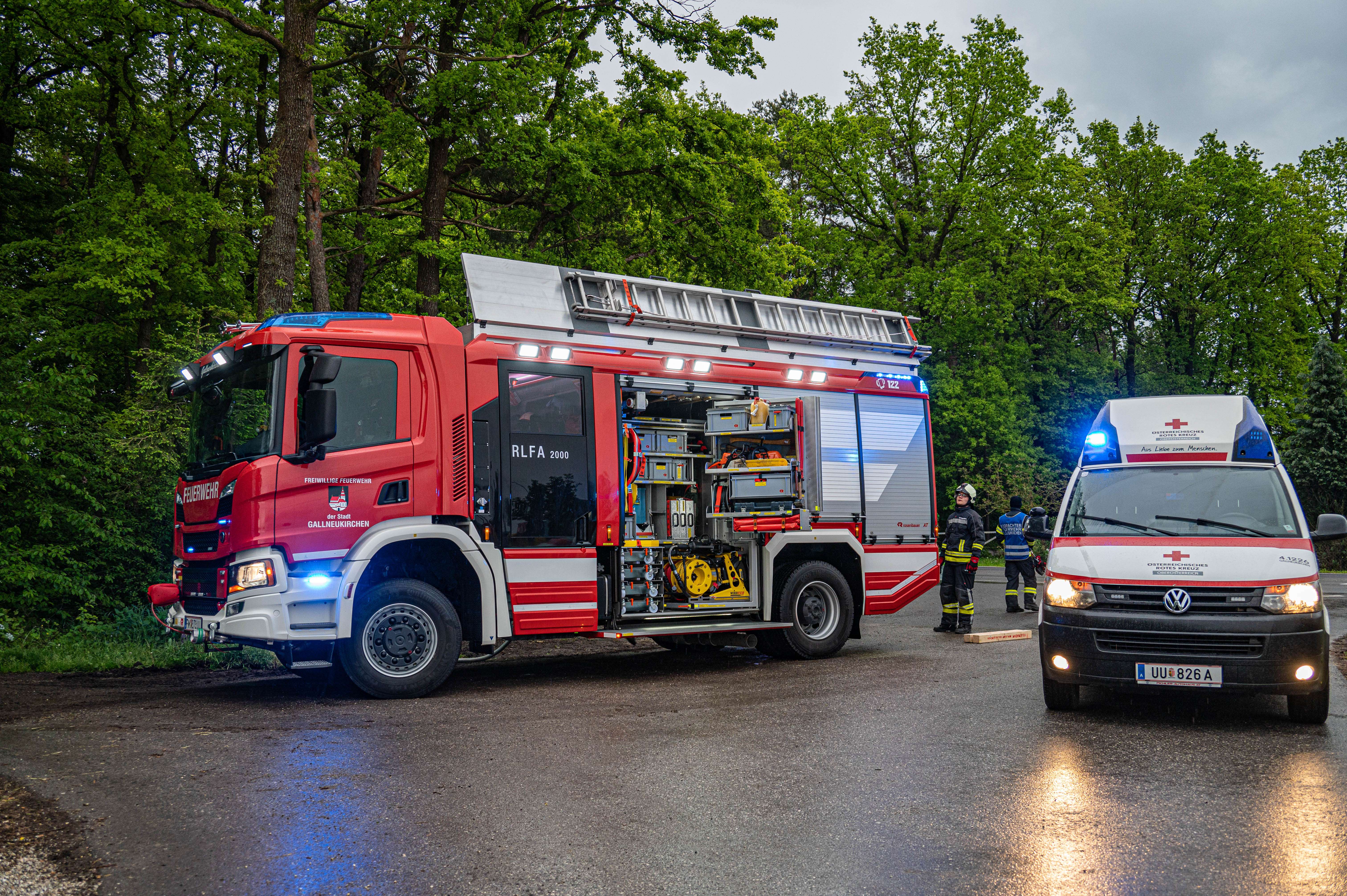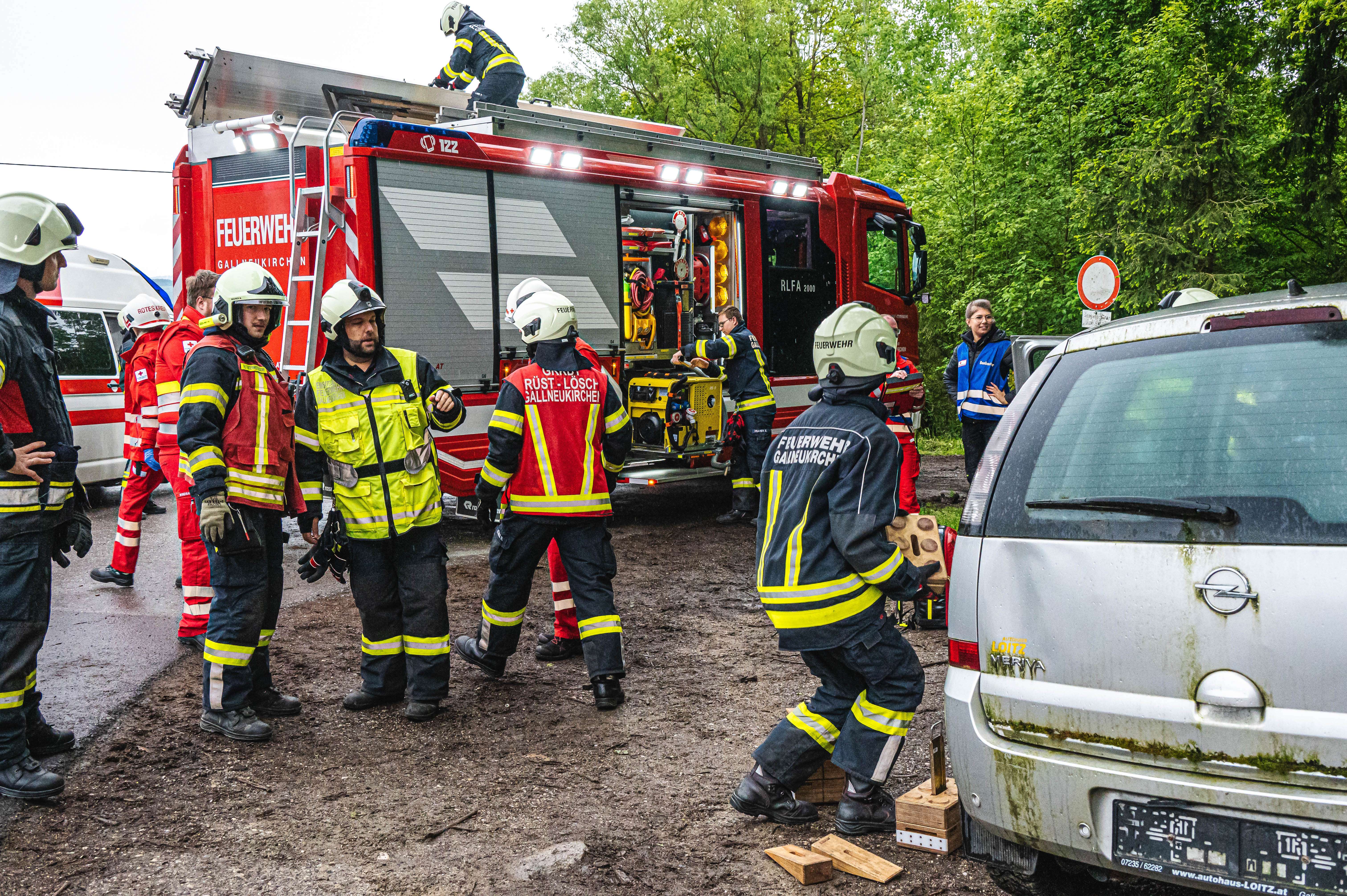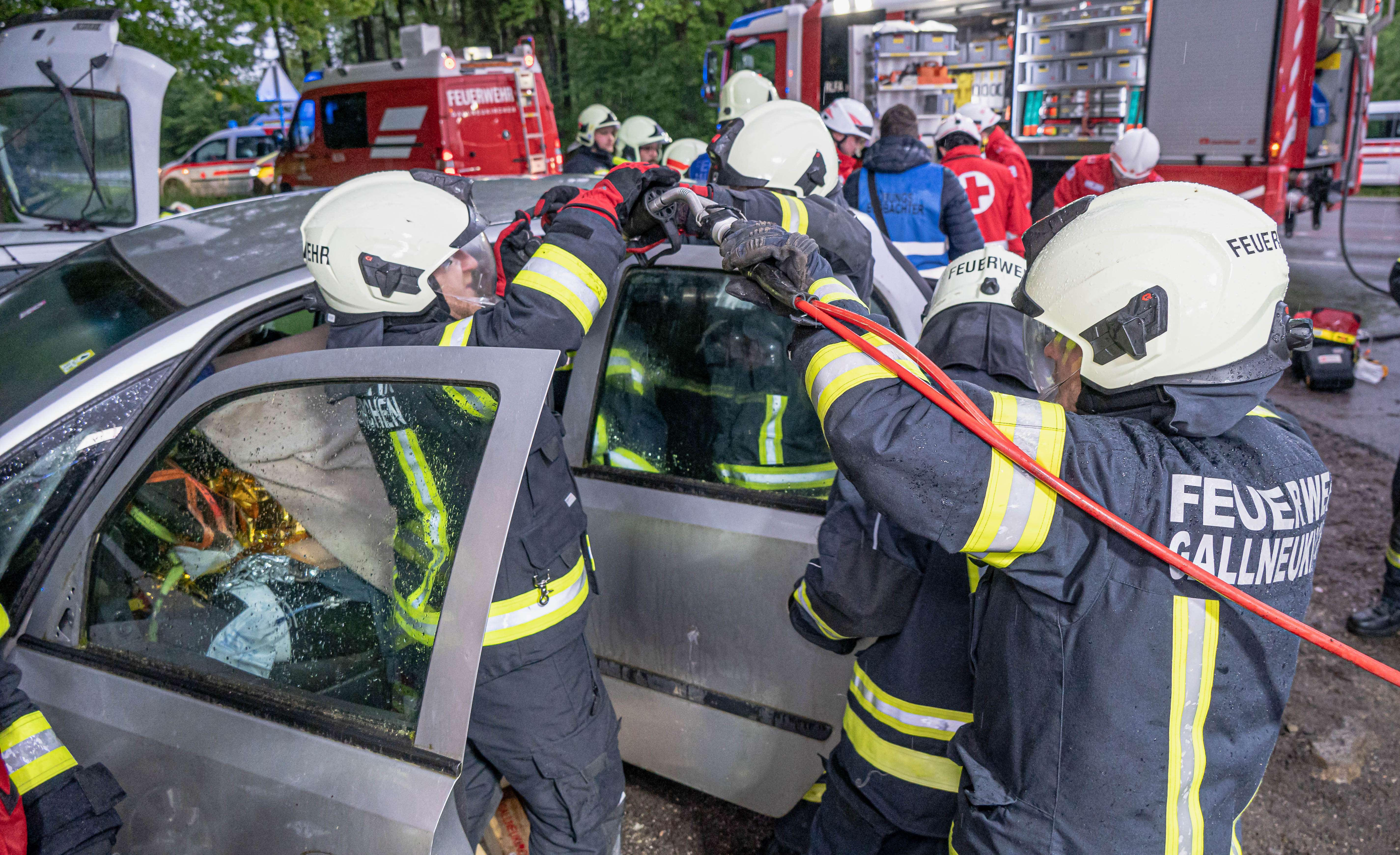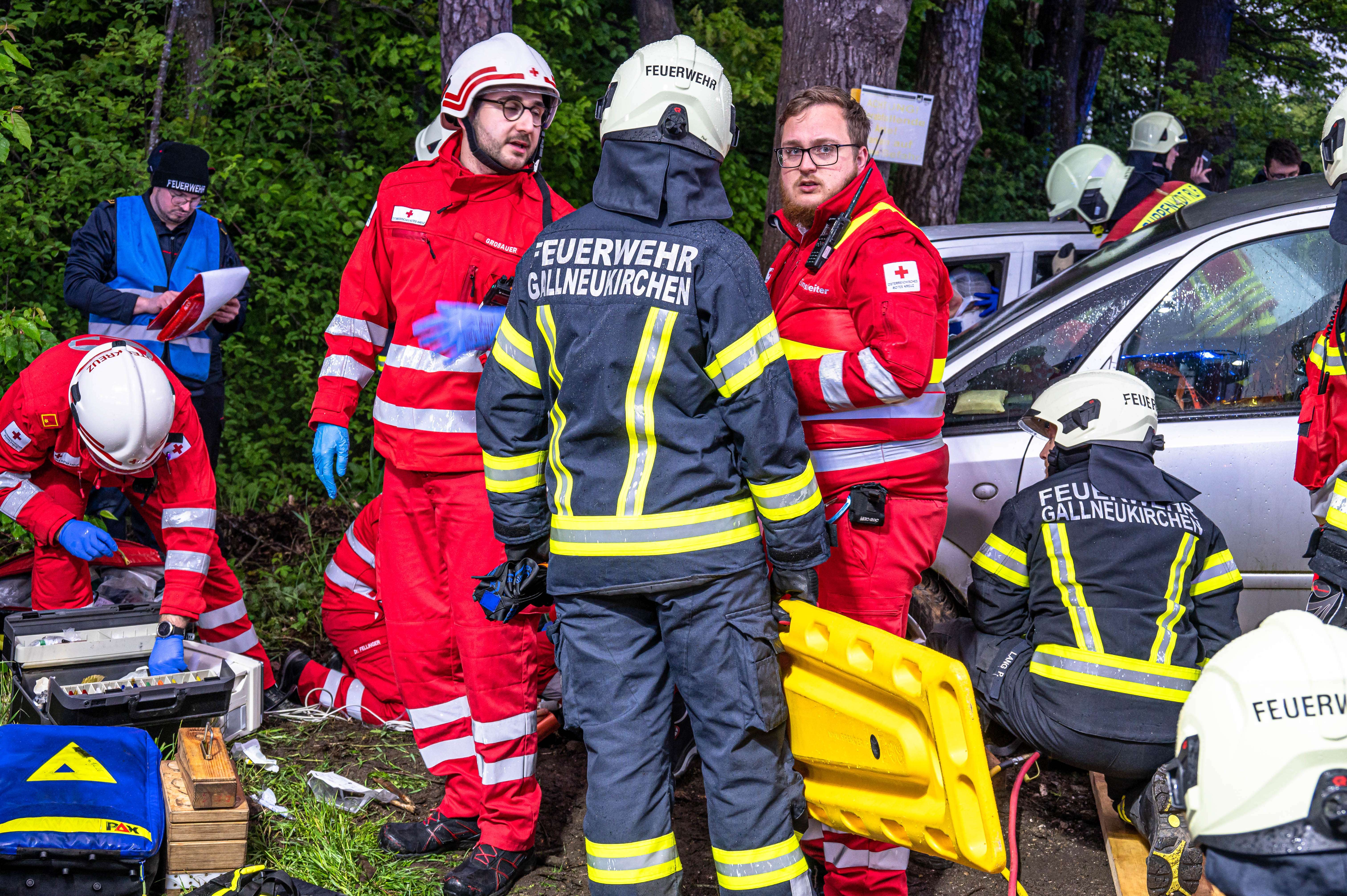 Die Feuerwehr Gallneukirchen befreite die dritte Person aus dem Fahrzeug, dafür musste die B-Säule entfernt werden. Alle Personen wurden vom Roten Kreuz versorgt und die Übung konnte erfolgreich beendet werden.