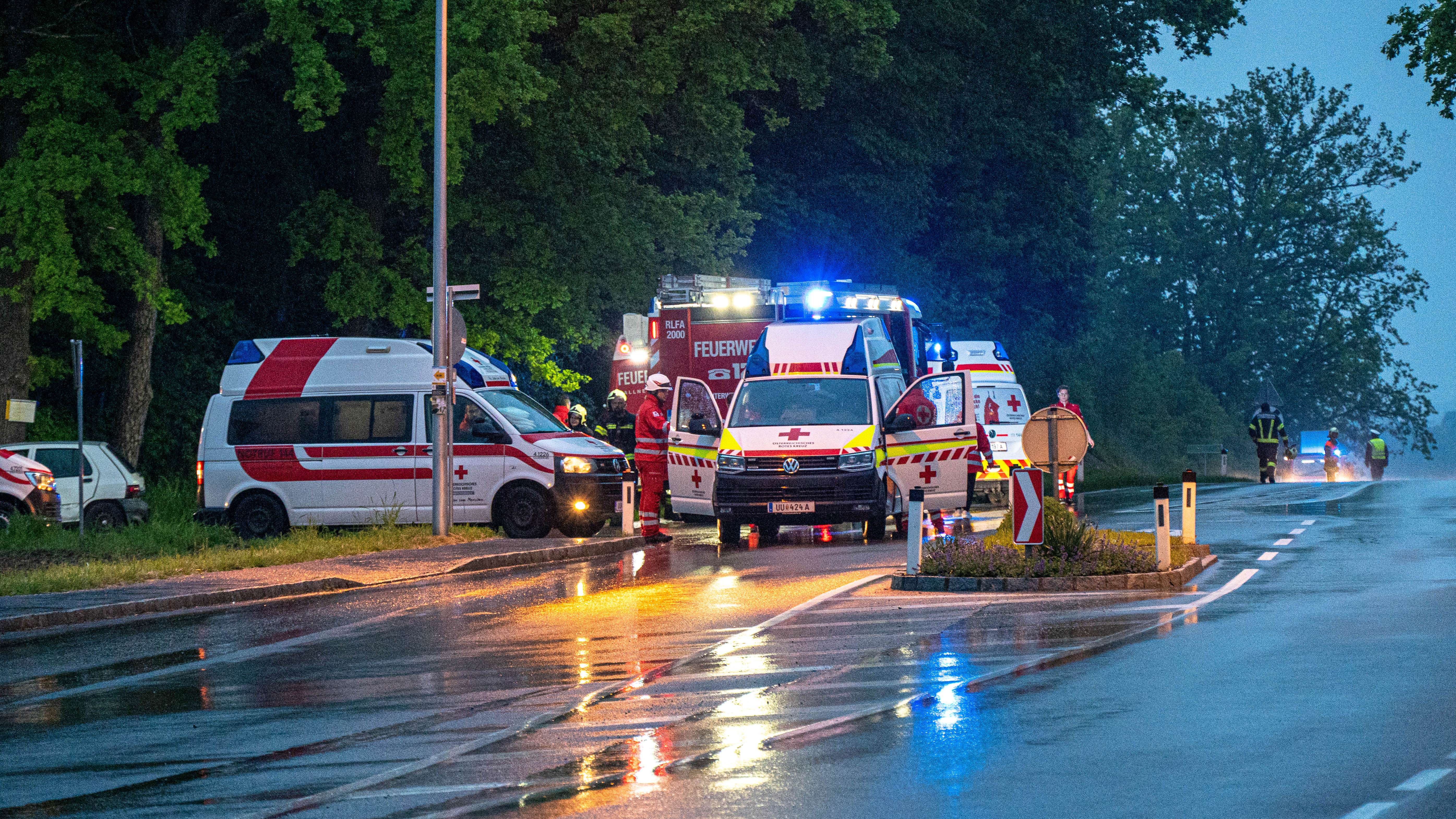 Zwei Fahrzeuge und ein Fußgänger waren beteiligt. Insgesamt wurden drei verletzte Personen vorgefunden, wobei eine davon unter dem Fahrzeug eingeklemmt war.