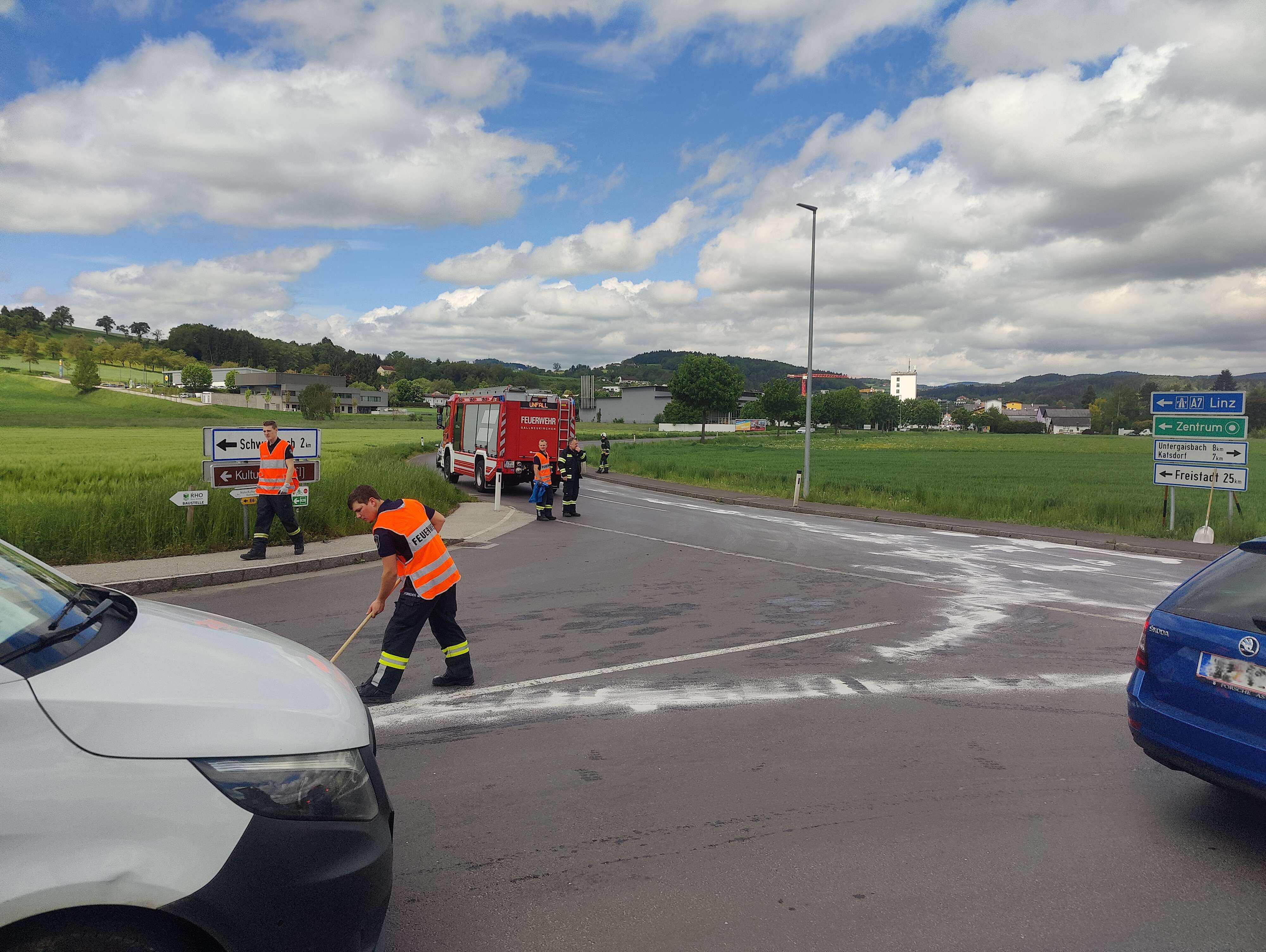 Die ausgelaufenen Betriebsmittel wurden mittels Ölbindemittel bereinigt und somit konnte der Verkehr rasch wieder freigegeben werden.